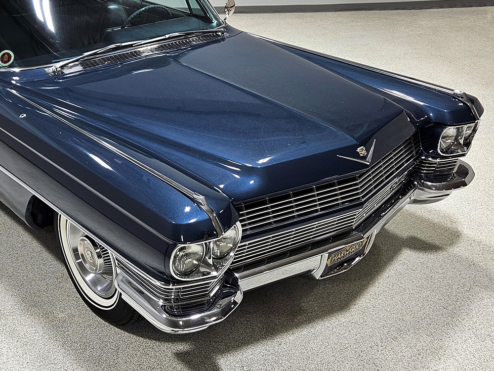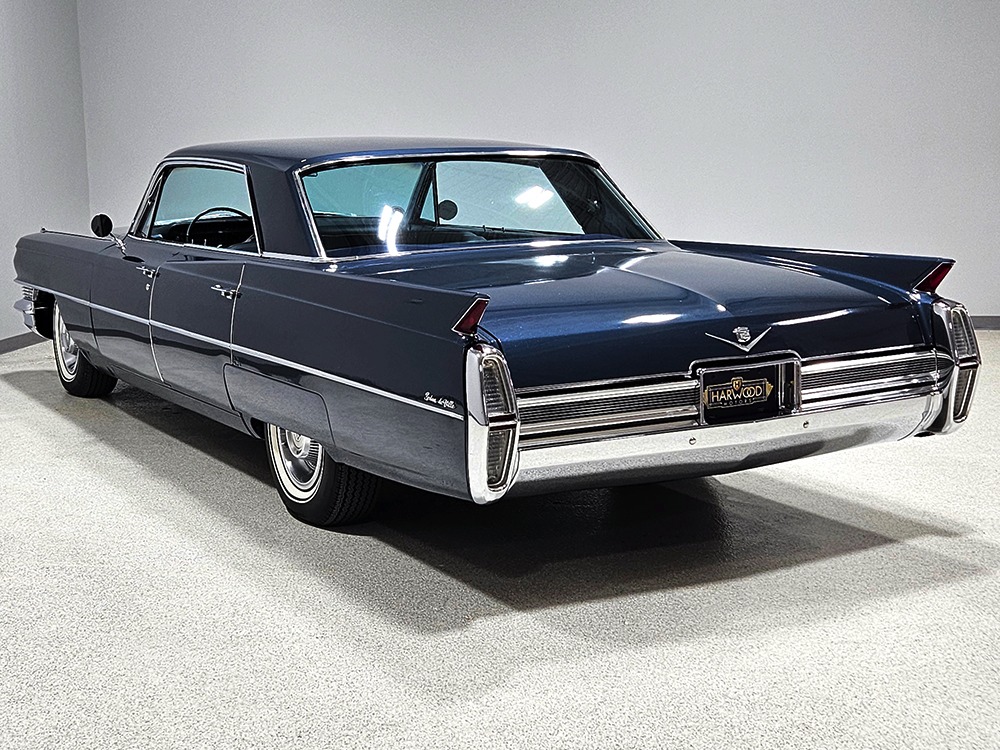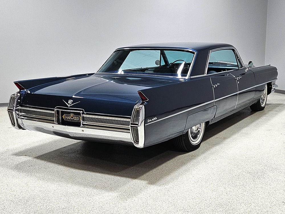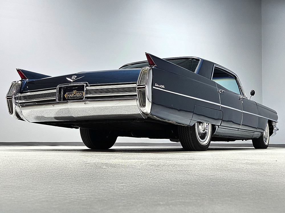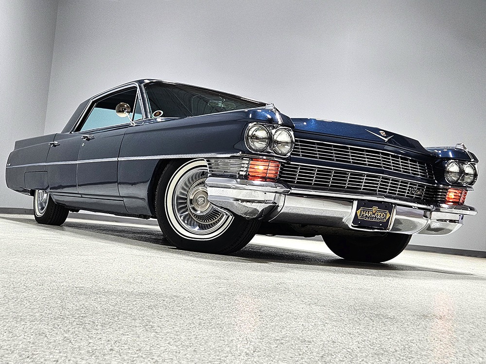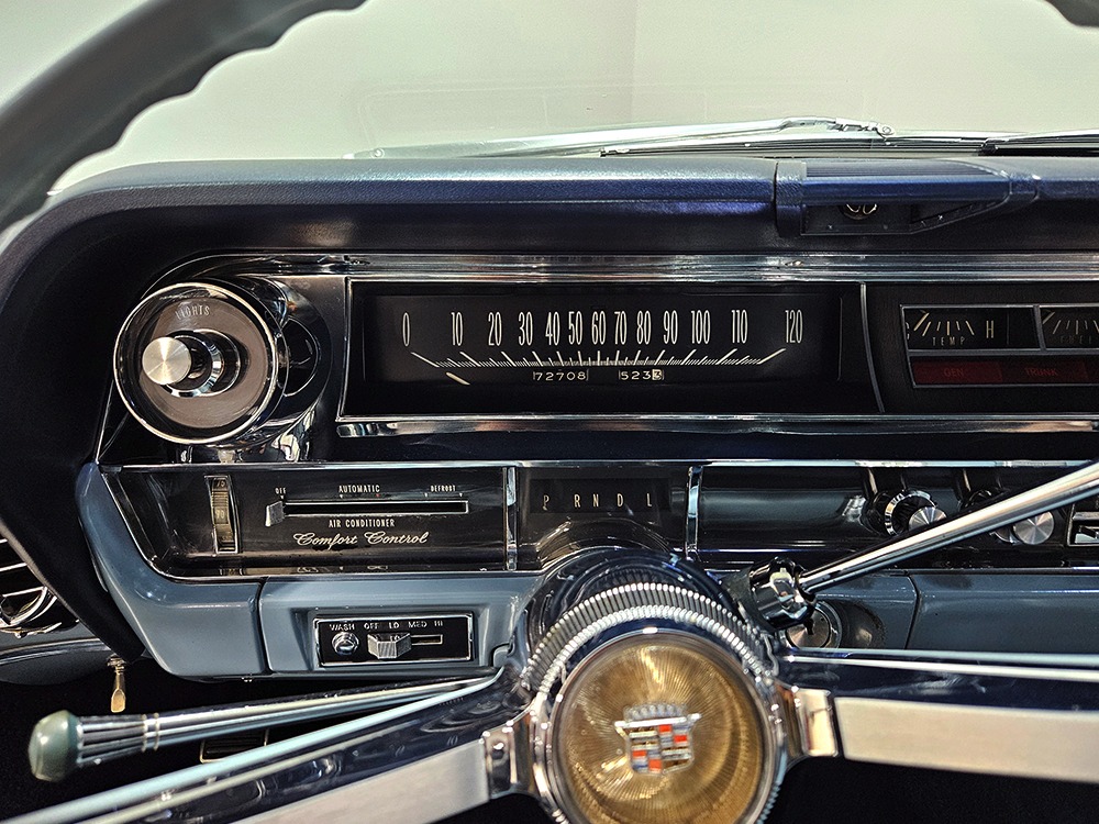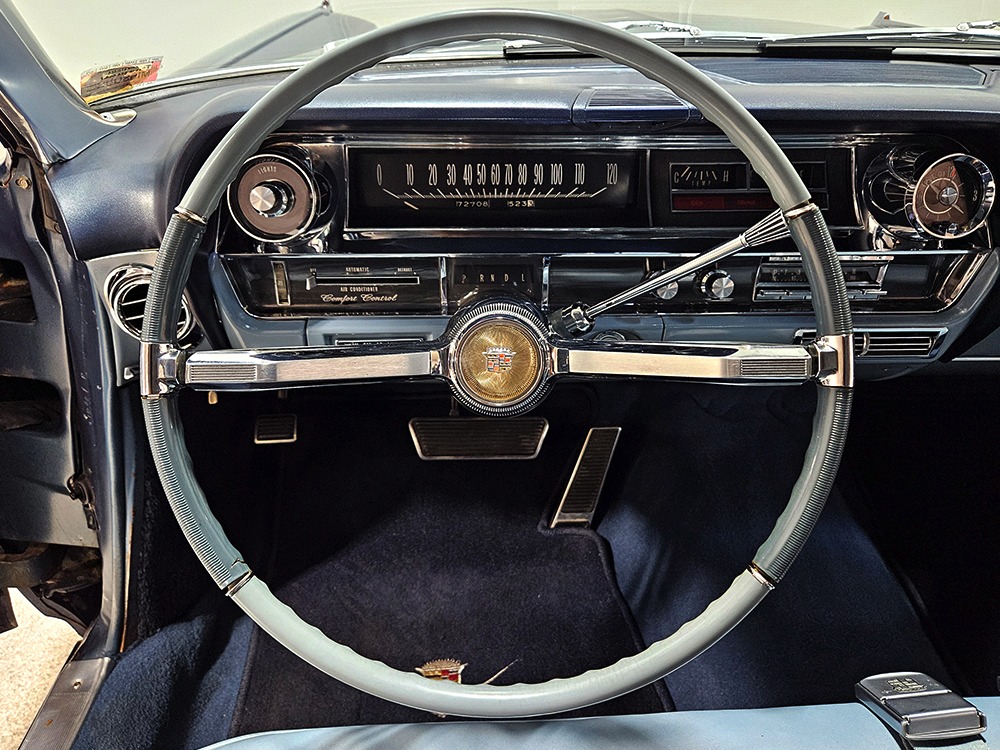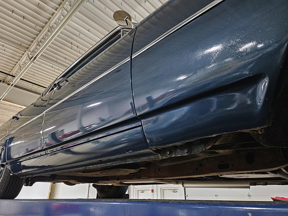 For 1964, the Cadillac’s engine was enlarged to 429 cubic inches and made a stout 340 horsepower and 480 ft-lbs. of torque—enough to make even the biggest sedans feel light on their feet. This one has been recently serviced, including a complete valve job on the heads, and runs nicely. There’s big engine torque available at any RPM, and it cruises easily at modern highway speeds. It’s easy to start and once it warms up, it’s happy to cruise as fast or as slow as you’d like. The engine bay is nicely detailed with Cadillac Blue engine enamel on the block and tinwork, that big air cleaner up top, and lots of new equipment, including belts and hoses, a full tune-up, a dual reservoir master cylinder, and more. Also new for 1964 with the TH400 3-speed automatic, which is arguably the best automatic transmission ever created. It’s the perfect complement to the Deville’s muscular 429 and always seems to find the right gear for effortless motoring. 2.94 gears in the rear end certainly help with the Cadillac’s low-key demeanor, and if you want a car for road trips, there aren’t many better than this. The undercarriage is original but solid—no rot in the floors or rockers, but there is surface scale on the heavy metal parts. There’s a brand new exhaust system that gives it an appropriately hushed tone, new shocks at all four corners, and some new brake components for the power 4-wheel drums. Factory wheels and hubcaps provide just the right look and it carries an expensive set of new 235/75/15 Diamondback Auburn radials with the correct twin stripe whitewalls.