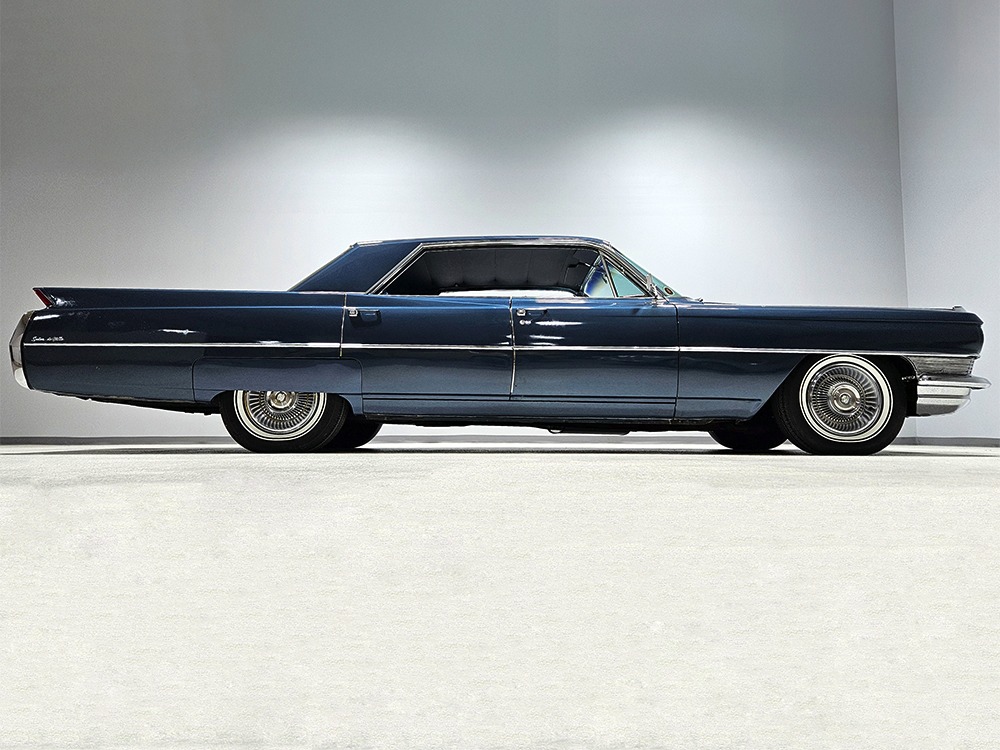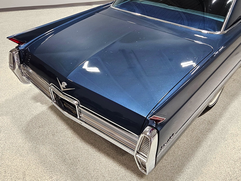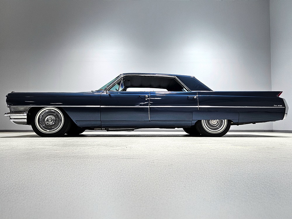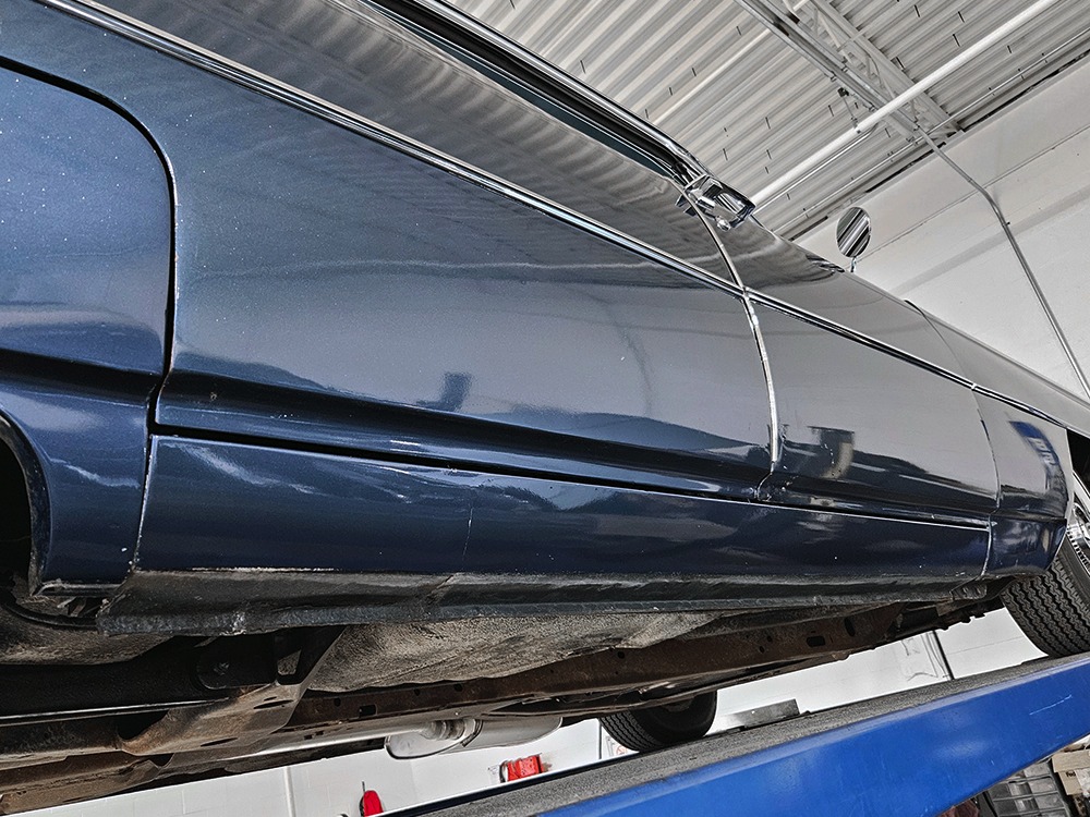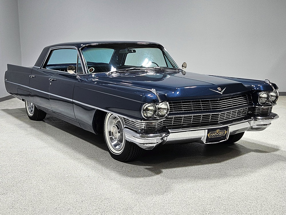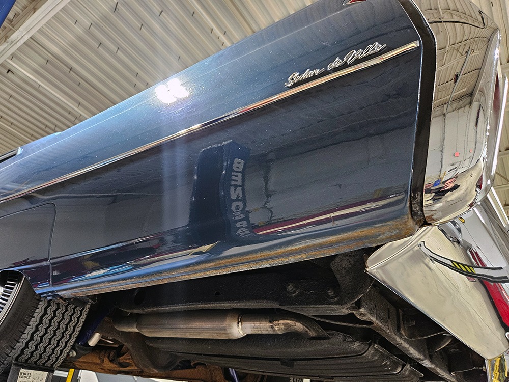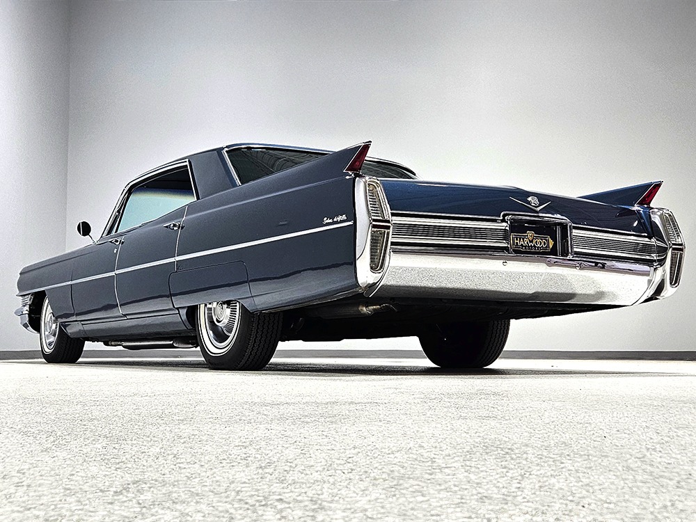For 1964, the Cadillac’s engine was enlarged to 429 cubic inches and made a stout 340 horsepower and 480 ft-lbs. of torque—enough to make even the biggest sedans feel light on their feet. This one has been recently serviced, including a complete valve job on the heads, and runs nicely. There’s big engine torque available at any RPM, and it cruises easily at modern highway speeds. It’s easy to start and once it warms up, it’s happy to cruise as fast or as slow as you’d like. The engine bay is nicely detailed with Cadillac Blue engine enamel on the block and tinwork, that big air cleaner up top, and lots of new equipment, including belts and hoses, a full tune-up, a dual reservoir master cylinder, and more. Also new for 1964 with the TH400 3-speed automatic, which is arguably the best automatic transmission ever created. It’s the perfect complement to the Deville’s muscular 429 and always seems to find the right gear for effortless motoring. 2.94 gears in the rear end certainly help with the Cadillac’s low-key demeanor, and if you want a car for road trips, there aren’t many better than this. The undercarriage is original but solid—no rot in the floors or rockers, but there is surface scale on the heavy metal parts. There’s a brand new exhaust system that gives it an appropriately hushed tone, new shocks at all four corners, and some new brake components for the power 4-wheel drums. Factory wheels and hubcaps provide just the right look and it carries an expensive set of new 235/75/15 Diamondback Auburn radials with the correct twin stripe whitewalls.