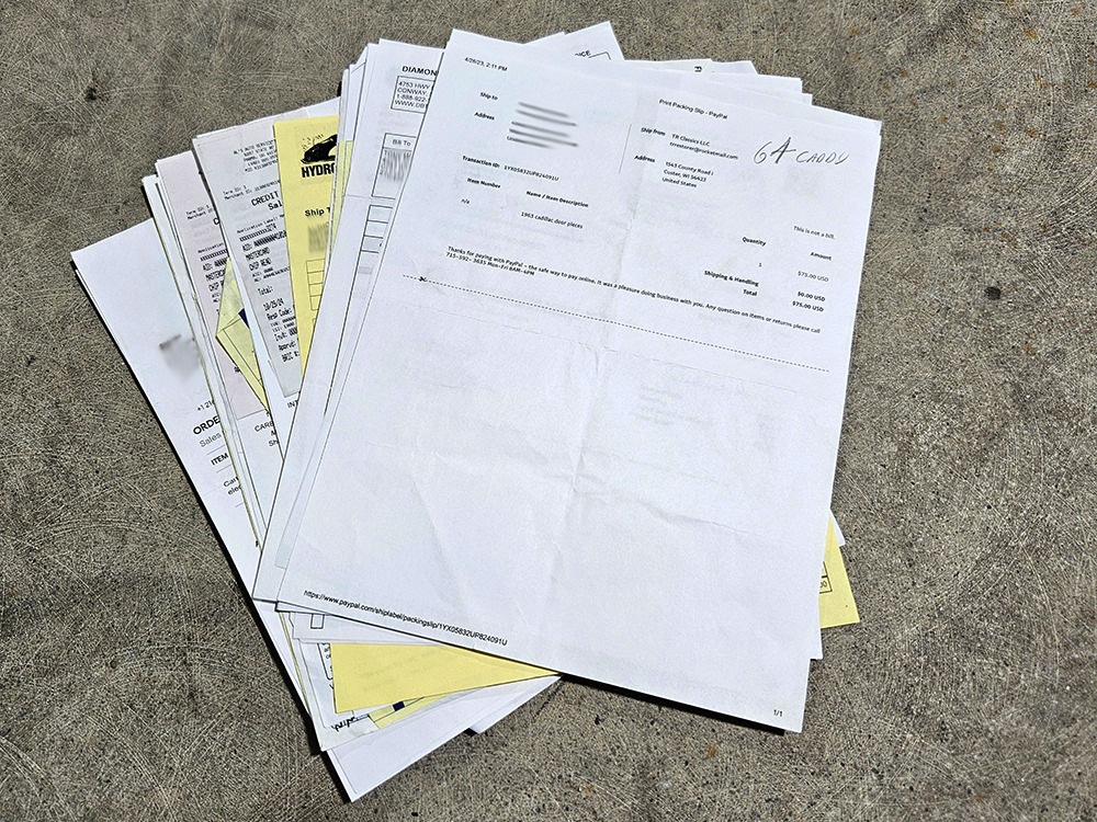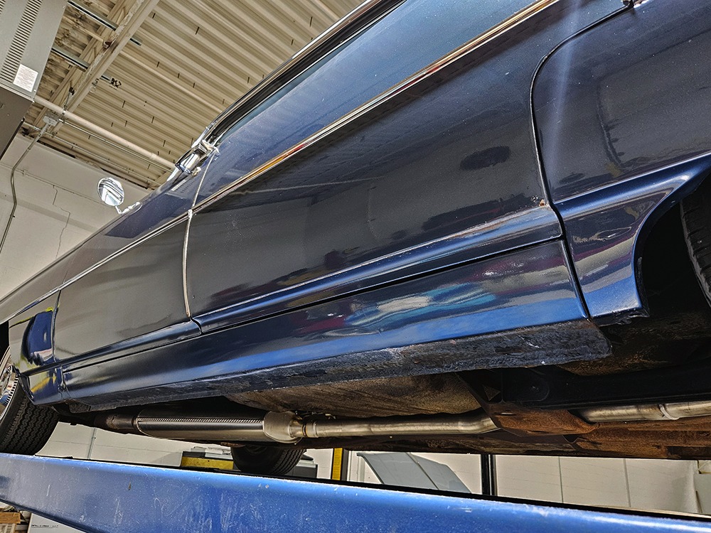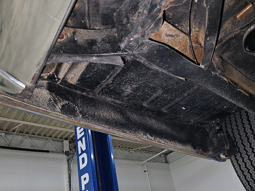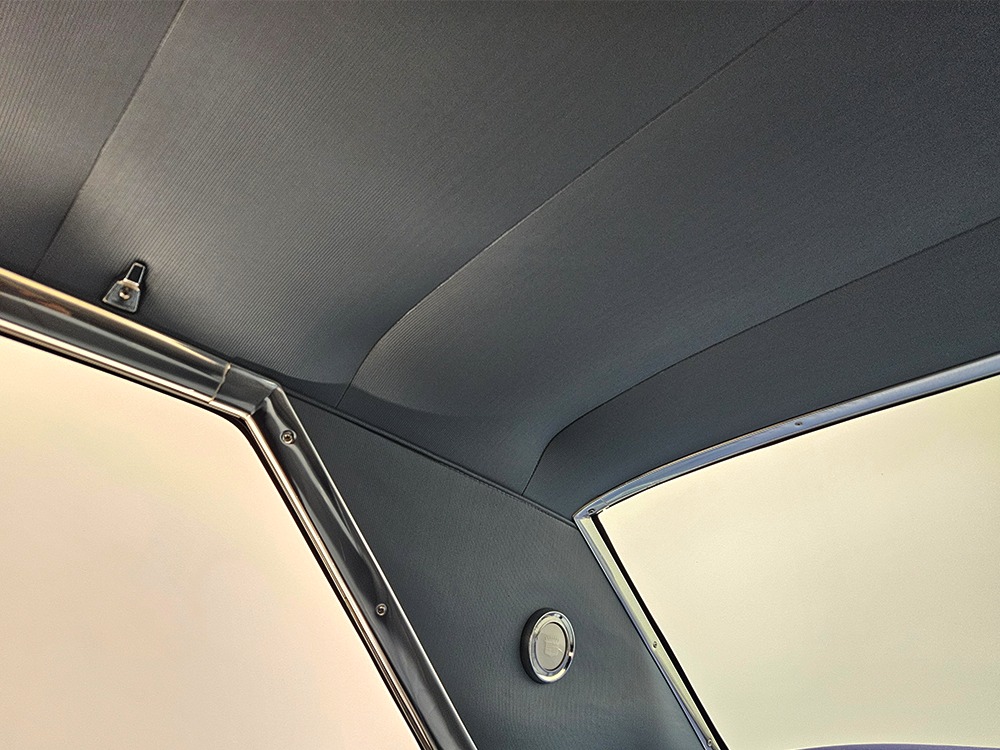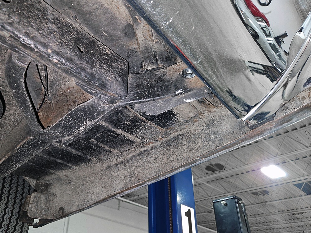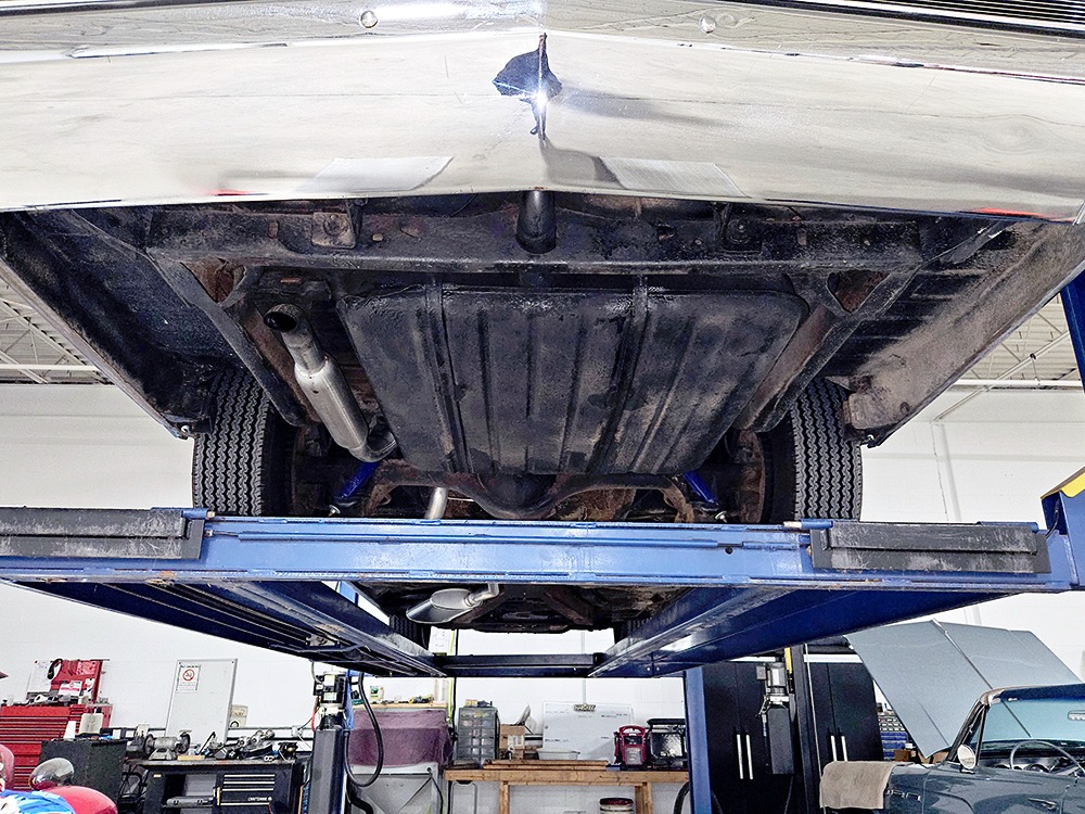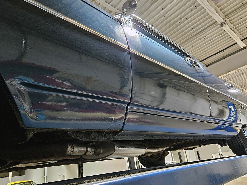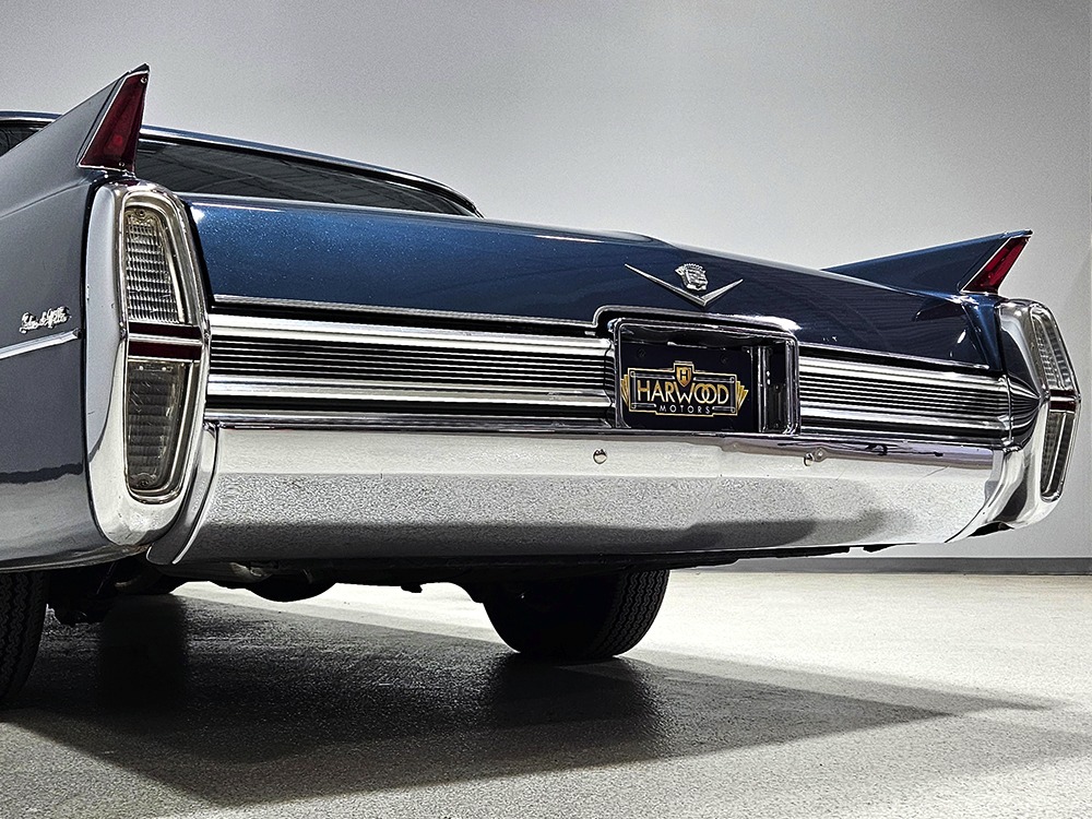 For 1964, the Cadillac’s engine was enlarged to 429 cubic inches and made a stout 340 horsepower and 480 ft-lbs. of torque—enough to make even the biggest sedans feel light on their feet. This one has been recently serviced, including a complete valve job on the heads, and runs nicely. There’s big engine torque available at any RPM, and it cruises easily at modern highway speeds. It’s easy to start and once it warms up, it’s happy to cruise as fast or as slow as you’d like. The engine bay is nicely detailed with Cadillac Blue engine enamel on the block and tinwork, that big air cleaner up top, and lots of new equipment, including belts and hoses, a full tune-up, a dual reservoir master cylinder, and more. Also new for 1964 with the TH400 3-speed automatic, which is arguably the best automatic transmission ever created. It’s the perfect complement to the Deville’s muscular 429 and always seems to find the right gear for effortless motoring. 2.94 gears in the rear end certainly help with the Cadillac’s low-key demeanor, and if you want a car for road trips, there aren’t many better than this. The undercarriage is original but solid—no rot in the floors or rockers, but there is surface scale on the heavy metal parts. There’s a brand new exhaust system that gives it an appropriately hushed tone, new shocks at all four corners, and some new brake components for the power 4-wheel drums. Factory wheels and hubcaps provide just the right look and it carries an expensive set of new 235/75/15 Diamondback Auburn radials with the correct twin stripe whitewalls.