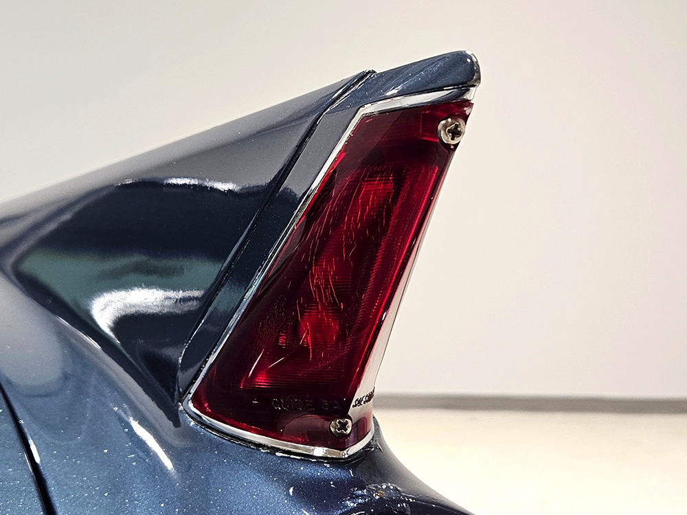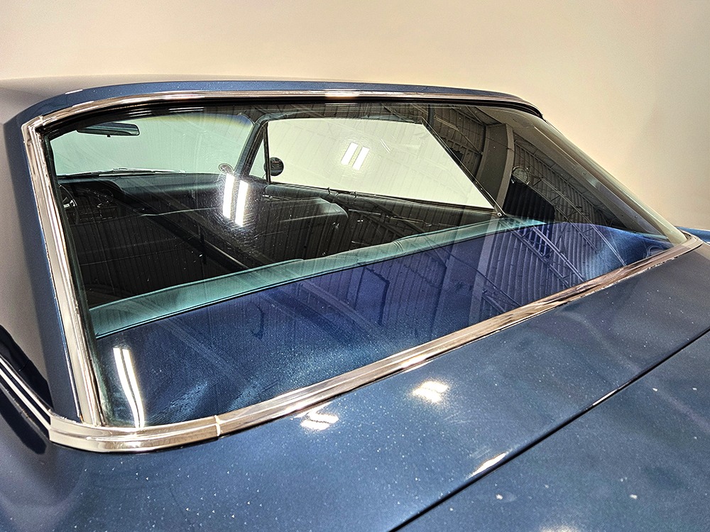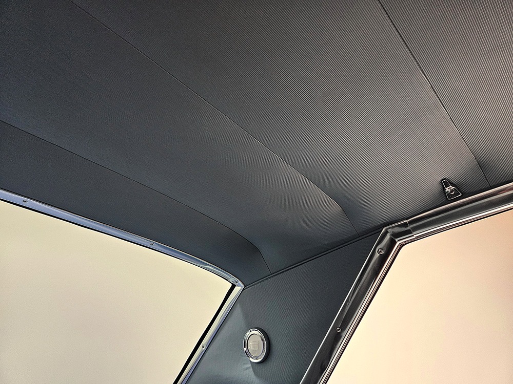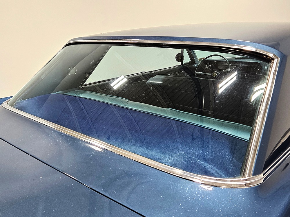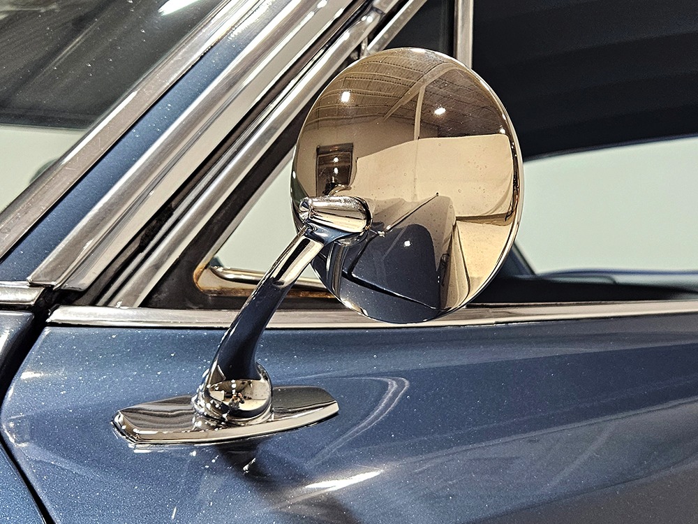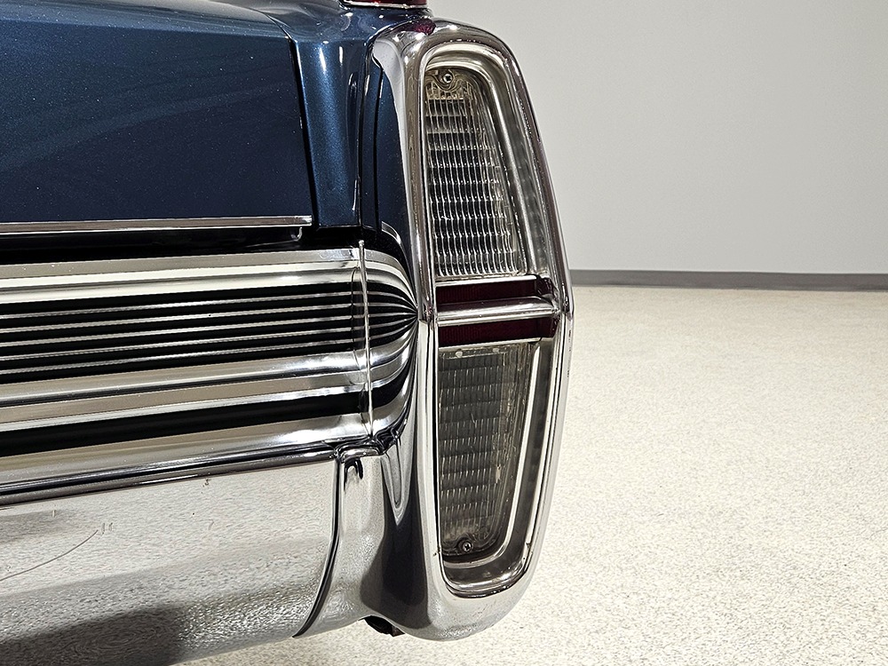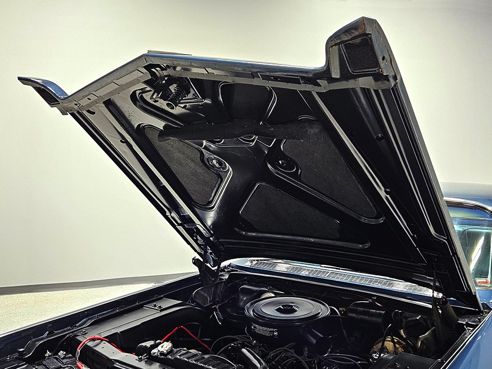 The blue interior is simply spectacular. Someone must have spent a fortune restoring it, because it uses original patterns to give a true 1964 vibe the moment you open the door. Wide bench seats feature armrests, so four passengers travel like kings and six can fit in a pinch. Plush carpets, ornate door panels, and that slick two-spoke steering wheel are all about quiet luxury. The chrome-laden dash speaks softly of mid-century modern design (no faux woodgrain here!) and all the instruments are operational. The power windows zip up and down, the AM/FM radio works properly (including the power antenna), and the interior courtesy lights are all LEDs. Of note, the A/C system has been partially removed (all the components are included with the car) and the power seat clicks but does not move, but everything else works like it should. The back seat features spacious stretch-out room only found in limousines today, and the headliner is beautifully finished. In back, there’s a positively massive trunk that’s nicely detailed with correct cardboard bulkheads and mats, plus a full-sized spare and jack assembly.