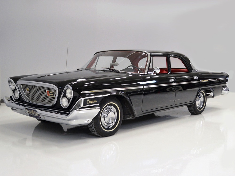 The bright red interior is an unusual choice in a conservative 4-door sedan, but it looks fantastic here. The seat upholstery is new, correctly stitched using fabrics that match the original stuff, but the rest appears to be vintage 1962. Black carpets match the dash pad and help keep it from being red overload inside, and they, too are in very good condition with a correct heel pad for the driver. The door panels show some discoloration on and around the arm rests, which shouldn’t be a surprise, but that’s just about the only demerit in an otherwise first-rate interior. Of course, all 1962 Chryslers received the awesome Astra-Dome instrument panel, and in this car it’s 100% functional, including the awesome turquoise iridescent lighting scheme. You also get a pushbutton TorqueFlite automatic transmission and a matching set of buttons on the right for the heater/defroster controls. The squared-off steering wheel manages to feel substantial in your hands and guides the car effortlessly. Even the original “Golden Tone” AM radio is fully operational here. The back seat looks like it’s never been used and you get a gigantic trunk for long road trips, complete with what might very well be the original Goodyear spare tire.