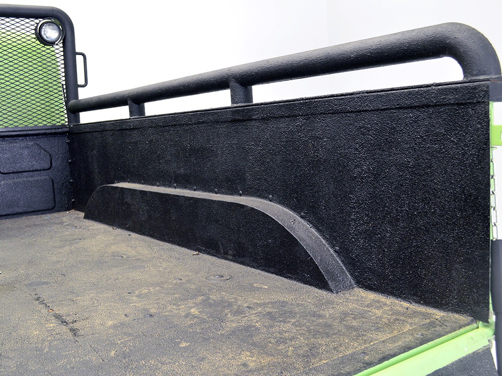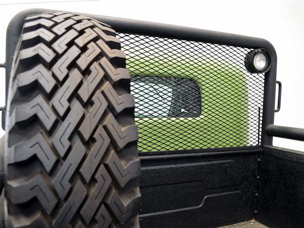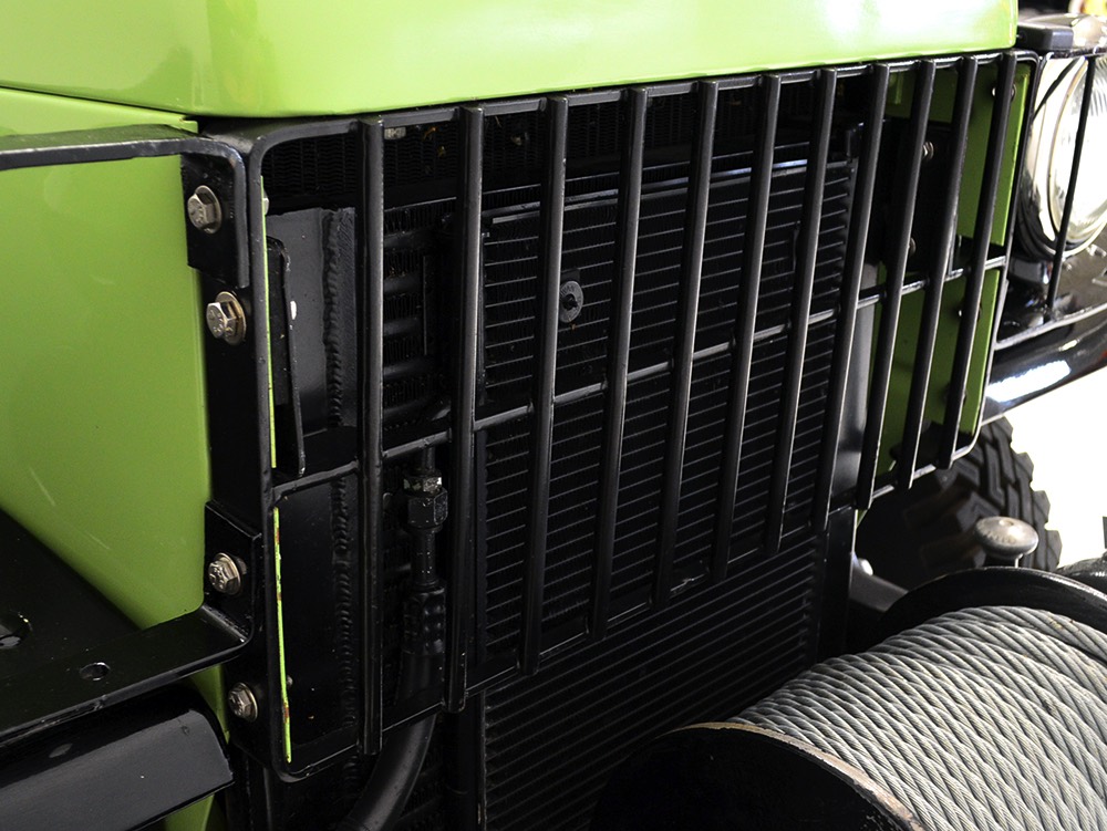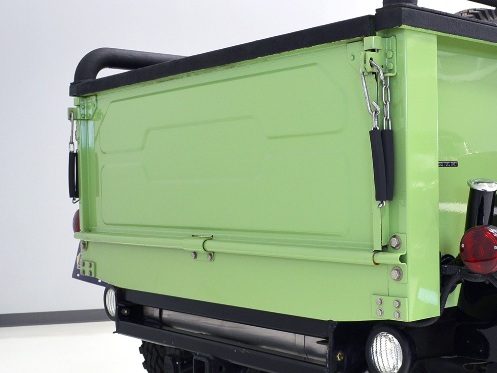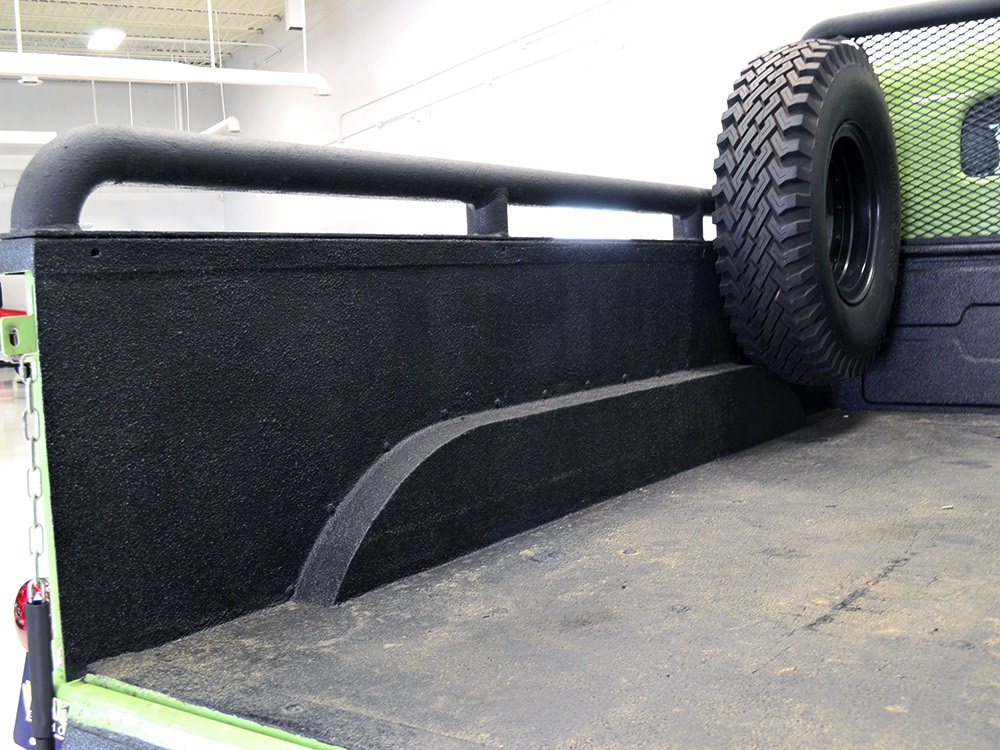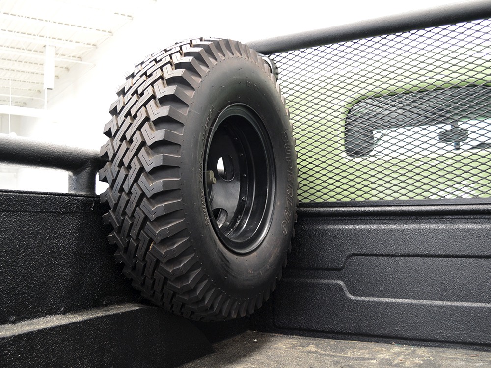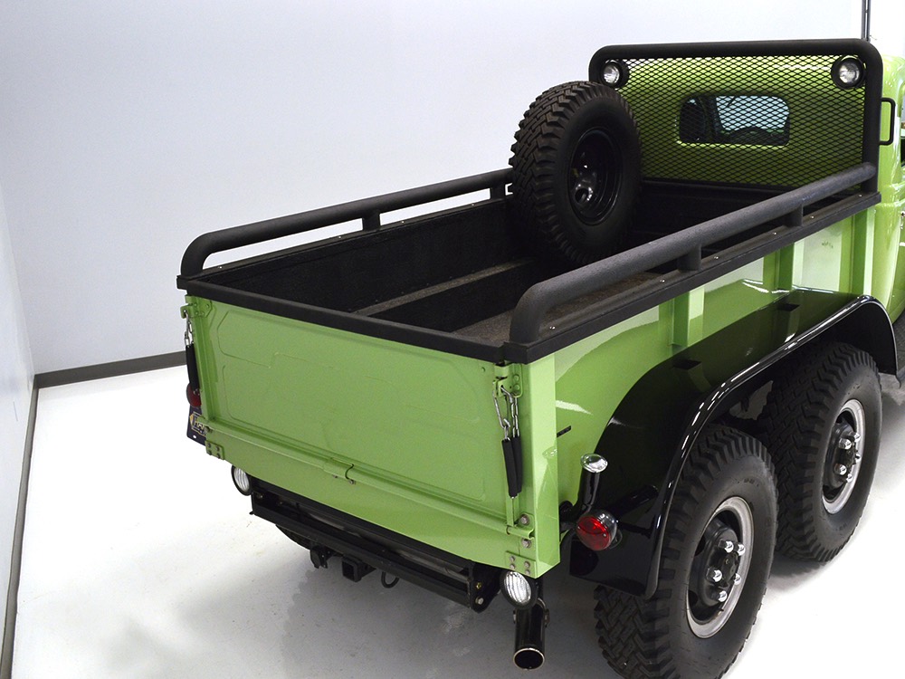 This truck takes everything great about the Power Wagon and turns it up to 11. It’s impossible to miss a 7-foot-tall bright green pickup, and most folks do a double take when they see the tandem rear axles. They’re not quite sure what to make of it, but it talks to them on a visceral level. It’s also beautifully built, with great attention to detail that ensures that the doors fit well and click shut without a heavy slam, great gaps on the hood, and yes, that rear fender is custom made but sure looks like the factory could have done it that way. The color is a handsome light sage green, not minty and not too neon, although the lights in our studio make it tough to capture it correctly. Believe me, you will be the center of attention with this truck, and not because of the color. Black fenders always look right on a Power Wagon, and it retains all the awesome details that are part of the Power Wagon legend: an engine-driven PTO winch (with 200 feet of ½-inch galvanized cable), a big brush guard/grille up front, and stand-up headlights that give the Power Wagon an old-fashioned look. Out back, the 8-foot bed is big enough to swallow a pallet of drywall and obviously the suspension underneath won’t even blink, so no worries about using this thing as an actual truck. The heavy-duty bed rails and roll bar with window cage were added to help with the industrial-strength look, and it was all covered in spray-on bedliner material to make it virtually indestructible. There’s also a Class IV hitch out back, just in case you have something to tow, like an ocean liner or a building or something.