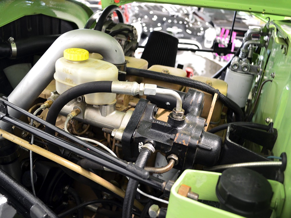 In much of the collector car world, purists dictate terms, but with Power Wagons, upgrades in the horsepower department are not merely welcome, but almost expected. The original 96-horsepower flathead six was adequate because it was geared to the moon (hence the top speed warnings), but it also made the Power Wagon something of an anachronism. Very cool but tough to use in the real world. That’s neatly solved here with the installation of a 3.9-liter Cummins 4BT turbo diesel engine. It’s a neat fit in the Power Wagon’s engine bay, requiring no cutting or pushing back of the firewall, so interior space is unaffected. There’s a mountain of torque available at any speed, and it’s arguably the most reliable internal combustion machine you could ever devise: if fuel is going into the cylinders, it’s going to run. With just over 5000 miles on it today, it’s barely broken-in. In fact, its first test was a cross-country trip from Pennsylvania to California, a trek of nearly 3000 miles during which it averaged a little over 25 MPG. The tidy diesel powerplant shows traditional Cummins tan paint and neat packaging of the accessories tight to the block, so service access is still quite good. There’s a giant radiator up front with an engine-driven cooling fan, and all the delicate parts are up high so you really can take it off-roading without worries. These 4BT engines are a fascinating study in minimalism, as they have only an engine-driven fuel pump and no ignition system (diesels use compression ignition) so you have to do something pretty stupid to make one of these stop running.