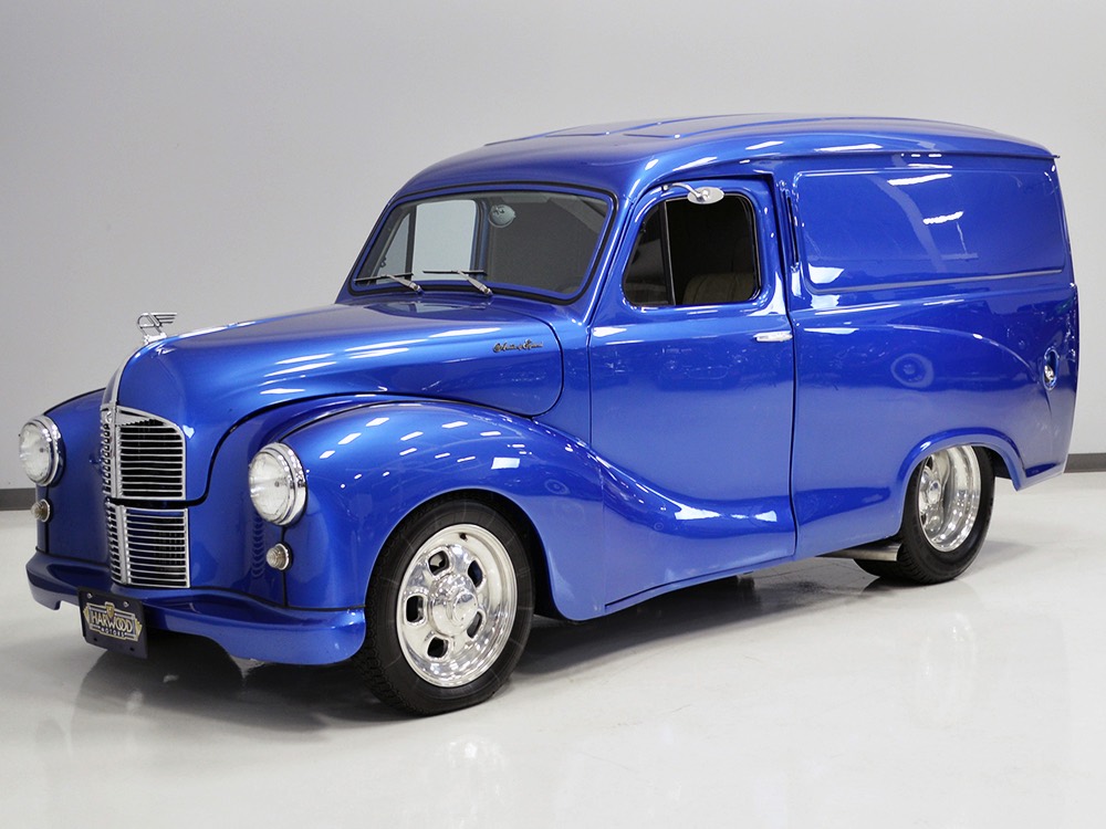 In back, you have a cavernous cargo bay, which is by design. However, there’s no way Austin was building such beautifully finished cargo trucks in 1948. This one features matching tan carpets, tweed side panels (again with the Flying A insignia), and a custom headliner overhead. Cargo lights provide plenty of visibility for moving around back there and the cargo doors swing wide to make loading and unloading easy. The wheel wells have obviously been tubbed to house the wide-by-huge rear meats, and there are several neatly concealed storage bins in the walls, including one that provides access to the fuse panel. Oh, and there’s a CD changer back there, making this Austin ideal for long road trips.