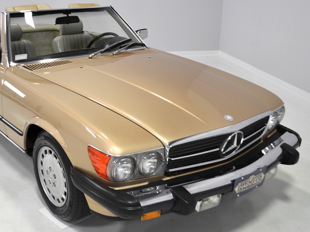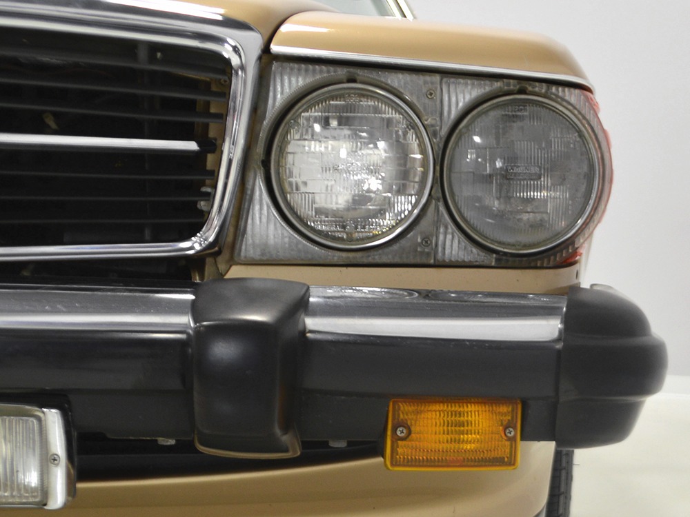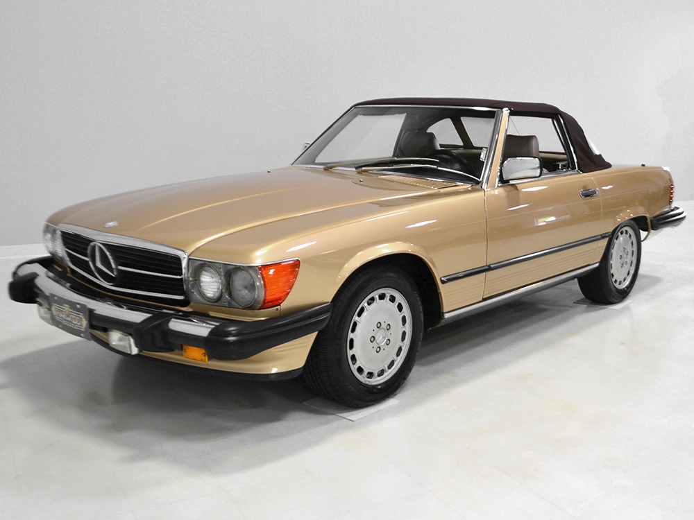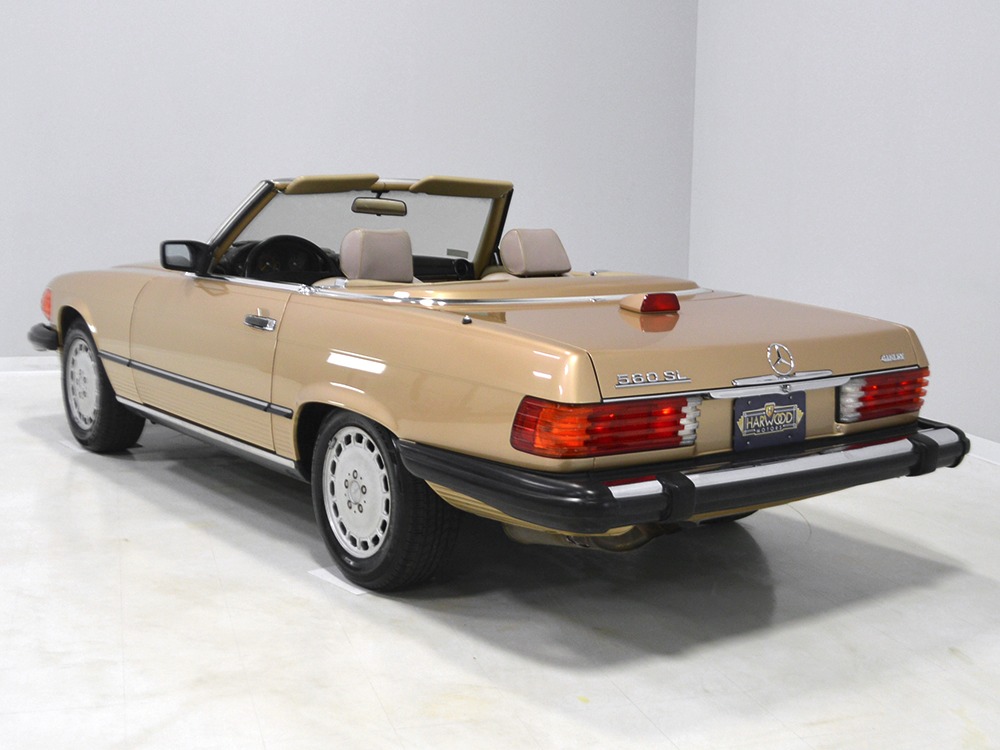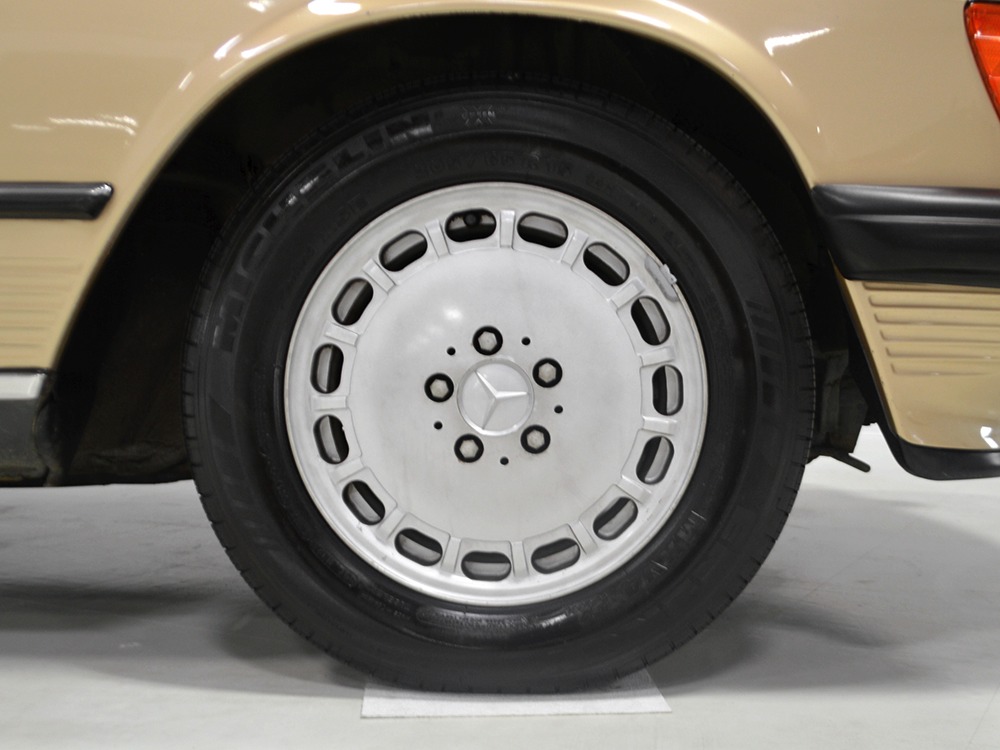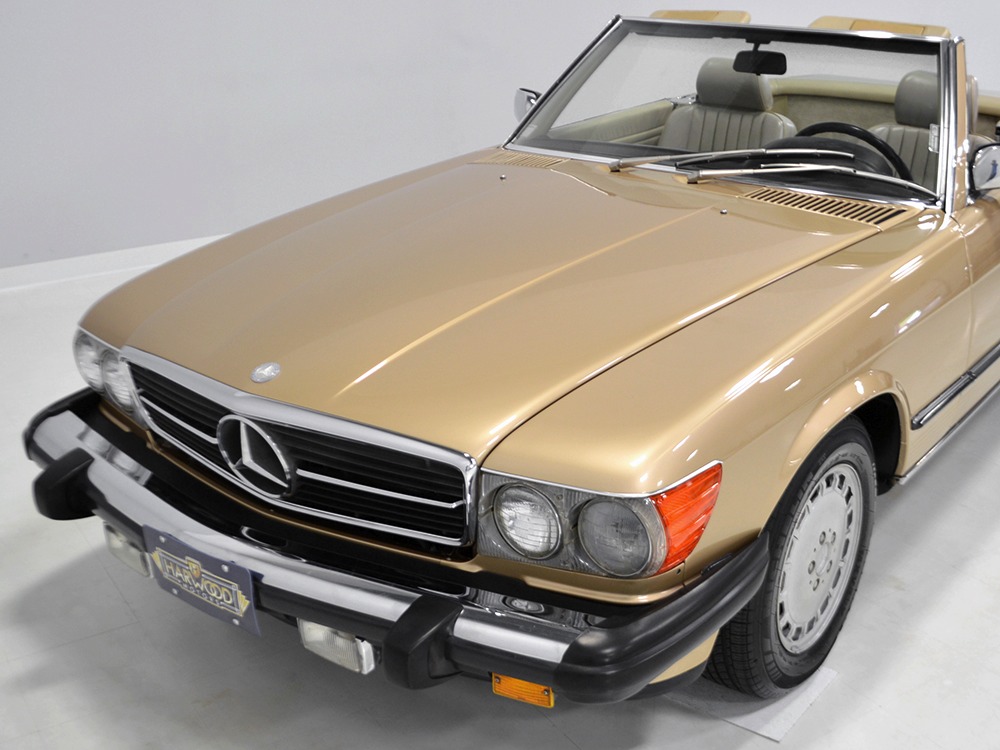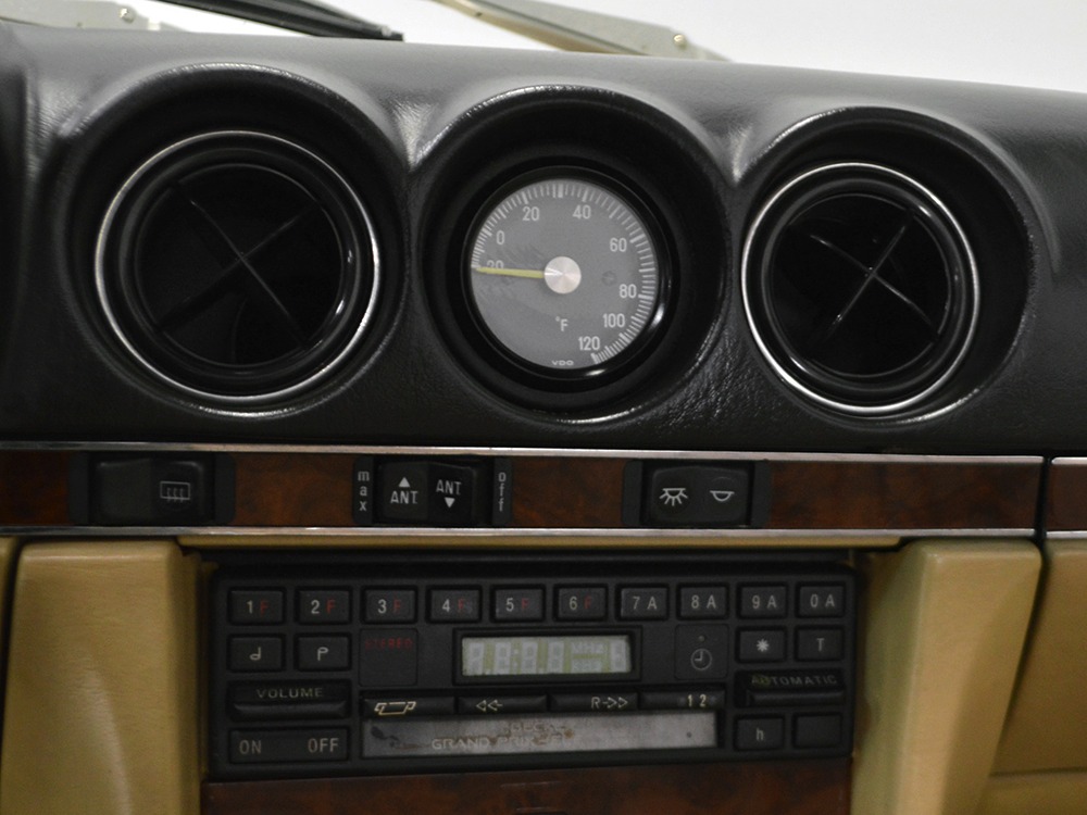 Remarkably, that remains true today, but given the affordable prices on many of the R107 SLs, you no longer need a seven-figure bank balance to put one in your garage. This 1986 560SL represents the pinnacle of R107 development and if you seek one of these cars, it’s exactly what you should be buying. There are cheaper SLs available, but if you do a little research you’ll quickly discover that there are definitely good SLs and bad SLs and that a cheap SL is perhaps the most expensive car you can own if service has been neglected. In contrast, this one has had just one owner and comes to us from his estate, so it’s got a known history. It shows just 84,213 original miles and is in excellent original condition. That’s factory-applied Desert Tan paint (which really looks like gold metallic) that is just the right shade to accentuate the long, low lines of the SL roadster and it remains in excellent condition overall. There are few nits to pick and the only notable one is that the driver’s front fender appears to have been repainted at some point (don’t worry, it’s far less noticeable out in the real world than in our photo studio—we didn’t even spot it until we saw the photos). Otherwise, this car is in very good condition throughout.