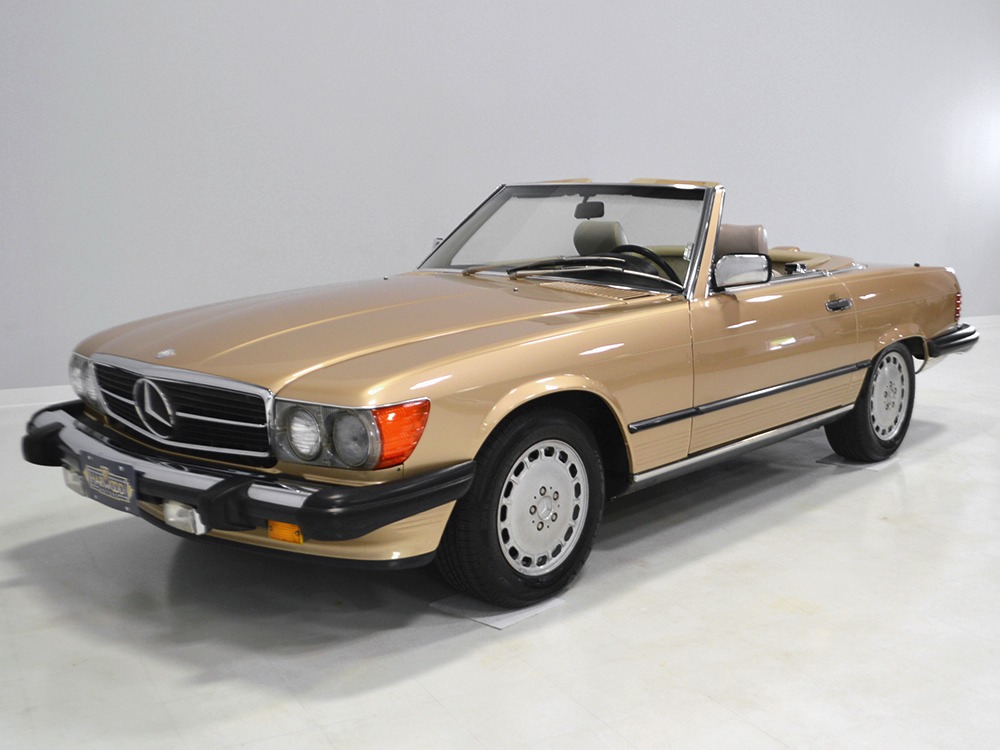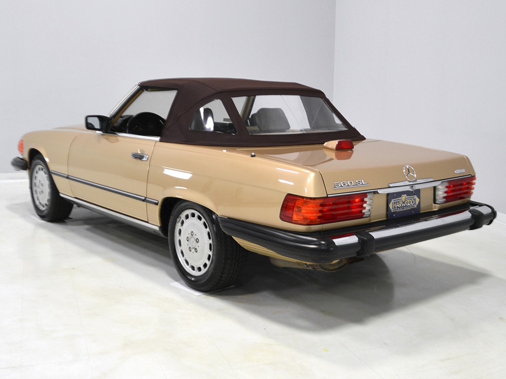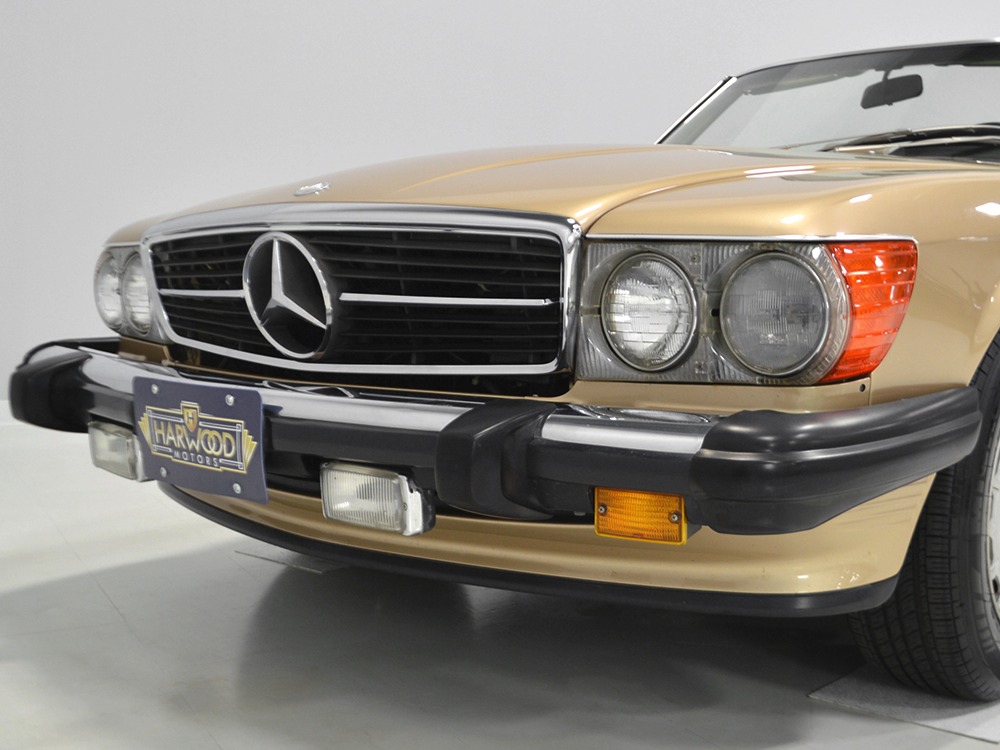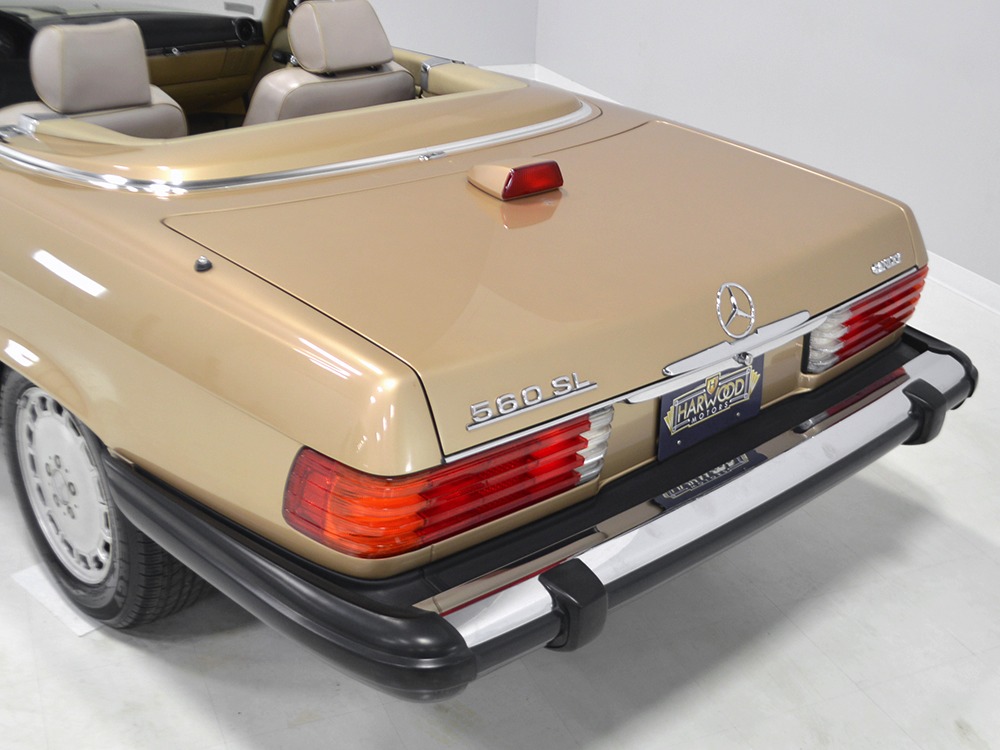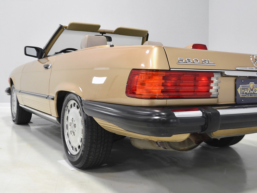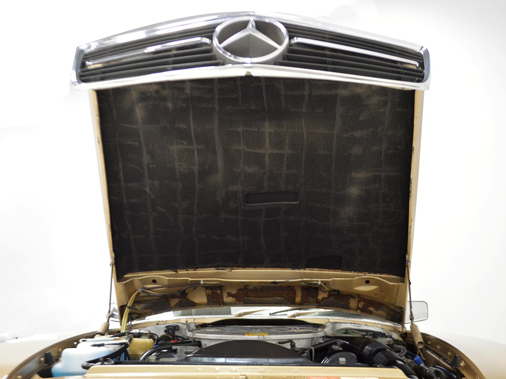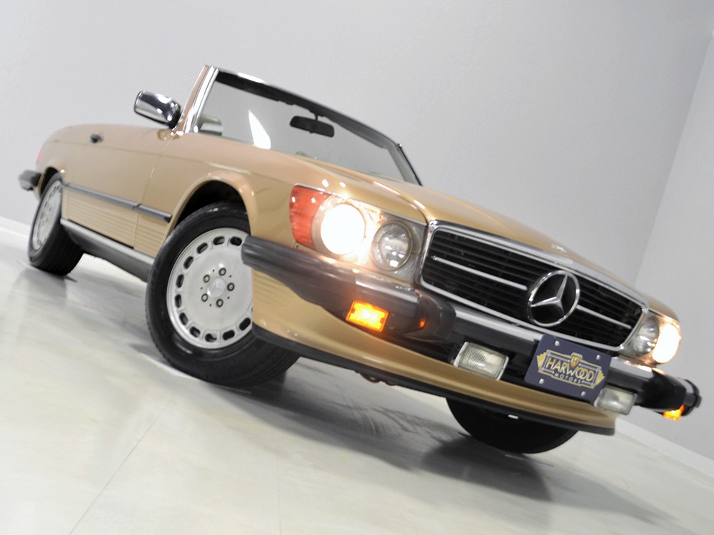 Remarkably, that remains true today, but given the affordable prices on many of the R107 SLs, you no longer need a seven-figure bank balance to put one in your garage. This 1986 560SL represents the pinnacle of R107 development and if you seek one of these cars, it’s exactly what you should be buying. There are cheaper SLs available, but if you do a little research you’ll quickly discover that there are definitely good SLs and bad SLs and that a cheap SL is perhaps the most expensive car you can own if service has been neglected. In contrast, this one has had just one owner and comes to us from his estate, so it’s got a known history. It shows just 84,213 original miles and is in excellent original condition. That’s factory-applied Desert Tan paint (which really looks like gold metallic) that is just the right shade to accentuate the long, low lines of the SL roadster and it remains in excellent condition overall. There are few nits to pick and the only notable one is that the driver’s front fender appears to have been repainted at some point (don’t worry, it’s far less noticeable out in the real world than in our photo studio—we didn’t even spot it until we saw the photos). Otherwise, this car is in very good condition throughout.