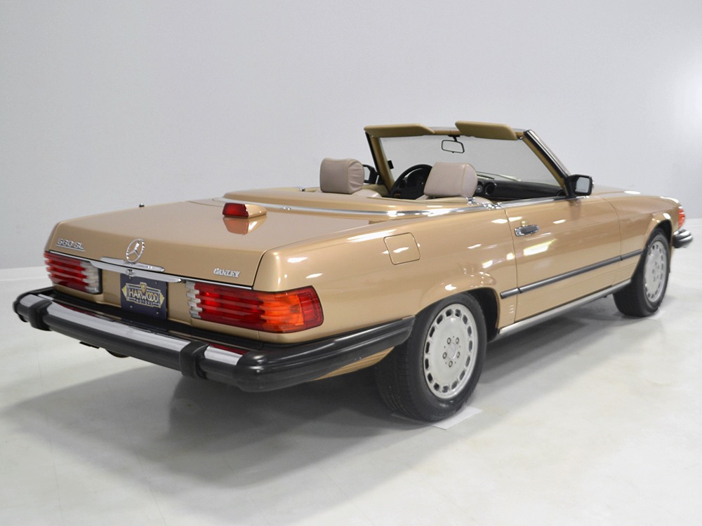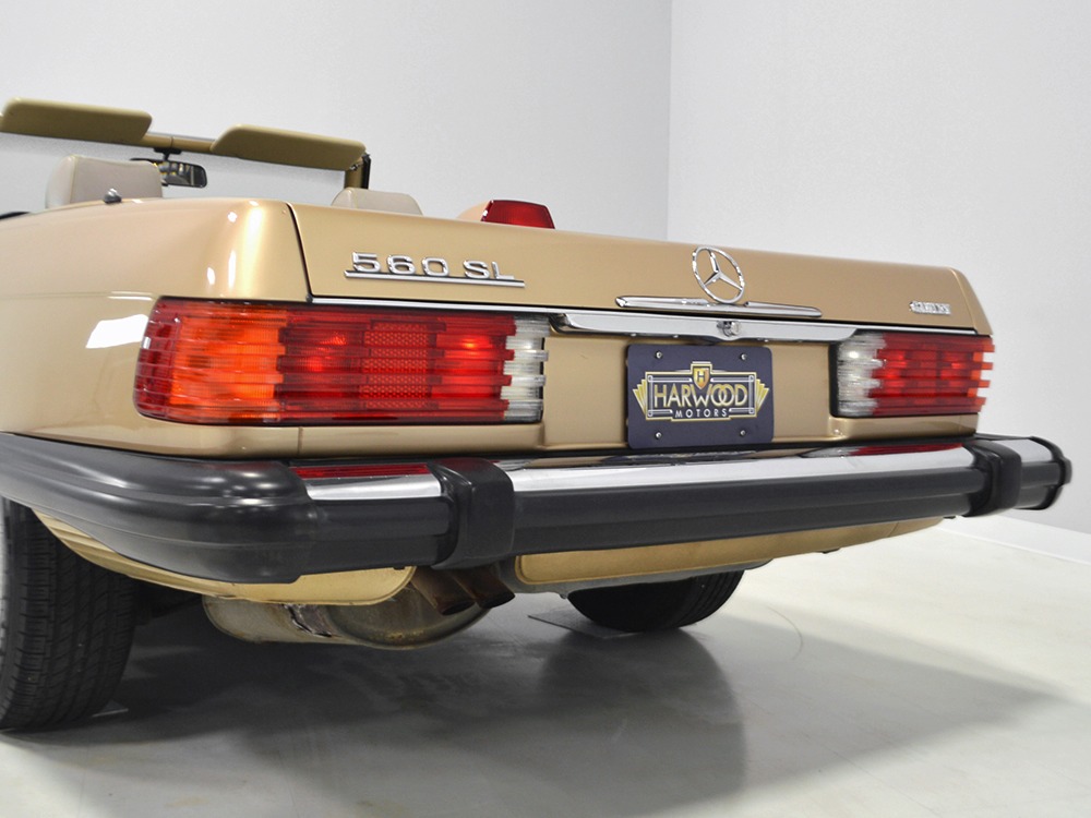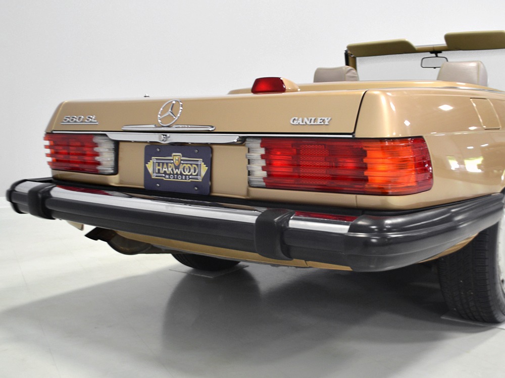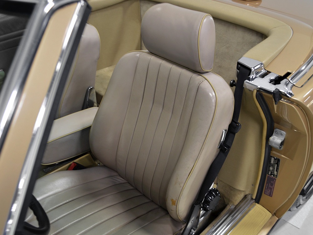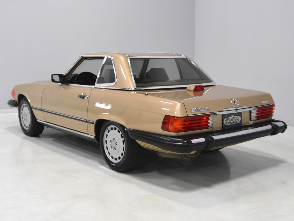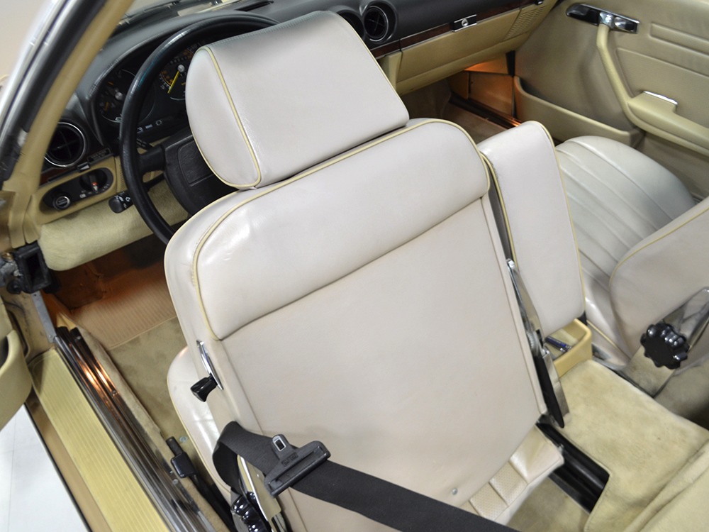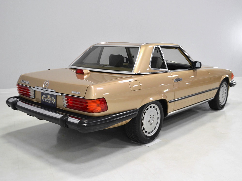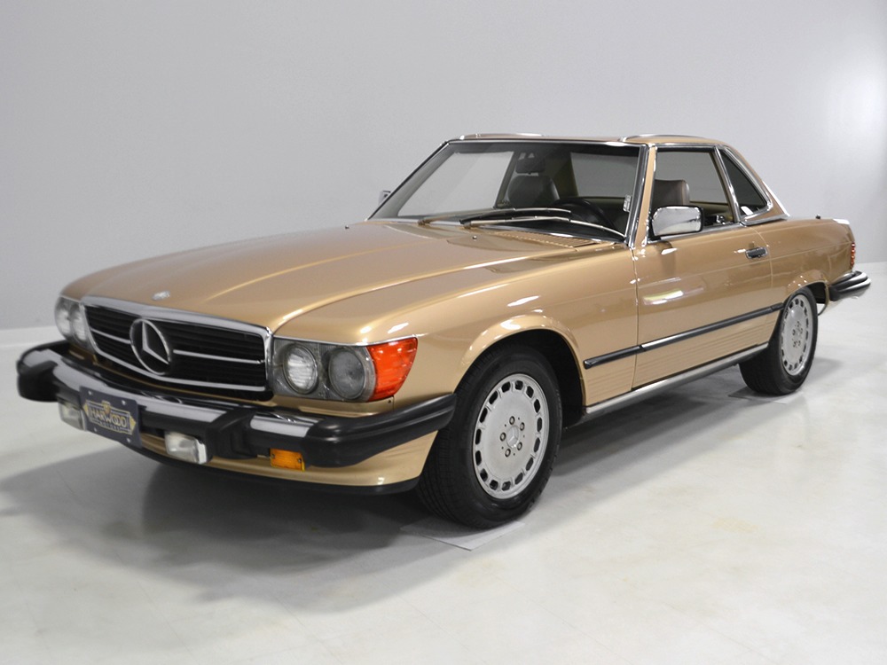 Remarkably, that remains true today, but given the affordable prices on many of the R107 SLs, you no longer need a seven-figure bank balance to put one in your garage. This 1986 560SL represents the pinnacle of R107 development and if you seek one of these cars, it’s exactly what you should be buying. There are cheaper SLs available, but if you do a little research you’ll quickly discover that there are definitely good SLs and bad SLs and that a cheap SL is perhaps the most expensive car you can own if service has been neglected. In contrast, this one has had just one owner and comes to us from his estate, so it’s got a known history. It shows just 84,213 original miles and is in excellent original condition. That’s factory-applied Desert Tan paint (which really looks like gold metallic) that is just the right shade to accentuate the long, low lines of the SL roadster and it remains in excellent condition overall. There are few nits to pick and the only notable one is that the driver’s front fender appears to have been repainted at some point (don’t worry, it’s far less noticeable out in the real world than in our photo studio—we didn’t even spot it until we saw the photos). Otherwise, this car is in very good condition throughout.