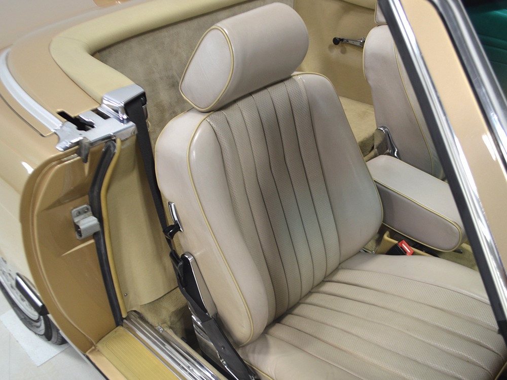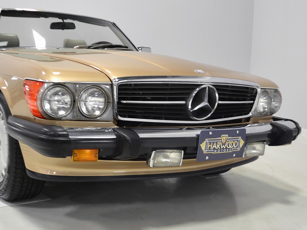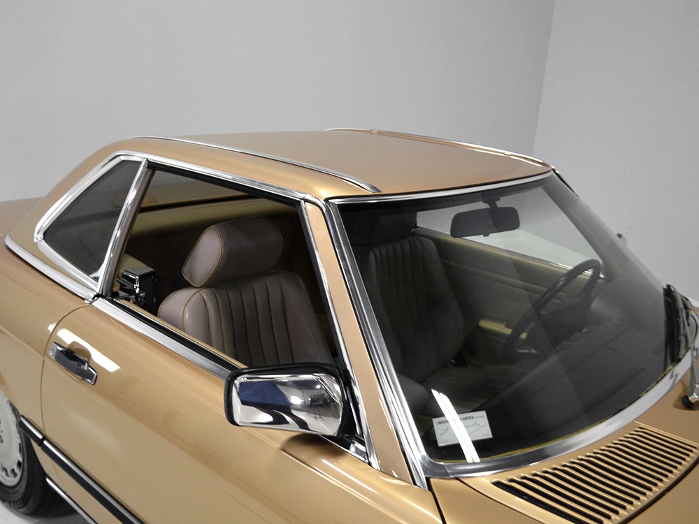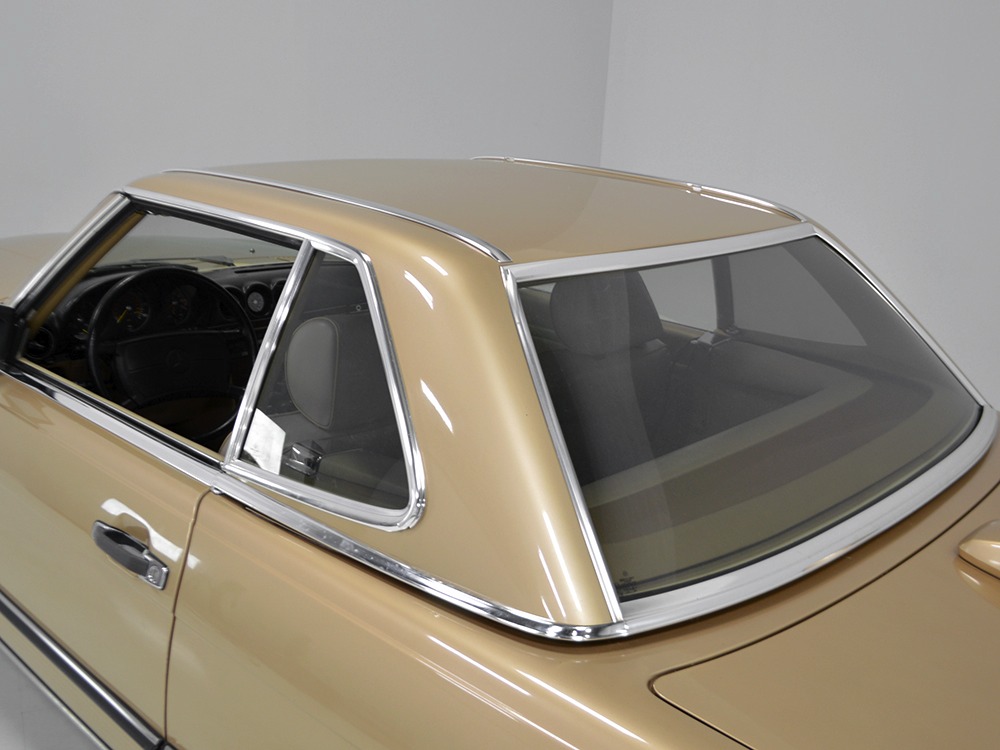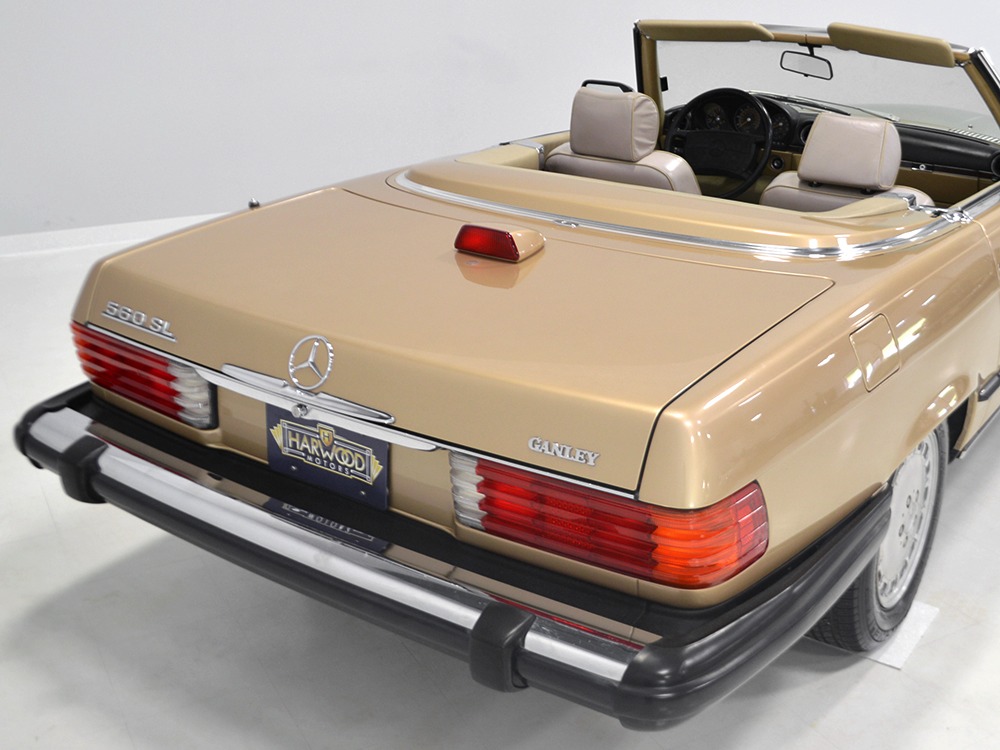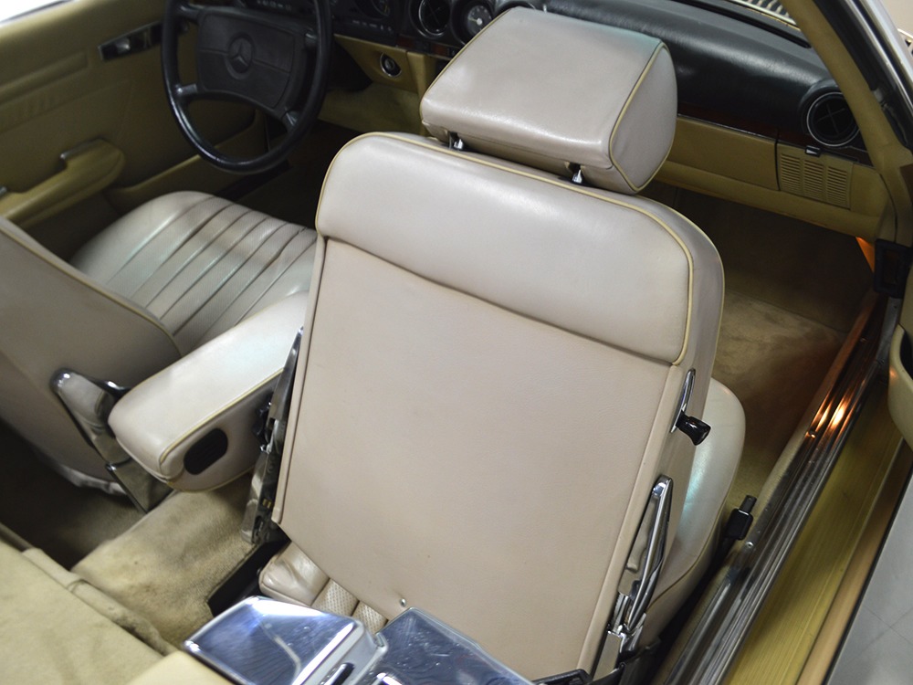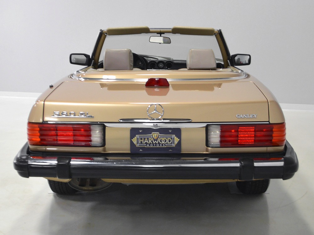 Remarkably, that remains true today, but given the affordable prices on many of the R107 SLs, you no longer need a seven-figure bank balance to put one in your garage. This 1986 560SL represents the pinnacle of R107 development and if you seek one of these cars, it’s exactly what you should be buying. There are cheaper SLs available, but if you do a little research you’ll quickly discover that there are definitely good SLs and bad SLs and that a cheap SL is perhaps the most expensive car you can own if service has been neglected. In contrast, this one has had just one owner and comes to us from his estate, so it’s got a known history. It shows just 84,213 original miles and is in excellent original condition. That’s factory-applied Desert Tan paint (which really looks like gold metallic) that is just the right shade to accentuate the long, low lines of the SL roadster and it remains in excellent condition overall. There are few nits to pick and the only notable one is that the driver’s front fender appears to have been repainted at some point (don’t worry, it’s far less noticeable out in the real world than in our photo studio—we didn’t even spot it until we saw the photos). Otherwise, this car is in very good condition throughout.