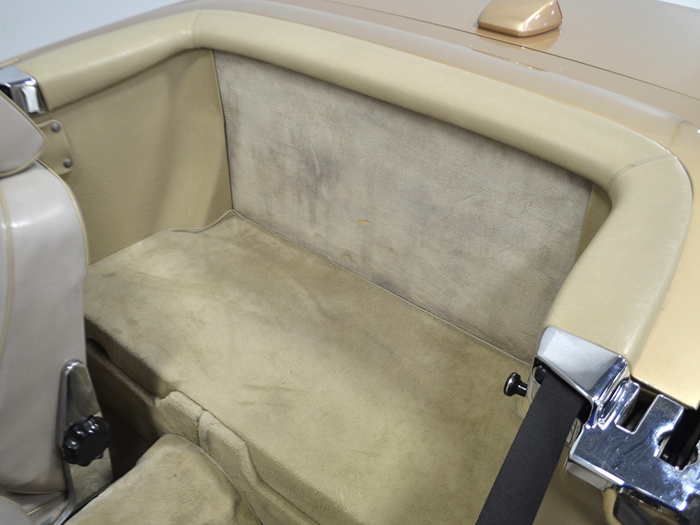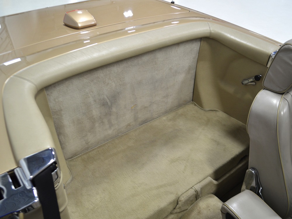 The 560 also benefits from a 4-speed automatic overdrive transmission, which gives it incredibly long legs on the highway and there are few better high-speed touring cars than this. The fully independent suspension is supple but competent, never jarring but with higher limits than you’d expect. ABS brakes were standard, too, so they’re there to bail you out if you do something foolish, but given the car’s abilities and demeanor, that’s pretty unlikely. The undercarriage is undercoated and in good order, although not detailed for show, and the exhaust system has an expensive-sounding purr to it that is wonderful to hear on the road with the top down. Correct alloy wheels are in excellent condition and not even stained by brake dust, carrying right-sized 205/65/15 Michelin radials.