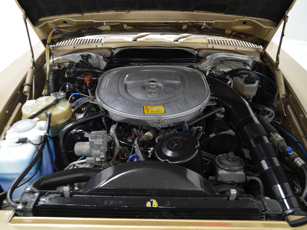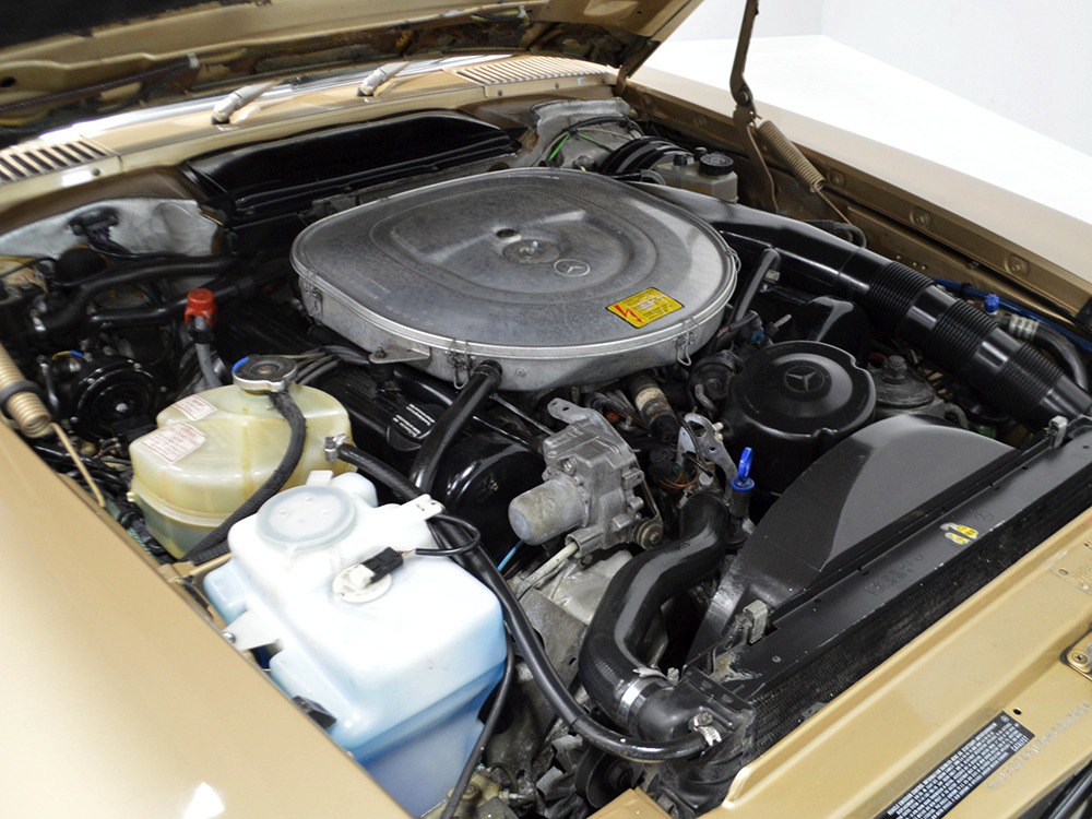 The biggest upgrades to the 560 were under the skin, and the name tells you all you need to know. The 3.8 liter engine of the 380SL was gone, replaced by a 5.6 liter SOHC V8 torque factory. Making 226 horsepower and more than 300 pounds of torque, it transforms the SL from a competent cruiser to a Teutonic muscle car that still feels fast today. Of course, it’s also well-mannered with a bubbly idle that sounds fantastic without being annoying and the last three decades have proven that this engine, if properly maintained, is virtually indestructible. As you’d expect from a car of this quality, it feels strong and durable, and thanks to a recent and extensive service, it’s ready to drive anywhere. It’s extremely clean under the hood, more evidence that it has never seen foul weather beyond a few rain showers over the years. Aside from routine service items, it is completely factory correct under the hood.