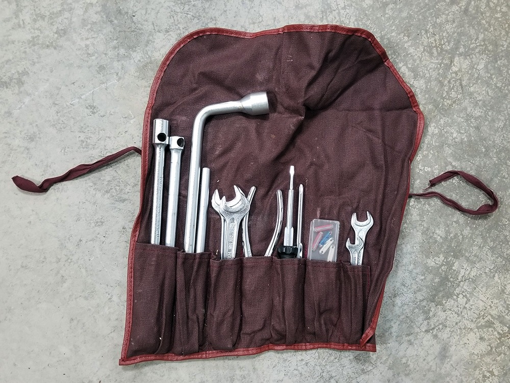 This car also includes a full set of manuals, service booklet with stamps, factory tool roll, and first-aid kit.