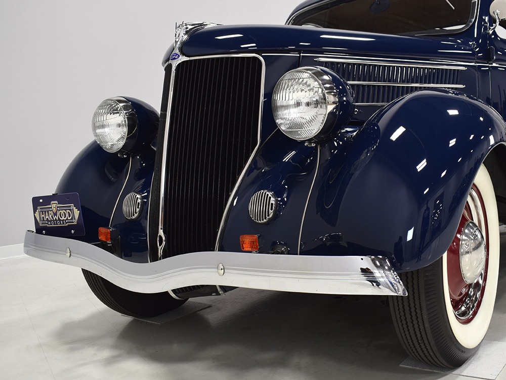 First of all, save your E-mails and phone calls. We KNOW this lovely little blue coupe looks like a 1936 Ford. We didn’t make a mistake with the year and we’re not idiots. However, it is titled as a 1935, so that’s how we’re presenting it to avoid future confusion when you receive your title and it says “1935 Ford” on it. Why, we can’t say—was it an early production car that was sold in 1935 in a state where cars were titled by the date they were sold instead of their model year? Is it a ’35 with a ’36 nose on it? We don’t know. What we do know is that it’s beautifully built, a joy to drive, and includes all the upgrades that make it easy to live with but which don’t erase its wonderful flathead Ford personality. Regardless of year, this is a good one.