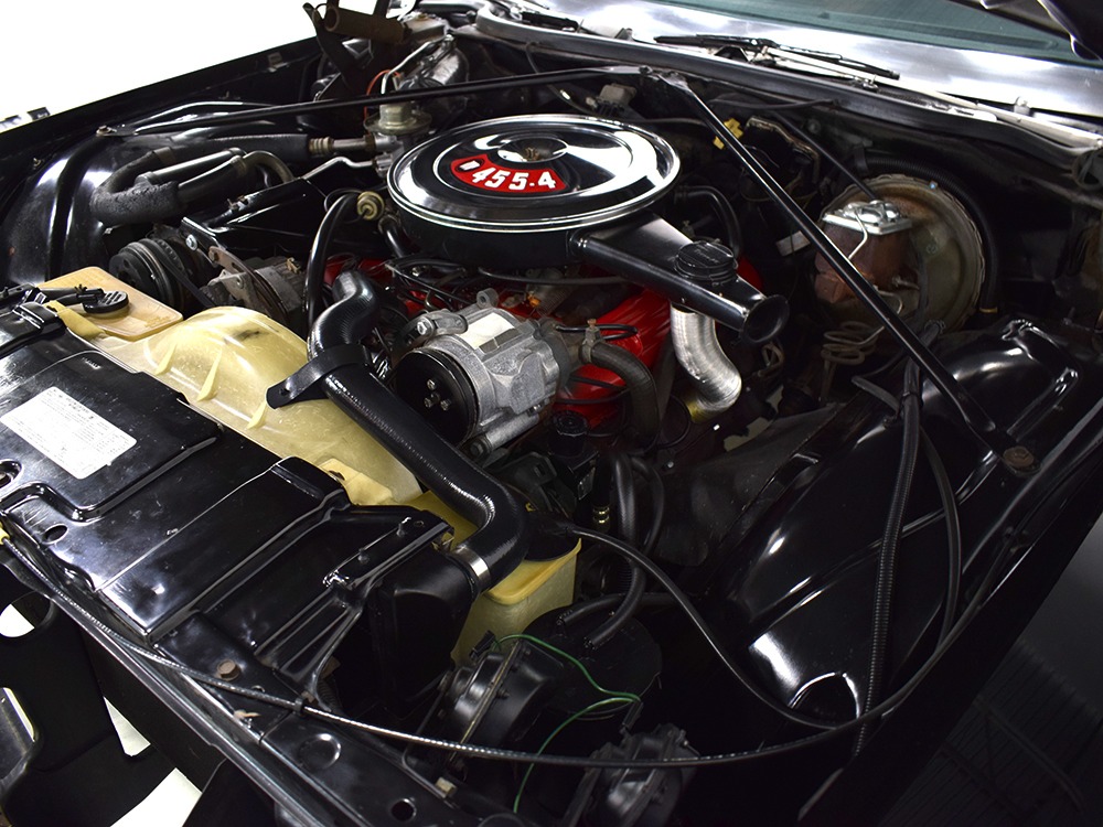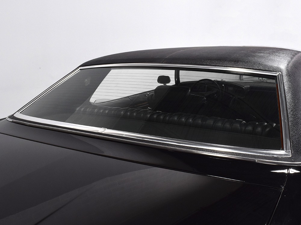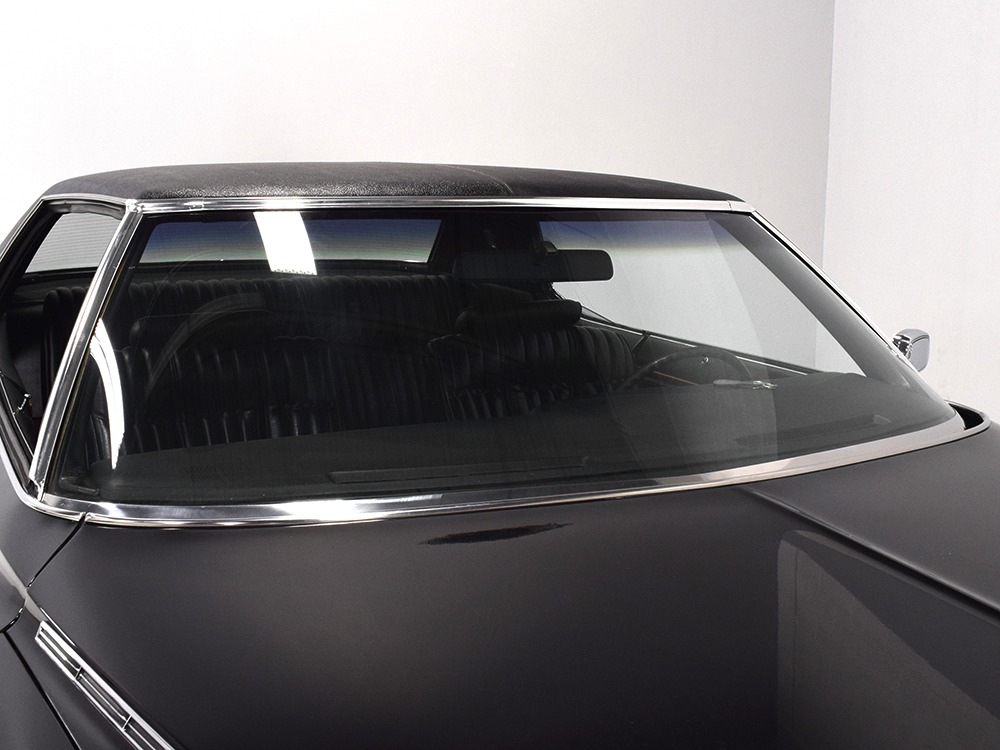 The car also has lots of nice chrome and stainless trim that remains in very good condition. Up close you might see some very, very minor signs of age, but the bumpers shine up brilliantly none of the stainless is dinged, and even the little chrome pods on top of the front fenders housing the fiber-optic indicators are in excellent condition. The only notable demerit is some pitting on the filler piece below the rear license plate, but for those of you who were there in 1973, you probably saw them sitting dealer lots with a few pits already starting to form—it’s quite common. That’s also the original black vinyl top and it looks almost new with zero popped seams and no signs of bubbles or other problems underneath.