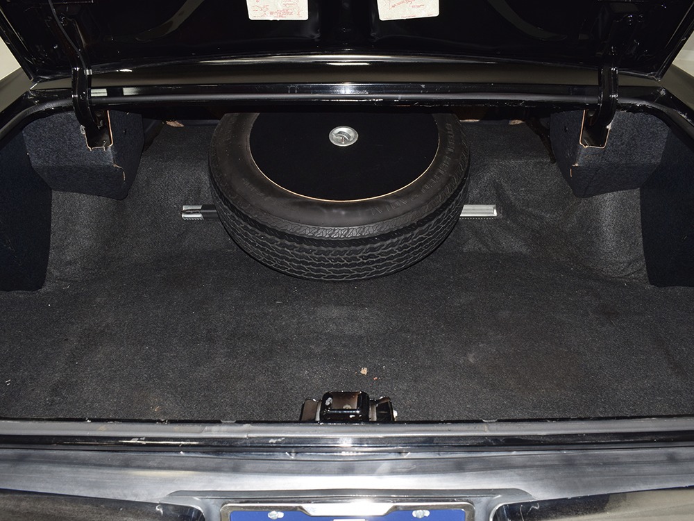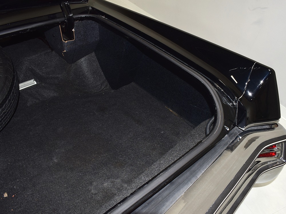 The stunning interior is extremely well preserved and almost like new. Black vinyl was actually optional on the Electra and it does a fairly convincing impression of leather. The seats are soft and comfortable and the materials remain supple so it hasn’t been cooking in the sun. There are no springs poking you from behind and it’s easy to see how you could settle in for a long highway journey in this car. There’s a great deal of faux wood throughout: door panels, dashboard, even the three-spoke steering wheel. It’s not terribly convincing, but that’s how they were doing it in 1973. This car includes a rather lengthy list of options, including cold factory A/C, power seat, power windows, power locks, rear defroster, tilt steering column, remote trunk release, and an AM/FM stereo radio with rear speaker. Even better, everything works, even the clock! The aforementioned fiber-optic indicators shine bright and clear, both in front and in back, and the radio sounds decent in the tomb-like silence of the Buick’s interior. Heck, even the ultra-annoying seat belt buzzer works like it should (you can easily disconnect it, but we don’t want to touch it). The back seat, of course, looks completely unused and there are aftermarket floor mats protecting the factory carpets, but the original floor mats are included—just try to find a set of those! The trunk also shows almost like new and includes what appears to be the original spare tire with its cover and a full jack assembly.