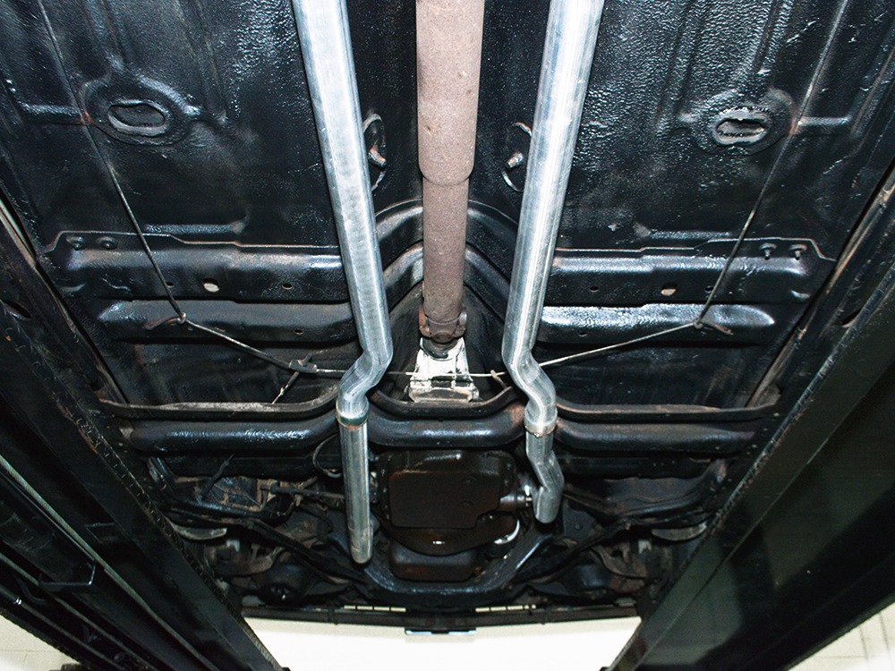 The only transmission available was GM’s indestructible TH400 3-speed automatic, which shifts imperceptibly through the gears but is always ready with a snappy downshift if you really need to hustle. The Buick doesn’t like to do that, but you’ll also find that getting ahead of the other cars in the stop light grand prix is insanely easy with this big yacht. Part of that snappy feeling is due to the optional 3.23 gears in back, a nice upgrade over the too-tall 2.73s that came standard. It’s still effortless on the highway, but there’s a bit more punch available at any speed. The floors are absolutely spotless and this car has never seen inclement winter weather, so there are no nasty secrets waiting for you later. A light dusting of undercoating has probably been there for decades, and it hides nothing but still keeps the steel protected. The suspension is legendary, absorbing bumps that would tear the axles out of a lesser car and keeping you isolated and serene inside. There are newer shocks at all four corners, which certainly helps, and the brakes have just been serviced so they are confidence-inspiring. The dual exhaust system is also brand new and the fat 235/75/15 whitewall radials have only 250 miles on them, so this car is ready to enjoy immediately.