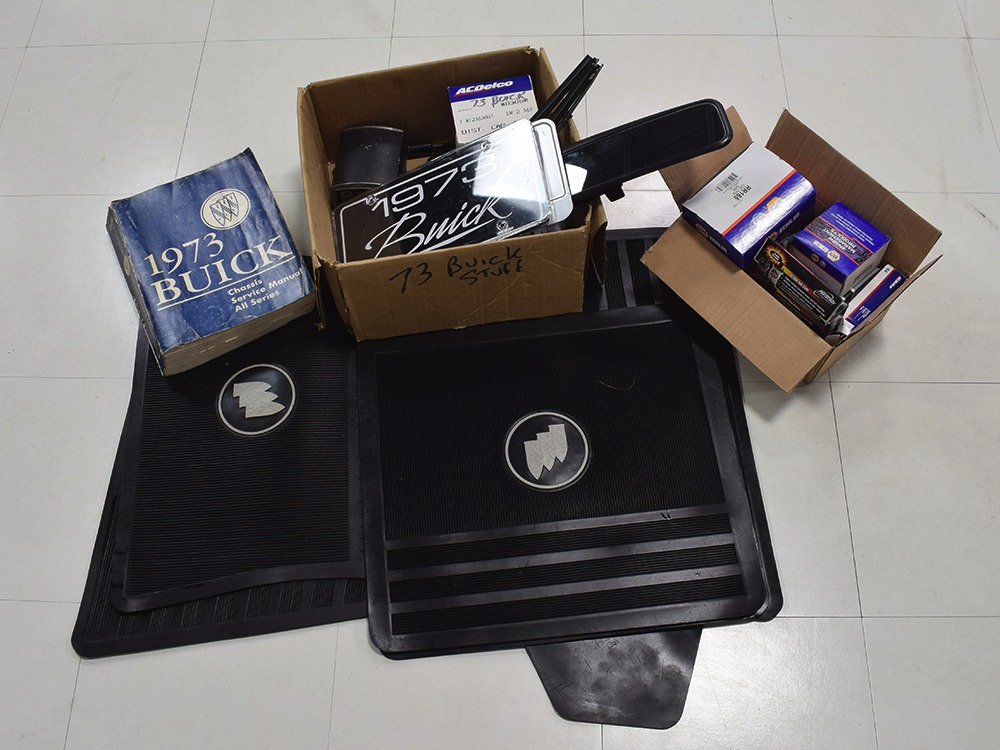 This car includes all the original owner paperwork, including manuals, service booklet, warranty book with the original owner and dealer’s names, and even a pair of Fisher Body line cards, which are similar to a build sheet. In addition, there are a lot of spare parts, including the original windshield wiper blades, mats, and a few other bits like filters and spark plugs. It also includes an original factory service manual.