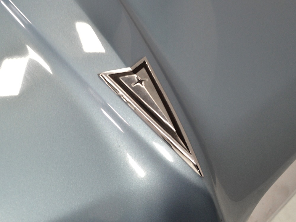 I know that most GTO owners tend to forget that these were performance cars first and foremost, because they drive them around like they’re made of glass and wipe them with diapers in a warm garage, but this blue coupe is different. That heavy-hitting 468 cubic inch stroker motor under the hood doesn’t care about sitting on the lawn looking pretty, it wants to go out and hurt someone. With a beefy bottom end designed to take a pounding, a seasoned 400 block, and a stout cam, the internals are certainly ready to rock. Outside, you get a set of lightweight Edelbrock aluminum heads, a matching Edelbrock 4-barel carburetor, and a medium-riser aluminum intake that really fattens up the torque curve without hurting the way it revs. The block itself was painted Pontiac Turquoise to at least try to make it look authentic, and the chrome valve covers were standard-issue on the GTO. Other upgrades include a serpentine belt drive system for the accessories, a modern dual master cylinder and brake booster for the front disc brakes, and an electronic ignition system to light it up. The inner fenders and firewall are gloss black to provide a high-contrast background and to help shave weight, the heater has been removed.