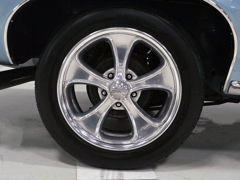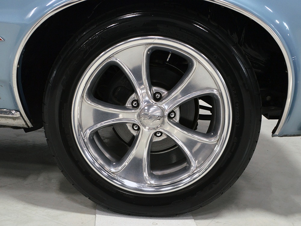 Underneath, there’s the aforementioned Muncie 4-speed, which features a new clutch, and it spins a rugged 12-bolt rear end with 3.73 gears inside, so acceleration is borderline violent off the line. There are a set of ladder bars built into the rear suspension to assist with traction issues and those beautiful long-tube headers feed a stainless 3-inch exhaust system with an X-pipe and Magnaflow mufflers that sound wicked without getting annoying while you’re cruising. This is still a very drivable car, don’t worry. It’s clean underneath, with a dusting of undercoating on the floors that hides nothing, and even with the suspension upgrades, it rides and handles the way a GTO should. The only real warning that you get that this car isn’t quite what it appears are those handsome Boyd Coddington wheels with fat 225/50/17 performance radials that give it a bit of an updated look.