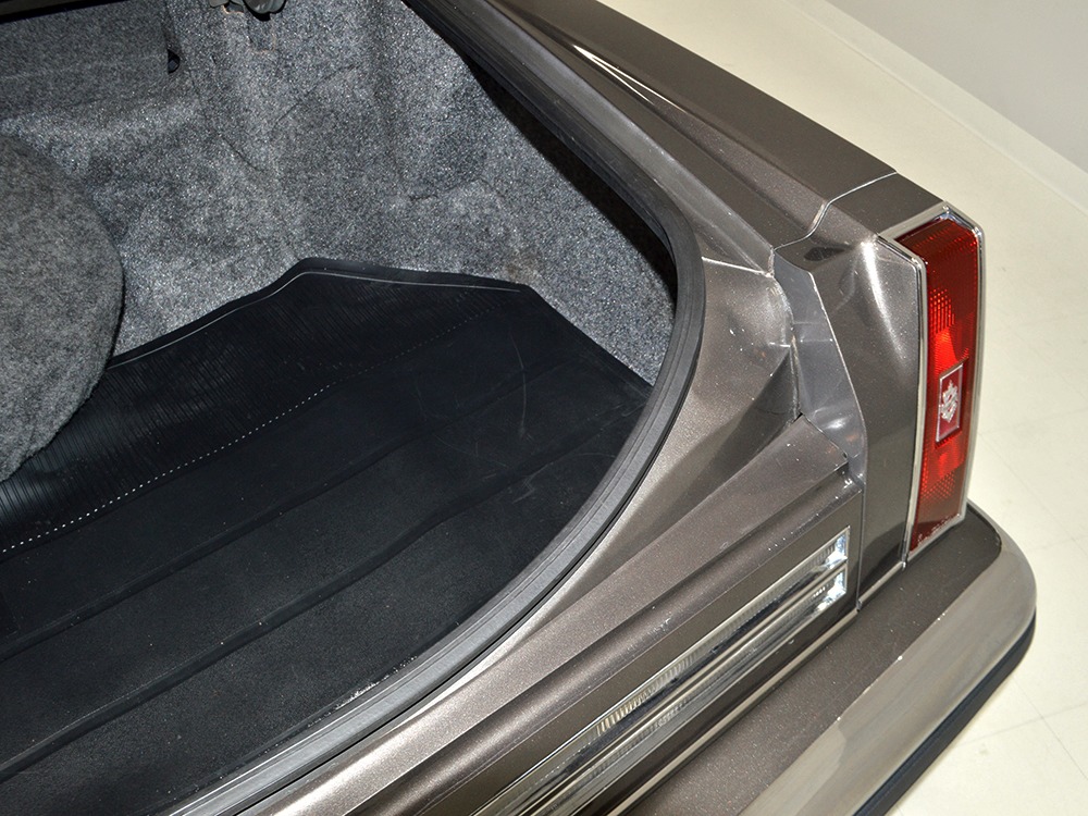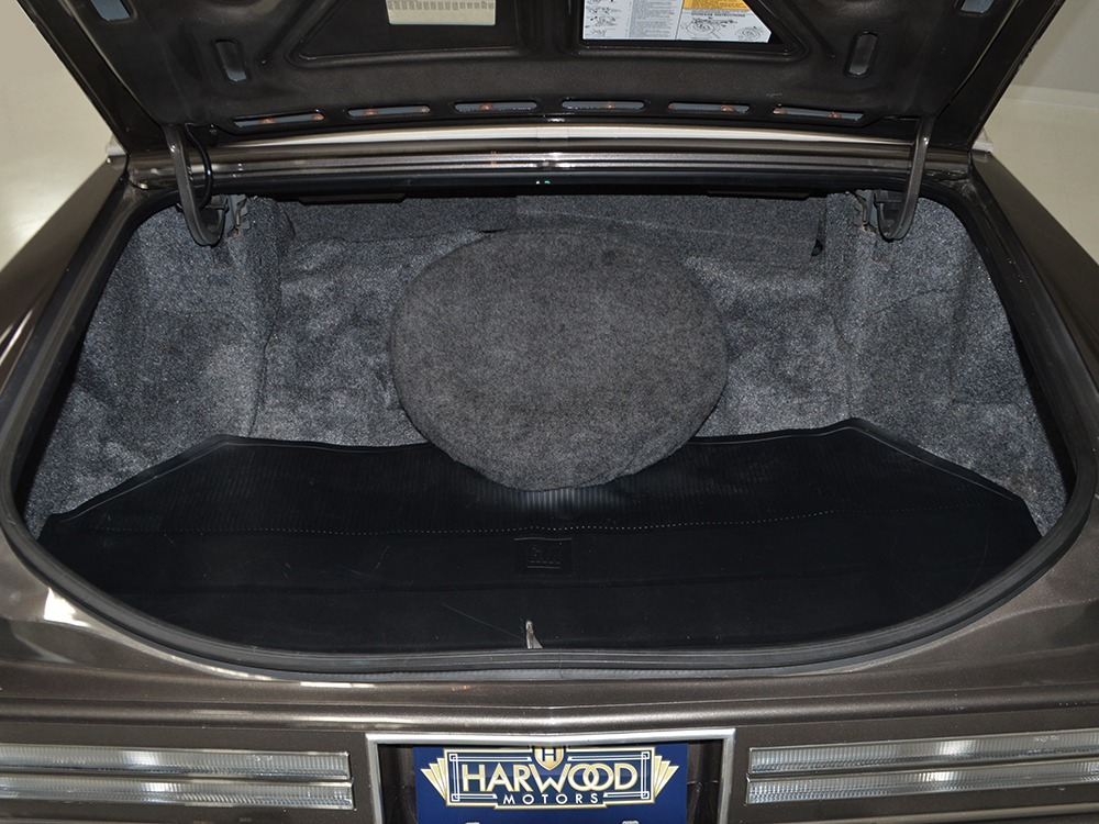 “Plush” seems like an inadequate word to describe the Oldsmobile’s sumptuous interior. Deep “Prima” velour upholstery looks fantastic and you sink into the seats like your favorite easy chair at home. There’s virtually zero wear save for some discoloration on the driver’s lower cushion where people have been sliding in and out, and the moment you settle in behind the wheel you’re transported back to 1984. The 98 Regency was already the top-of-the-line, but the Brougham took it up a notch with rather convincing-looking faux wood throughout the interior, including on the door panels and dash, and even on the lower sides of the seats where the power adjustment controls are. Speaking of power seats, this car is LOADED, featuring almost every single option you could get in 1984. The basics include power windows, locks, and seats (with passenger power recline!), automatic climate control, cruise control, a rear defroster, and a tilt wheel with unique telescope feature—look at the adjuster on the wheel, have you ever seen one like that before? Other great options include fully operational fiber-optic monitors for the lights, power antenna, and dual remote mirrors. Everything works except the antenna (there appears to be a replacement unit in the trunk), and the driving experience is just as if it rolled off the dealer’s lot. There are no squeaks or rattles, every switch moves with precision, the seats are firm, and you can’t hear or feel the engine running from behind the wheel. There’s massive legroom in back with seats that have probably only been used once or twice and the trunk is as new, including a spare tire that has never been used.