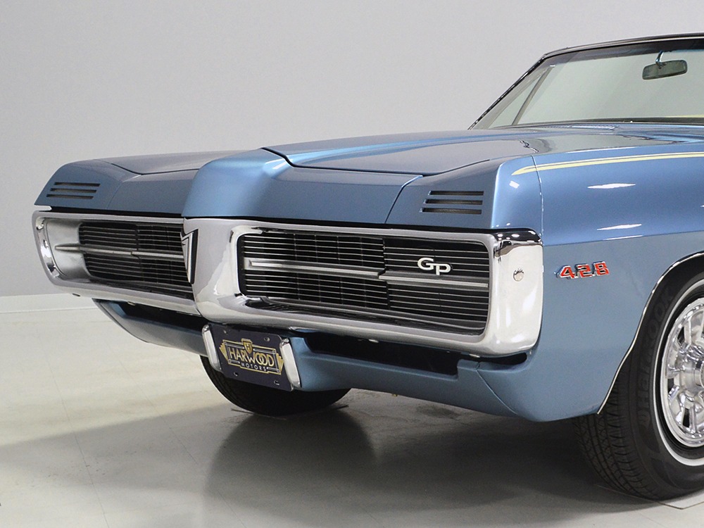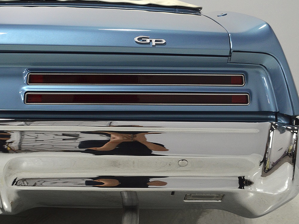 You’d expect a lot of chrome on a luxury sled like this, and you won’t be disappointed. The big bumper/grille assembly up front features the traditional Pontiac beak and yes, the hidden headlights are fully operational. The rear bumper is massive and it, too, was treated to a show-quality triple-chrome restoration. Other details like the stainless rocker trim, the subtle “GP” emblems, and the critically-important ‘428’ badges are all as crisp and fresh as if they’d popped out of the molds last week. The restoration on this car cost well into the six-figure range and it shows everywhere you look.