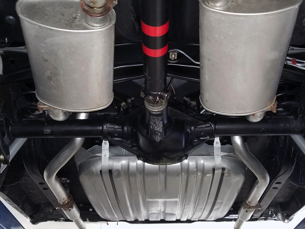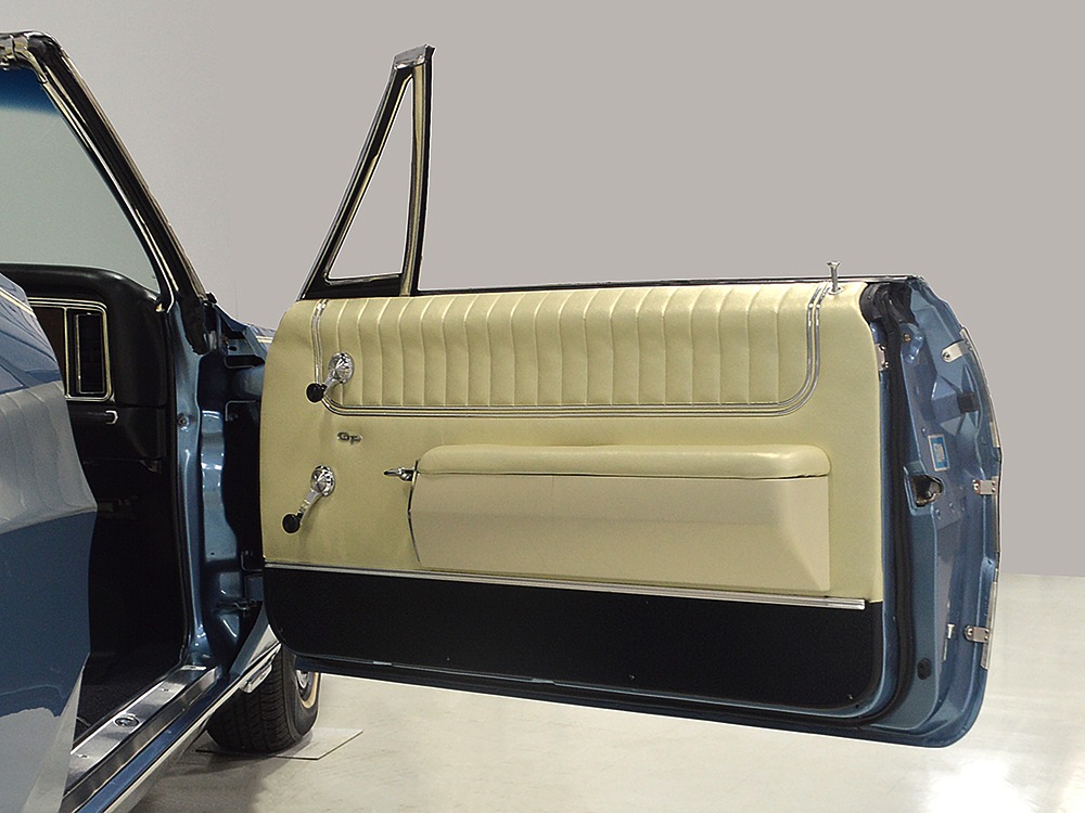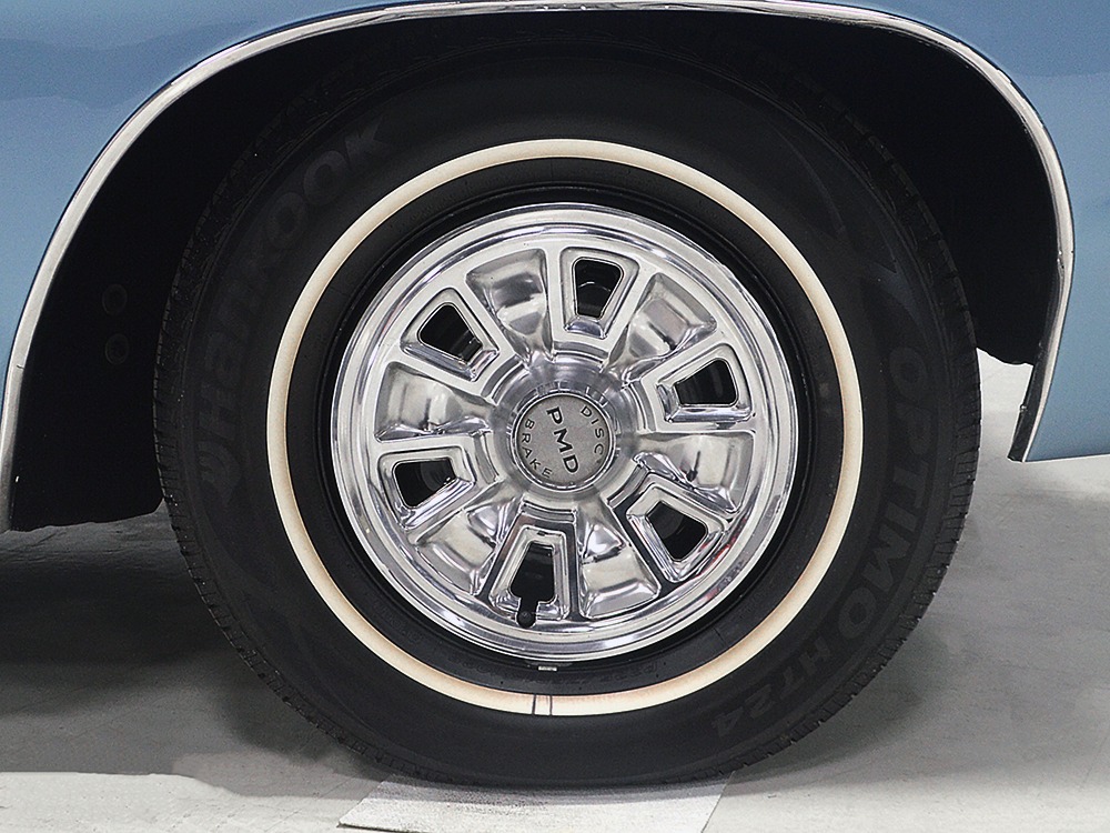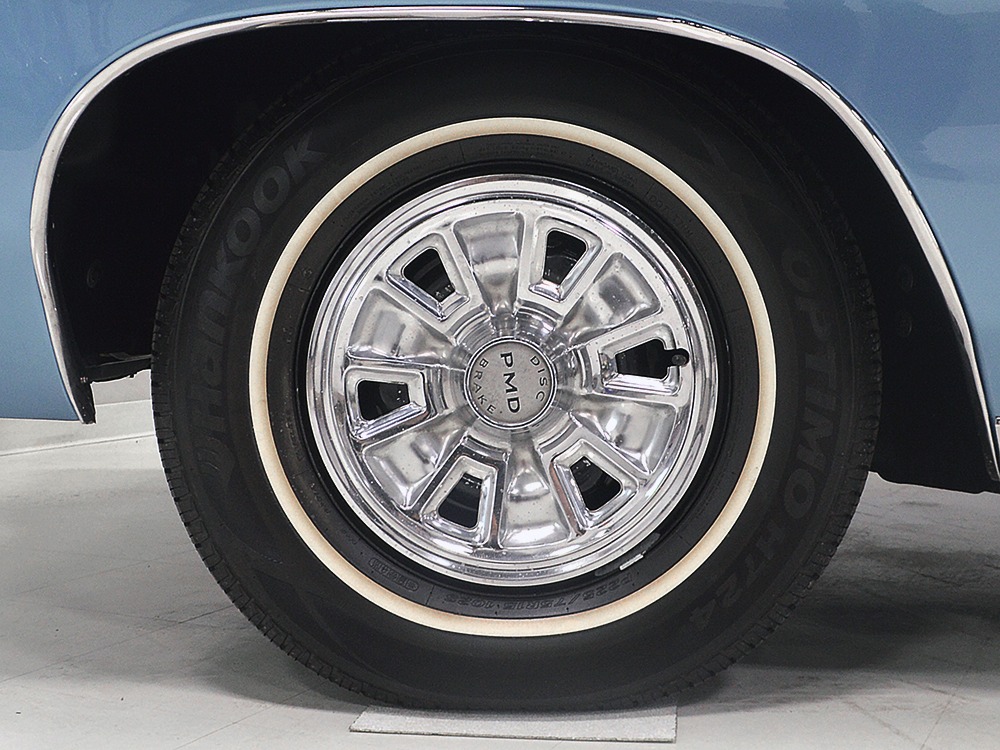 The Muncie M20 4-speed manual transmission is likewise correct and we have photos of all the critical numbers before it was installed in the car. The body was off the frame for the restoration and there’s nothing on the car that hasn’t been refinished, from the frame to the satin black underbody to the steering and braking systems. This car carries optional $110.59 front disc brakes, which is reassuring when you have this much mass able to gather speed so quickly. A new dual exhaust system has the right mufflers and mellow tone that’s appropriate for a luxury/muscle car such as the Grand Prix, and it has proper turn-downs under the rear bumper. The 10-bolt rear end was factory equipment and is packed with 3.23 gears on a limited slip, making this a fantastic highway cruiser. Factory steel wheels and hubcaps are protected by a set of fresh 225/75/15 whitewall radials.