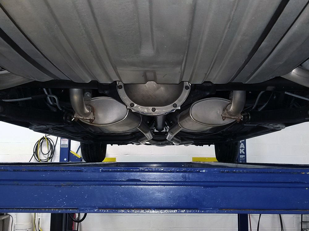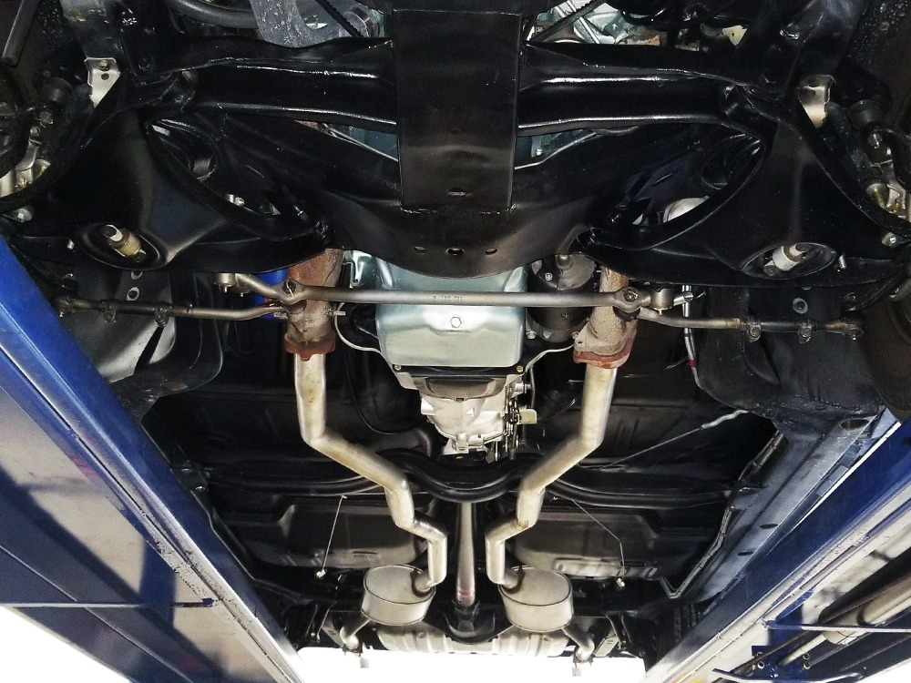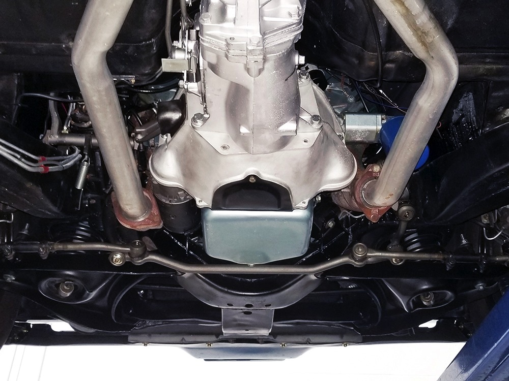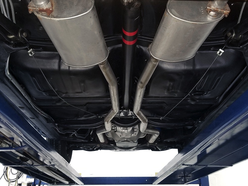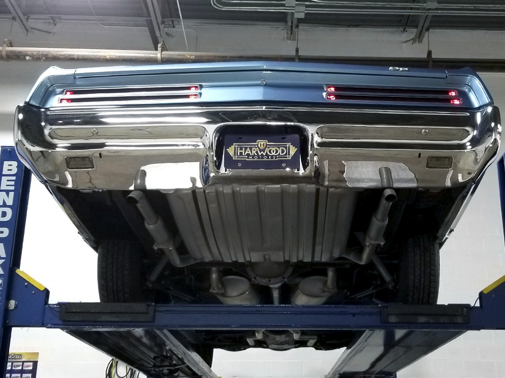 The Muncie M20 4-speed manual transmission is likewise correct and we have photos of all the critical numbers before it was installed in the car. The body was off the frame for the restoration and there’s nothing on the car that hasn’t been refinished, from the frame to the satin black underbody to the steering and braking systems. This car carries optional $110.59 front disc brakes, which is reassuring when you have this much mass able to gather speed so quickly. A new dual exhaust system has the right mufflers and mellow tone that’s appropriate for a luxury/muscle car such as the Grand Prix, and it has proper turn-downs under the rear bumper. The 10-bolt rear end was factory equipment and is packed with 3.23 gears on a limited slip, making this a fantastic highway cruiser. Factory steel wheels and hubcaps are protected by a set of fresh 225/75/15 whitewall radials.