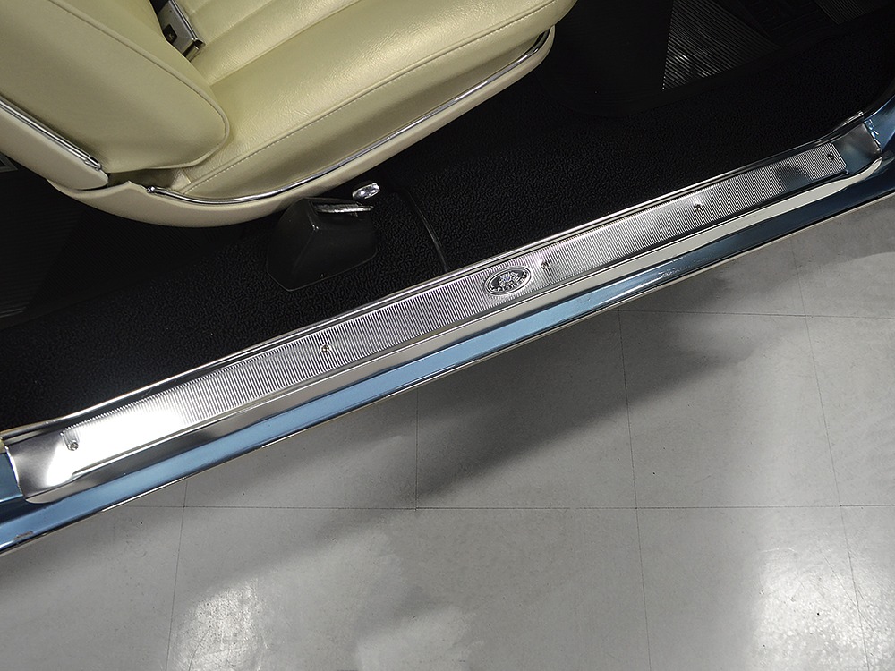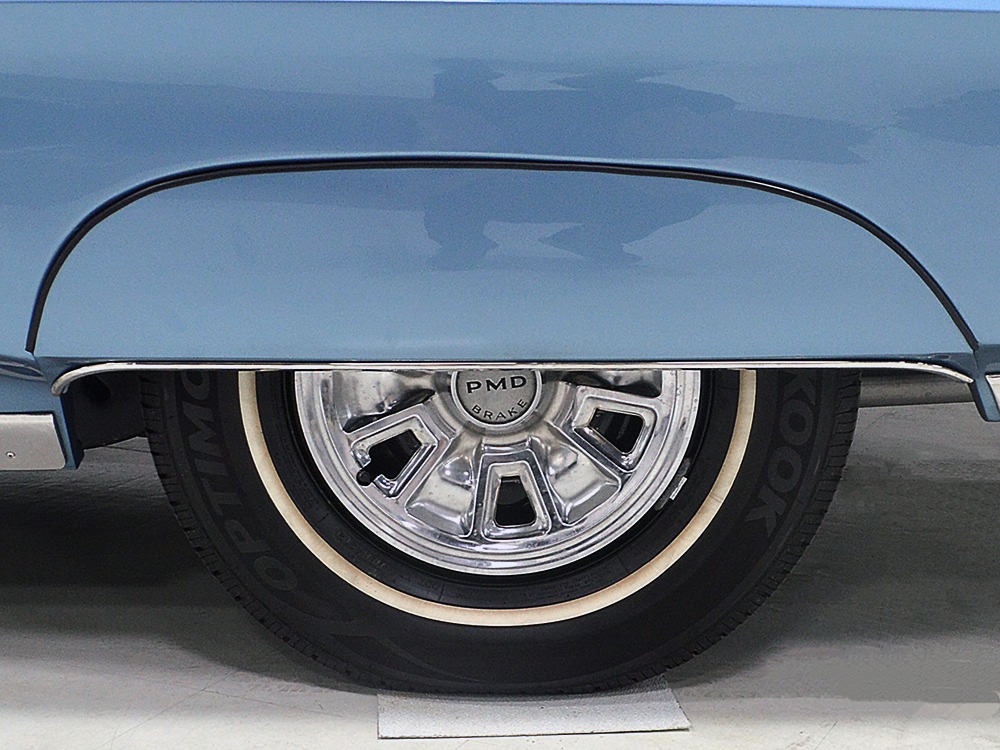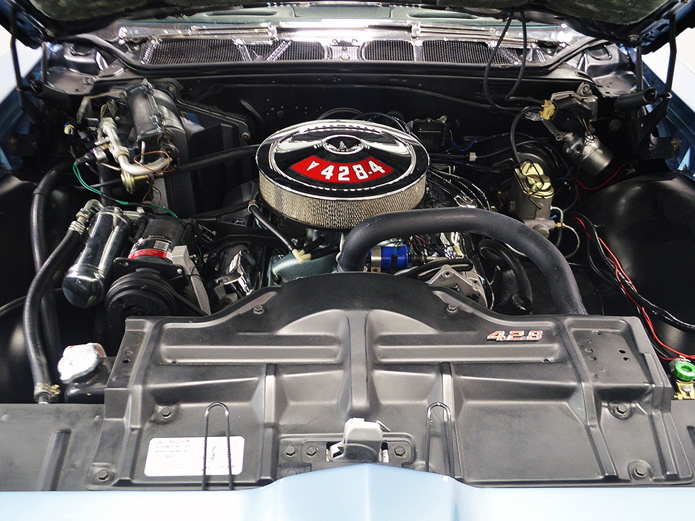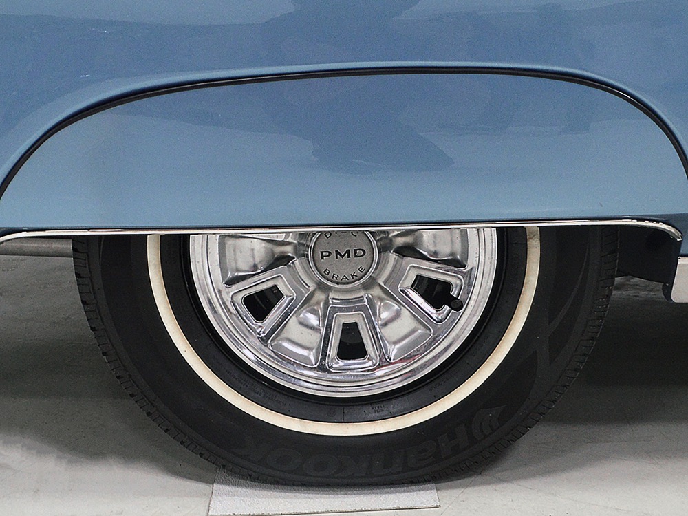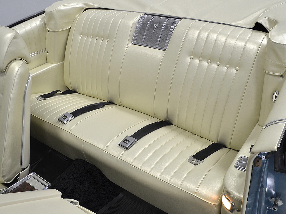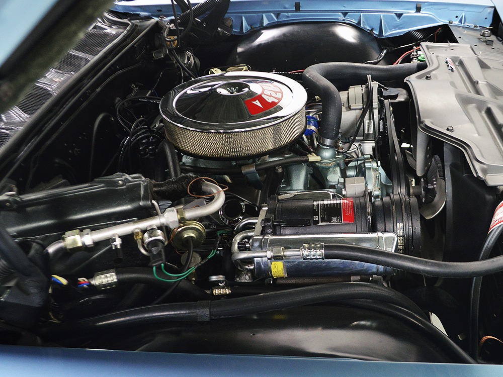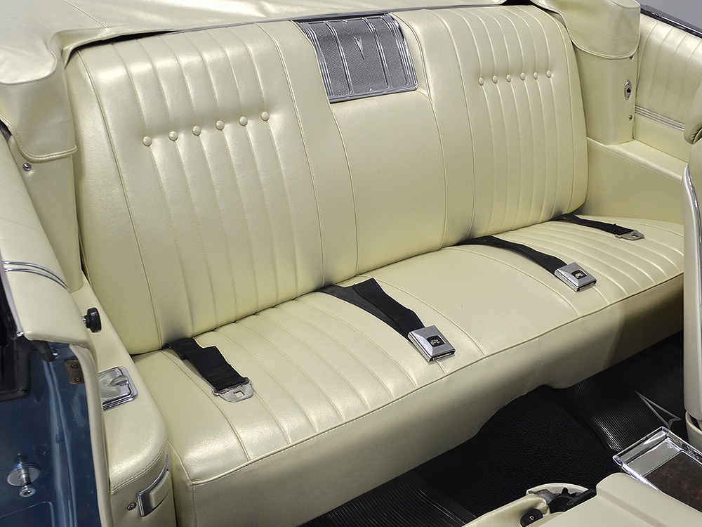 It is, of course, fully rebuilt to stock specs and has about 2000 miles on the restoration, so it is broken in but still quite fresh. It starts quickly and easily with just a single press of the throttle to set the choke, then settles into an easy, unobtrusive idle. Sure, there’s a big cam working in there, so it’s not invisible, but this luxury car is reminding you that it can run with a GTO. Correct Pontiac Turquoise metallic engine enamel gives it the right look, along with a set of chrome valve covers that were a Pontiac trademark on their performance engines (they obviously knew guys would be looking around under the hood). Correct markings, decals, and even things like the tower hose clamps make this car extremely correct. The A/C has been converted to R134a so it’s easy to service, but the changeover was invisible so you won’t lose any points on the show field. The heavy-duty cooling system has no problems keeping it healthy and throttle response is RIGHT NOW thanks to the giant 4-barrel carburetor up top. You will also find new wiring, correct vacuum systems for the headlights, and even all the extra little ground straps on the block, details that many restorers omit.