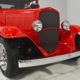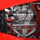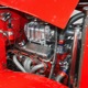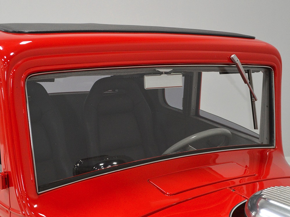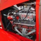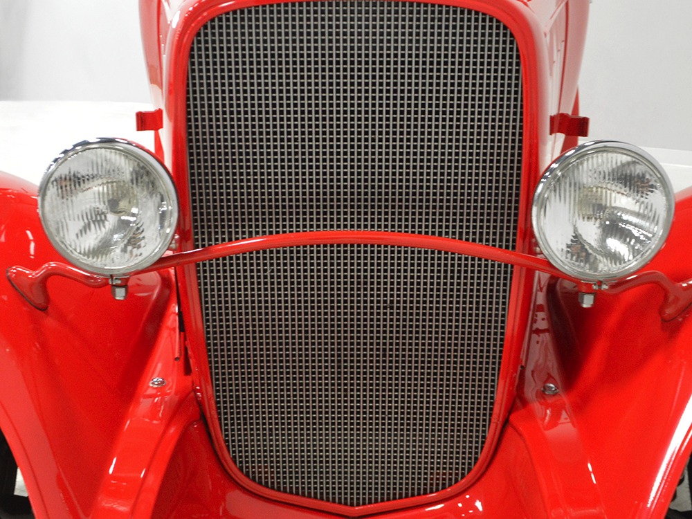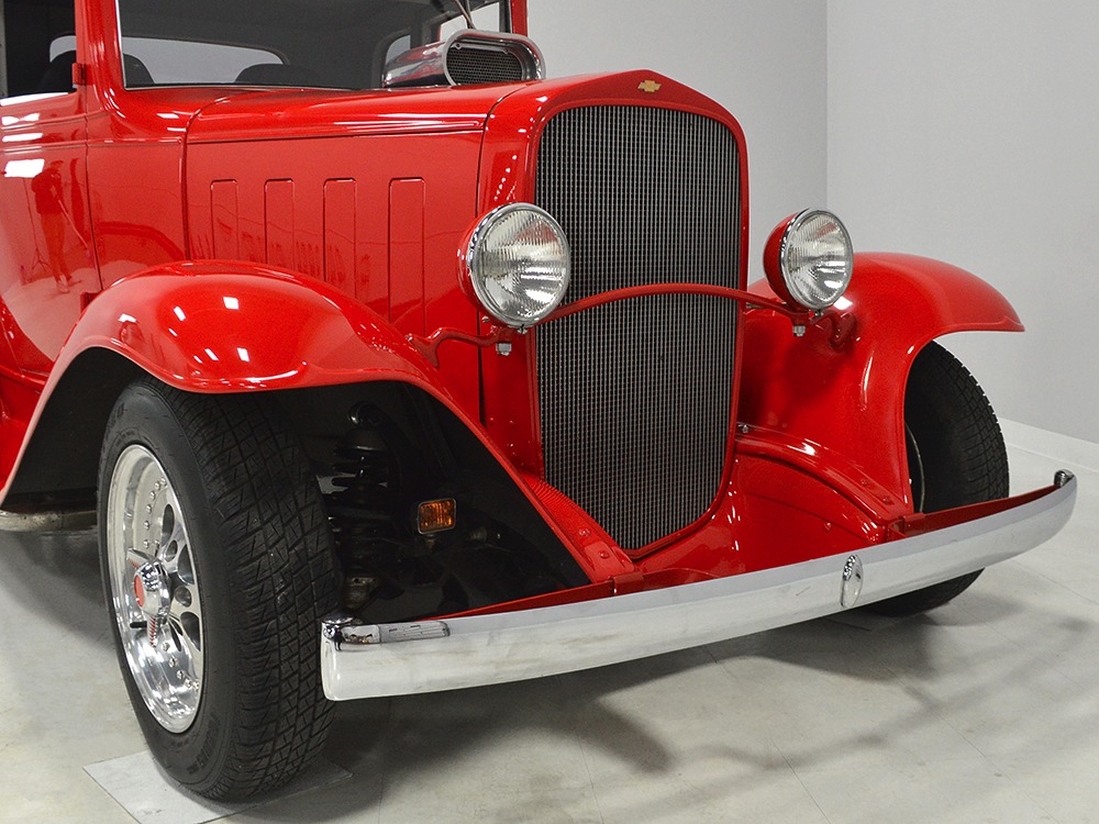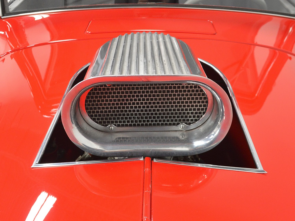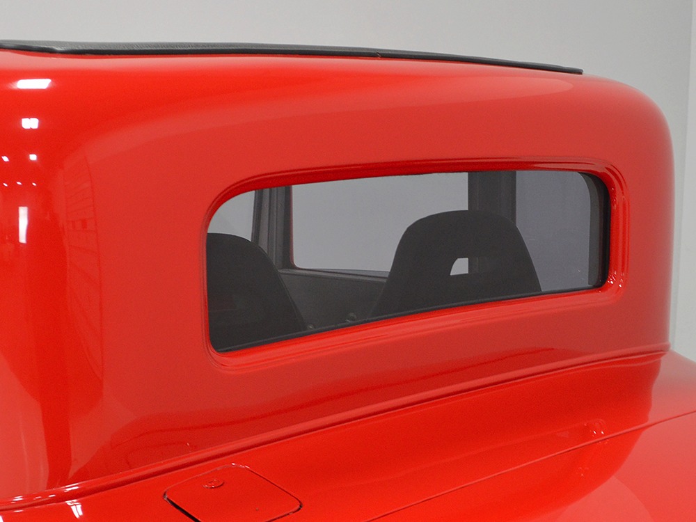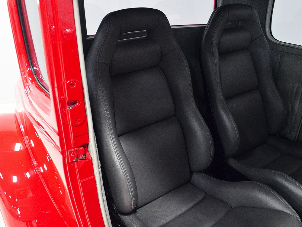 It is an older build but thanks to a fresh coat of Porsche Guards Red paint, it looks very contemporary and extremely crisp. It was not an inexpensive paint job and working with clean OEM steel (only the running boards and rear fenders are ‘glass), it looks far more expensive than it is. Modifications to the clean Chevy bodywork are minimal, mostly related to the headlights and that low-profile blower scoop sticking out of the hood. It wasn’t chopped or shaved, giving it a classic look that will never go out of style. And to their credit, they resisted adding graphics or other paint tricks, so it will look contemporary for decades to come. Fit and finish are excellent, with doors that open and close easily, neat gaps even around the hood, and a great stance that’s aggressive but street-friendly. Even the fabric insert in the top remains in place. The original grille shell was painted to match the bodywork and there’s a dropped headlight bar with a set of King-Bee-style lamps, all of which really clean up the nose. The doors on the hood still open to manage airflow over the warmed-over small block and original chrome bumpers not only provide protection, but give it a finished look. The car is sleek, clean, and restrained (if such a thing is possible in a red car). Clearly they knew what they were doing when they put this one together.
