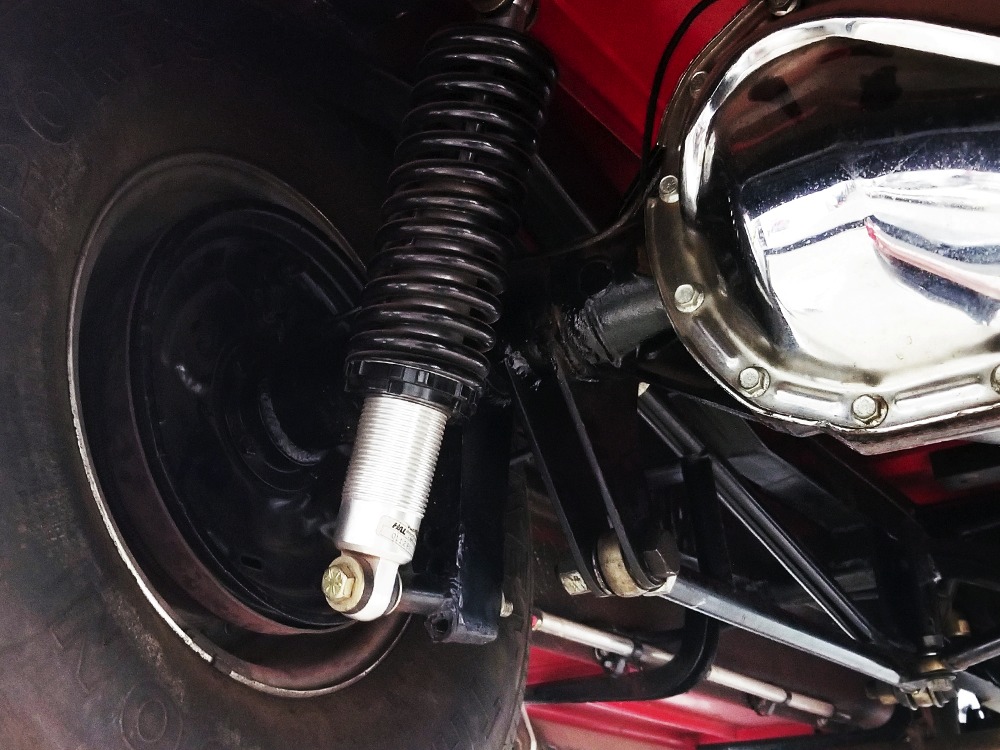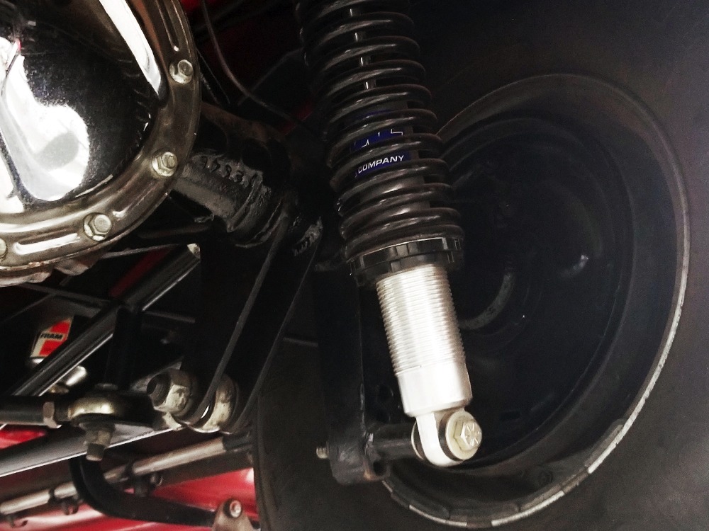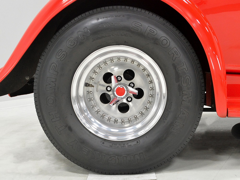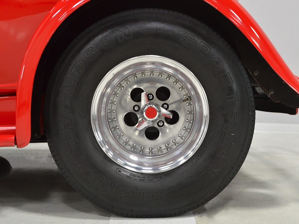 There’s probably more than the current asking price wrapped up in the running gear, which is headlined by a 350 cubic inch Chevy V8 topped with that beautiful GMC 4-71 supercharger. A single 750 Holley double-pumper on a Hilborn intake handles feeding the beast while a custom-grind Comp Cams camshaft and valvetrain with roller rockers give it great street manners. An MSD ignition system lights it up and is always the right choice with a blown engine, pulling out timing before anything gets broken. It’s also nicely detailed with lots of polished aluminum, braided stainless, and red paint on the block itself. There’s a 4-inch thick Walker radiator up front with a powerful electric fan, so keeping it cool isn’t difficult and you’ll be shocked by how quickly it starts and how easily it idles, even when it’s cold. This is not a fussy, high-strung motor that needs a lot of attention. It’s tuned for pump gas, so hitting the road is no big deal and once you dip into the boost, you’ll be addicted, because that engine just flings this lightweight little coupe down the road. It’s potent.
