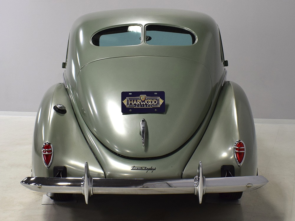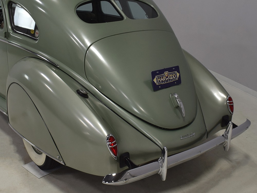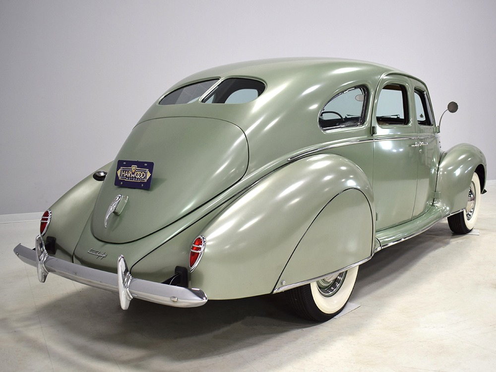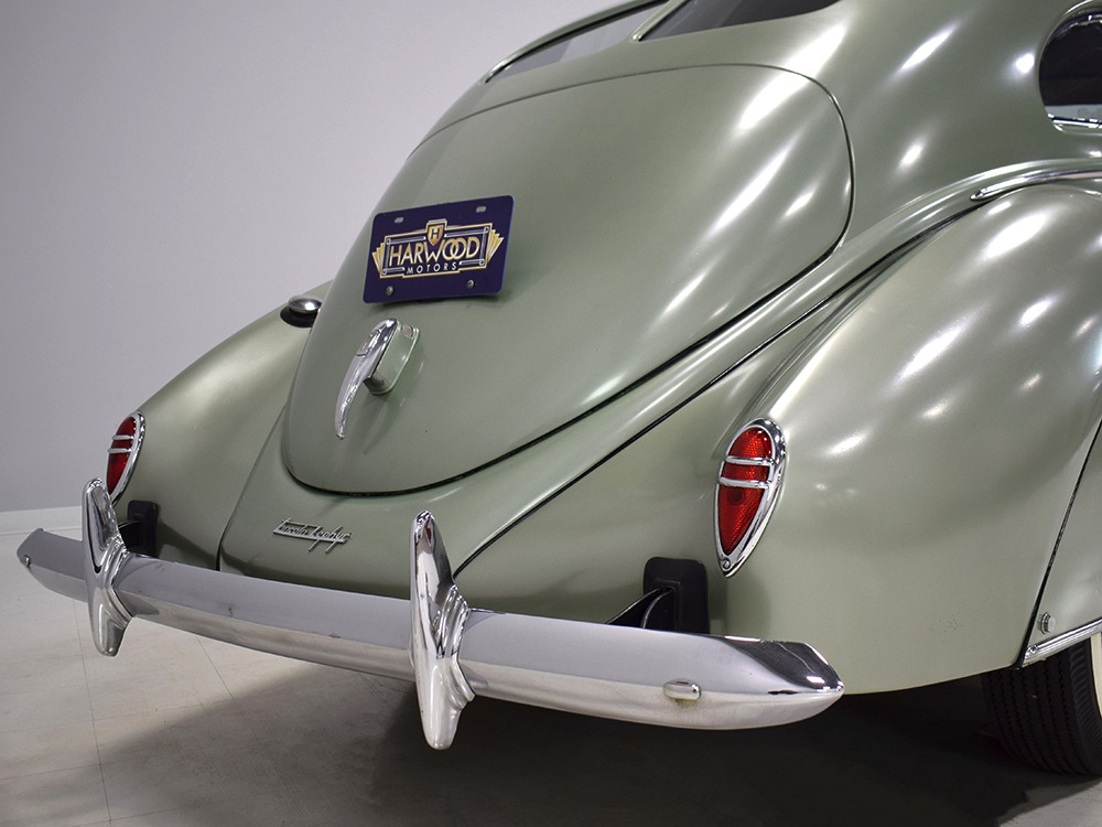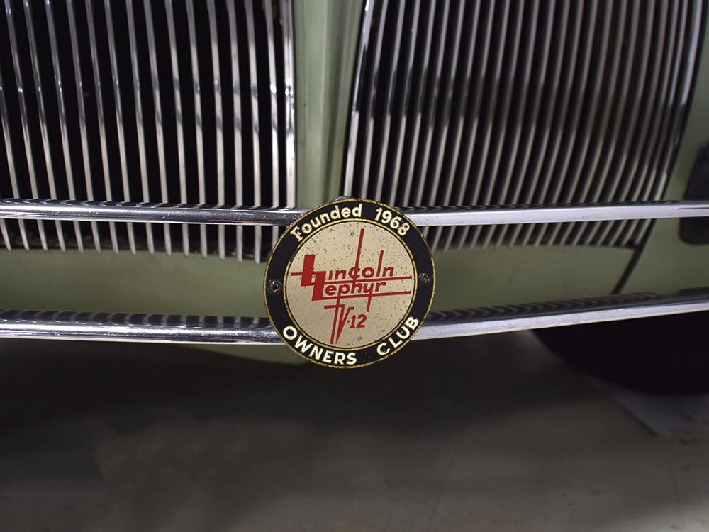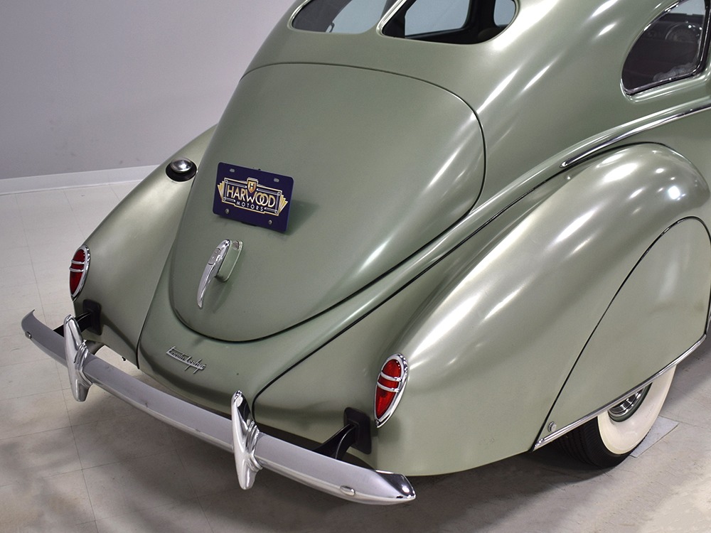 This particular 1939 Zephyr sedan is a wonderfully well preserved car that has been restored and freshened as needed, but never fully restored. The soft metallic green is its original color, called Arden Green, and we have to admit that it's exactly the right choice on the curvaceous Zephyr bodywork. It has been repainted once and touched up since then, but we can find no evidence of previous bodywork or damage and it fits together extremely well. There’s a soft shine to the paint that suggests it might be lacquer or even enamel and it’s very appropriate on the late ‘30s curves. Where Chrysler was perhaps too soon with their aerodynamic Airflow, this Zephyr looks right in every possible way. You may find yourself standing back to admire the car and finding new little details that delight the eye: the oval-shaped wind wings, the graceful curve of the grille’s leading edge, the simple hood ornament with built-in hood latch, and the way the fender skirts echo the body’s profile. The Zephyr’s design is often credited to Bob Gregorie, but it was actually penned by John Tjaarda, a stylist at Briggs Manufacturing who was fascinated with aircraft and envisioned this as a rear-engined car similar to the Tatra. At Edsel Ford’s request, Gregorie took the design and made it compatible with the V12 Lincoln chassis. The result is one of the most beautiful cars you’re likely to see. If this car doesn’t make your heart race, you might not be human.