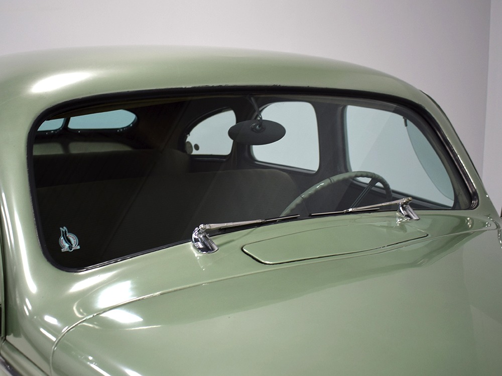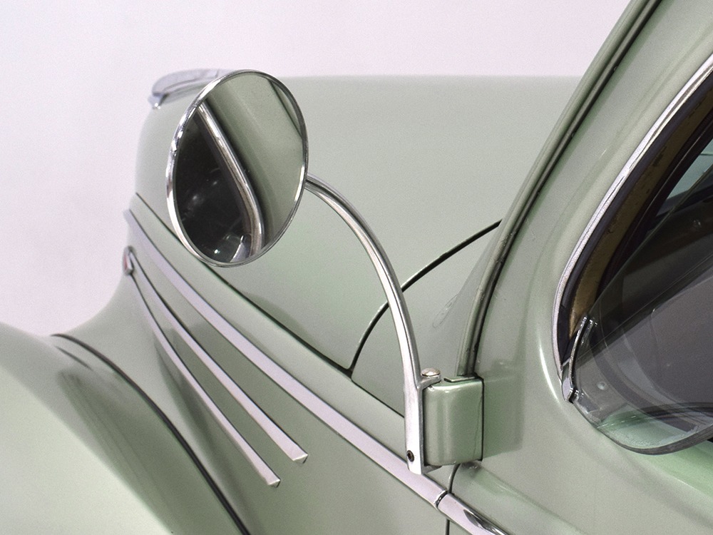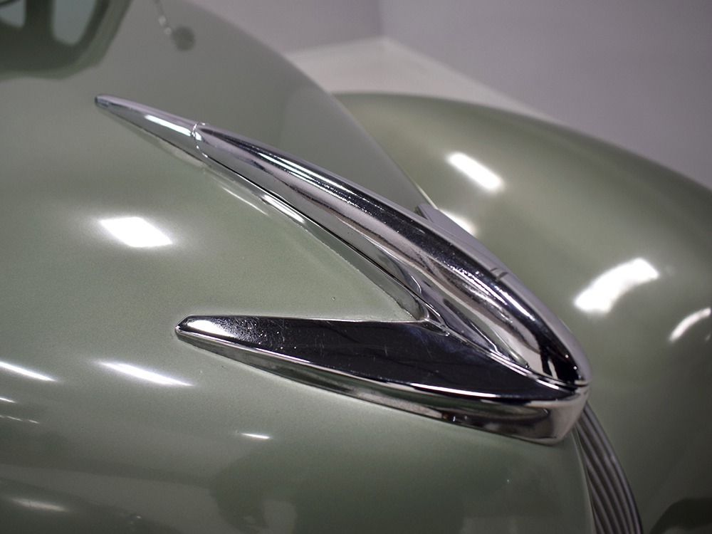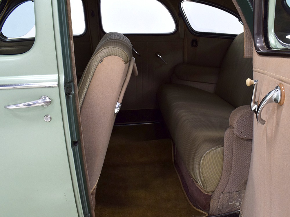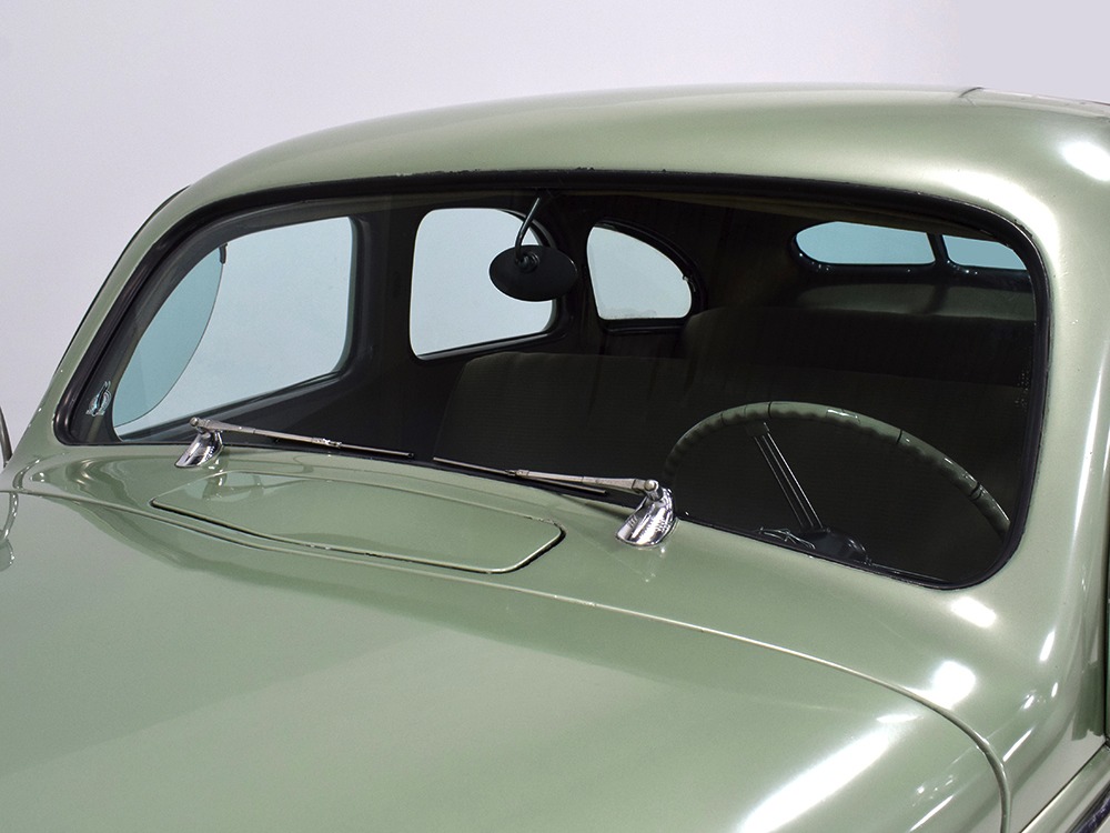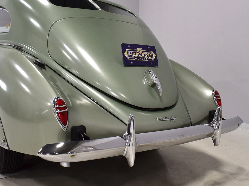 This particular 1939 Zephyr sedan is a wonderfully well preserved car that has been restored and freshened as needed, but never fully restored. The soft metallic green is its original color, called Arden Green, and we have to admit that it's exactly the right choice on the curvaceous Zephyr bodywork. It has been repainted once and touched up since then, but we can find no evidence of previous bodywork or damage and it fits together extremely well. There’s a soft shine to the paint that suggests it might be lacquer or even enamel and it’s very appropriate on the late ‘30s curves. Where Chrysler was perhaps too soon with their aerodynamic Airflow, this Zephyr looks right in every possible way. You may find yourself standing back to admire the car and finding new little details that delight the eye: the oval-shaped wind wings, the graceful curve of the grille’s leading edge, the simple hood ornament with built-in hood latch, and the way the fender skirts echo the body’s profile. The Zephyr’s design is often credited to Bob Gregorie, but it was actually penned by John Tjaarda, a stylist at Briggs Manufacturing who was fascinated with aircraft and envisioned this as a rear-engined car similar to the Tatra. At Edsel Ford’s request, Gregorie took the design and made it compatible with the V12 Lincoln chassis. The result is one of the most beautiful cars you’re likely to see. If this car doesn’t make your heart race, you might not be human.
