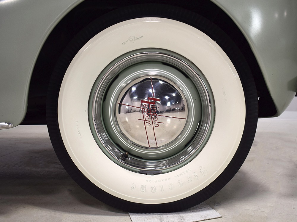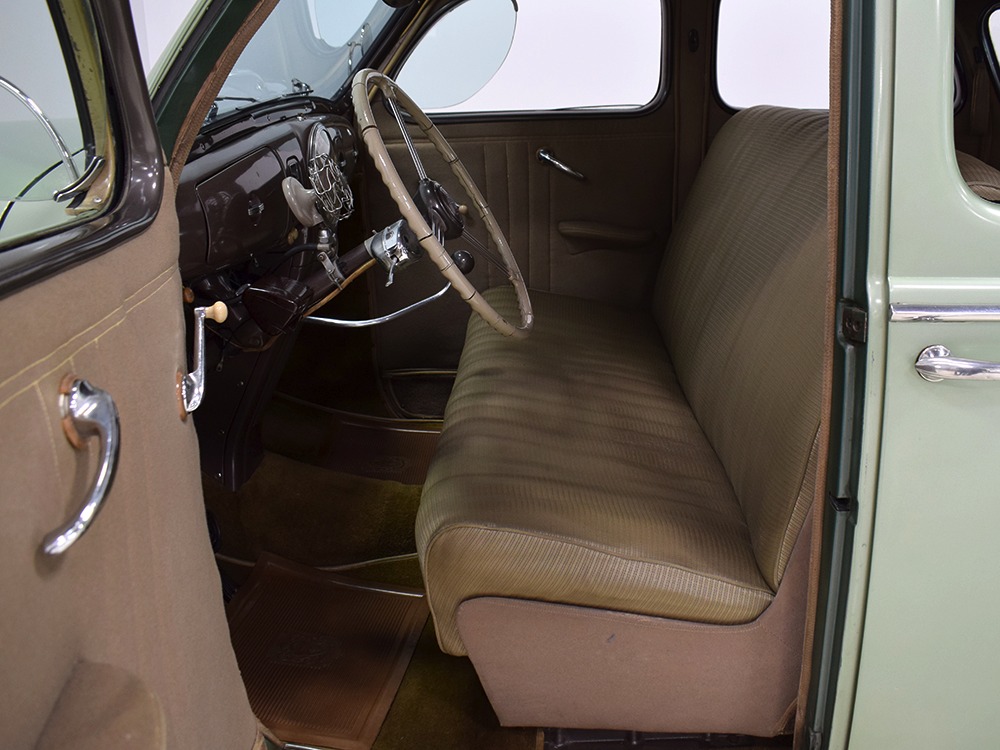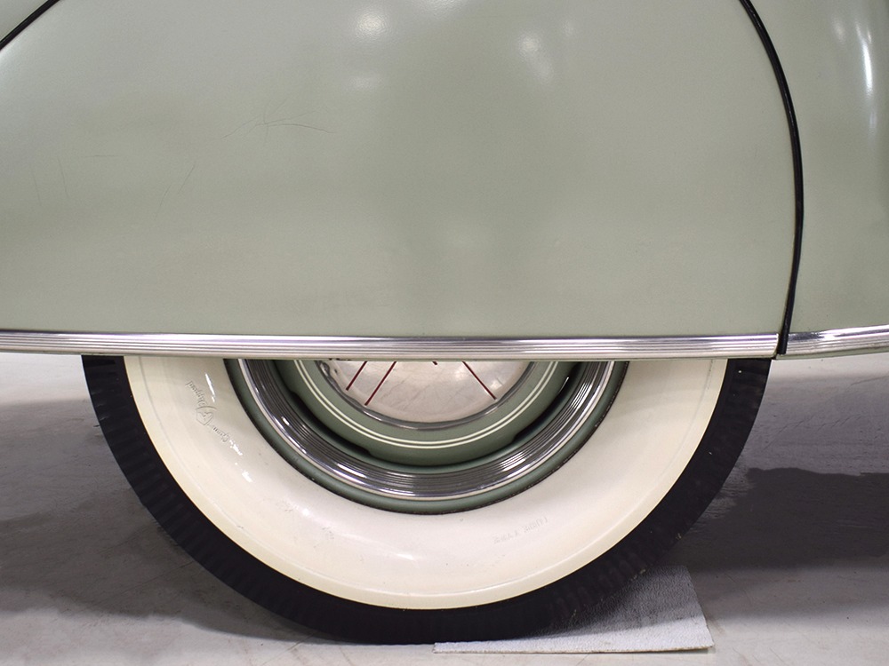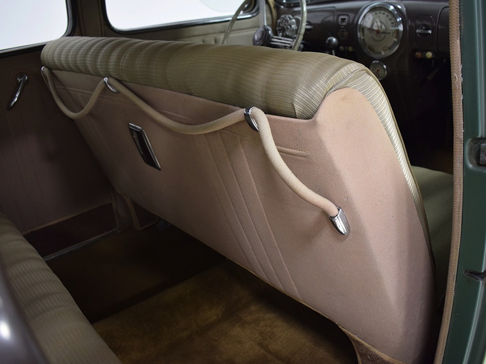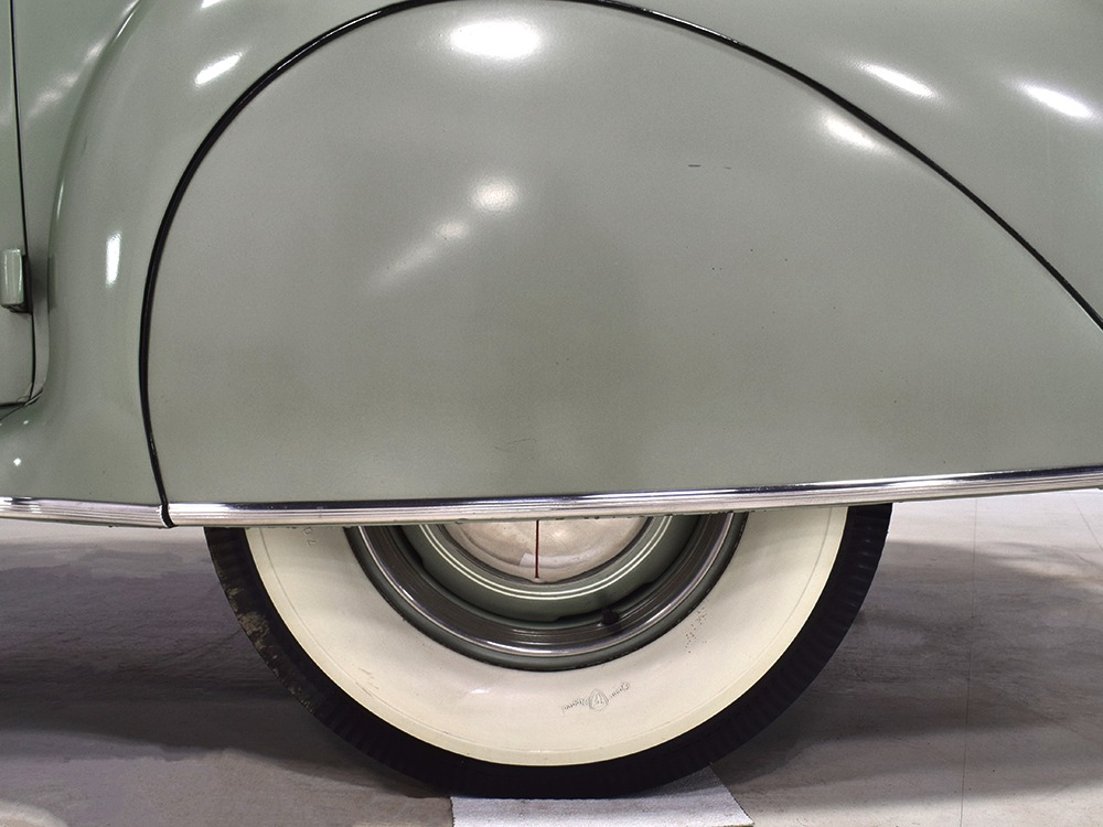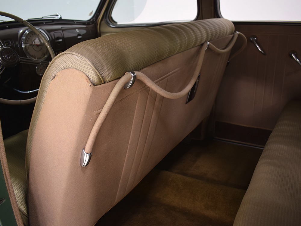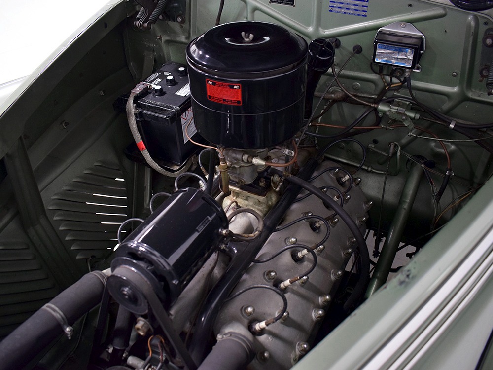 ’39 Lincoln Zephyr transmissions were prized by hot-rodders for their closer ratios and the shift quality on this Zephyr is excellent with no clashing or balkiness. Clutch take-up is smooth and thanks to a Columbia 2-speed rear end, this Zephyr is a fantastic high-speed tour car that’s quite happy at 65 MPH. As a car where the body has never been off the frame, it’s a bit grungy underneath but there are no signs that this car ever spent time in the harsh winter weather. The bare metal floors are in good order, the outer rocker panels show no signs of rot, and there’s plenty of evidence of proper maintenance over the years, including a newer transverse muffler in back. The recent electric fuel pump has a built-in regulator that primes the system then turns itself off until needed. Nice! The Columbia 2-speed is operational, although we prefer to simply leave it in high range, and the brakes were recently and extensively serviced with new hoses, wheel cylinders, and shoes. Lincoln was still using a beam axle up front, so it’s not sophisticated, but steering effort is light and the car goes down the road straight, even on the bias-ply tires. Those are 7.00-16 Firestone wide whites of indeterminate age and they’re mounted on the original wheels with Zephyr hubcaps and trim rings.