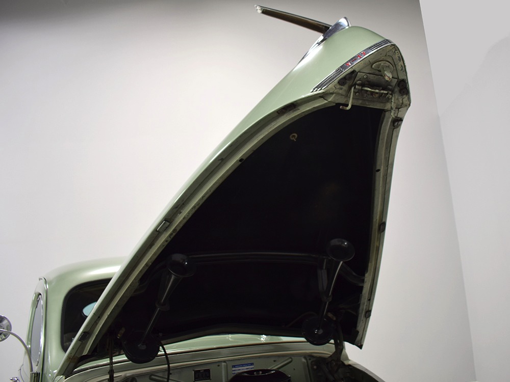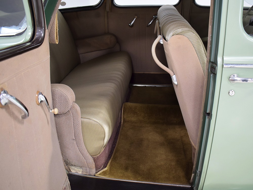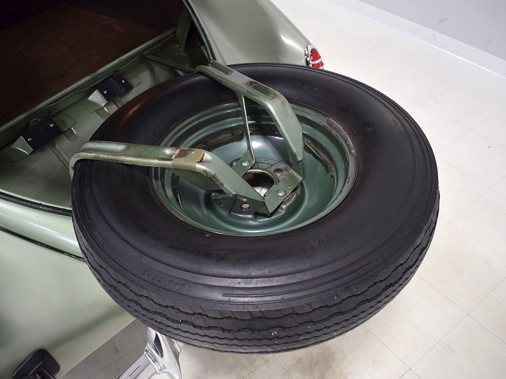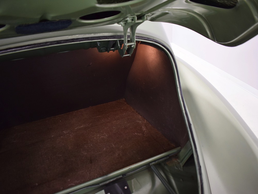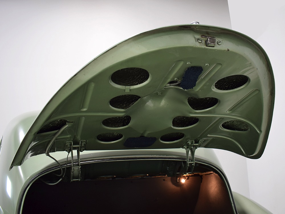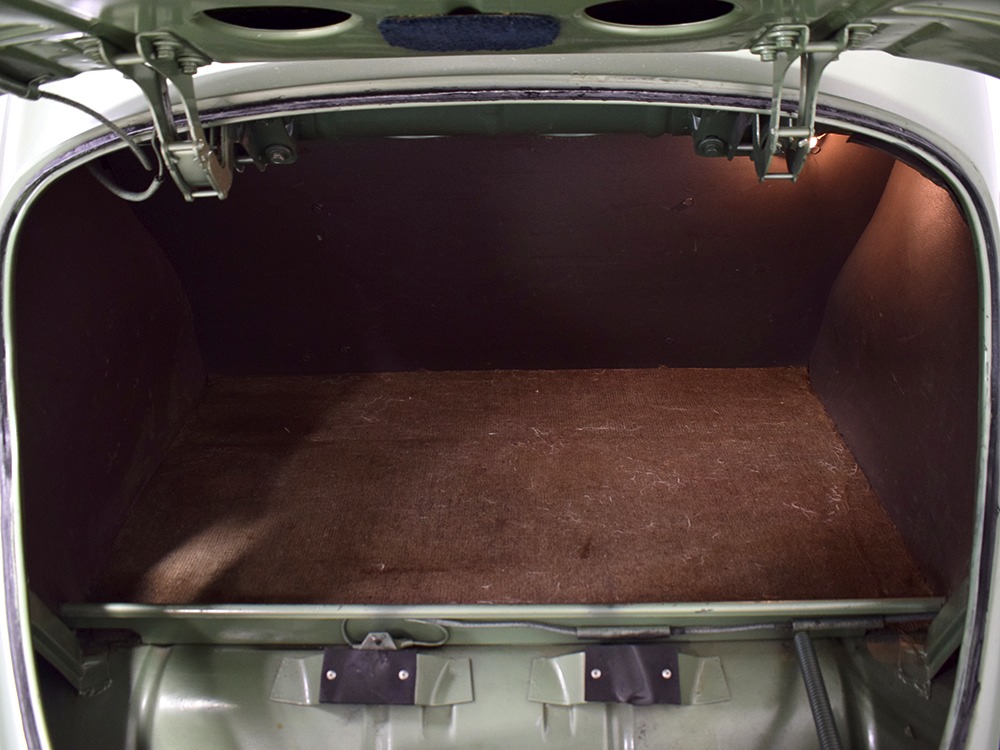 We strongly believe the interior is largely original and in incredible condition. The seats have not been reupholstered—we believe those are seat covers, perhaps installed when the car was new and fitted so tightly over the seats that they look like upholstery. However, you can clearly see the original pleats underneath. We have not investigated the condition of the upholstery under the covers, a treat we’ll leave to the next lucky owner, or perhaps you simply leave it alone because it looks rather handsome as-is. The original wool broadcloth door panels are in exemplary condition and it’s possible that even the carpets are factory-issue, it’s hard to say. They’re old but not deteriorated or soiled. The ’39 Zephyr features one of the most wonderful instrument panels of the period, a tower in the center of the dash topped by a massive speedometer that also houses the secondary gauges. This could be one of the earliest instances of a center console, and it’s cleverly designed to accommodate the shifter as it snakes out from behind. It looks odd but works just fine and feels instantly familiar. All the gauges are fully operational and the clock ticks away reliably. Only the steering wheel shows signs of age, with the usual cracking although none of it has fallen off and I’m not sure I’d be in a hurry to restore it. The car includes accessories such as an AM radio (not functional, sadly), a gas-fired South Wind heater under the dash (the fan is operational, but we have not fired it), and a cooling fan mounted on the steering column. At some point, someone has added turn signals to the car, and that’s a worthy safety upgrade. The backseat area is quite spacious and shows few signs of use and all that space would make this a first-rate touring car. And despite the steeply raked rear deck, there’s a surprisingly spacious trunk inside, complete with a working trunk light and spare tire assembly that effortlessly tilts out of the way on spring-loaded hinges.