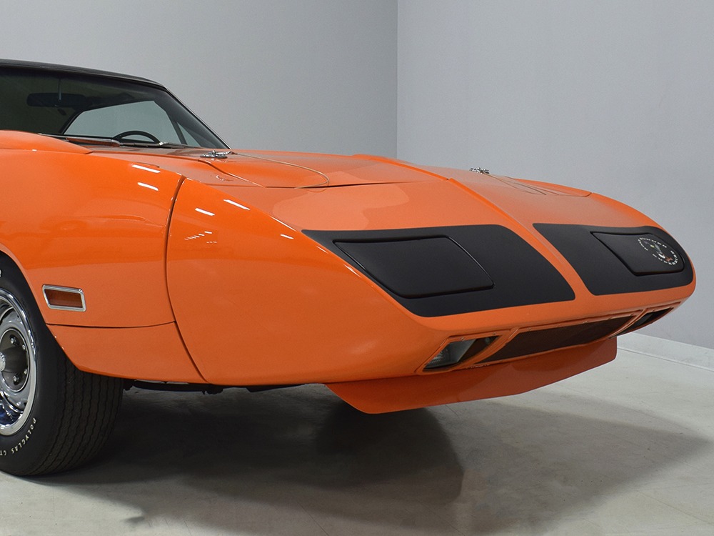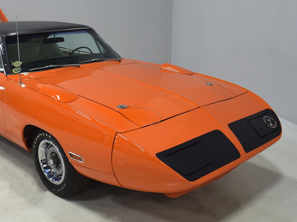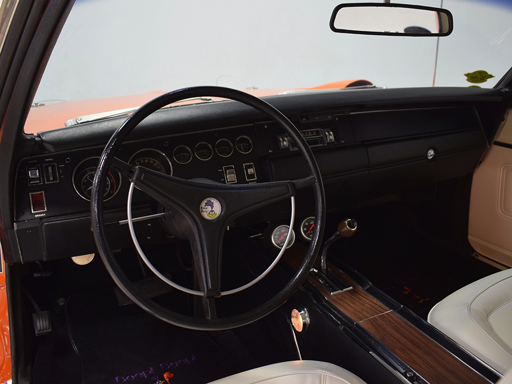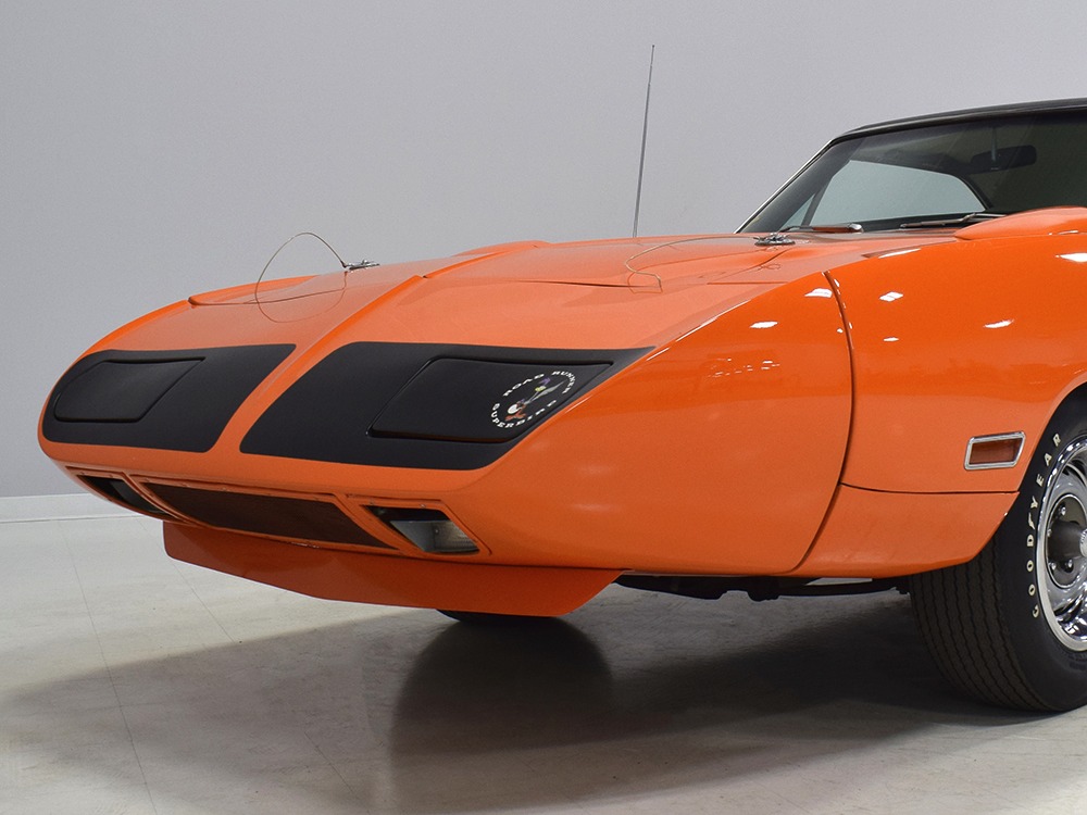 That may seem like a lot of introduction for such a familiar face, but it’s critically important to put the Superbird into context. This isn’t just some weird Mopar, it’s THE Mopar, the car that proved once and for all that Chrysler was not playing around when it came to winning races. In person, the car is simply stunning, from the pointed nose to the towering wing and when it’s covered in Vitamin-C Orange paint, it is impossible to ignore. This particular Superbird hails from Texas, where it spent the first years of its life (we have a detailed ownership history on the car tracking its movements around the country). As a result, the sheetmetal is unmarked and in fantastic condition, particularly following a high-quality repaint just recently. There’s just no way these cars fit together this well when they were new, particularly given their hand-built nature, so someone obviously invested a great deal of time and money to get it to look this good. The nose lines up neatly with the fenders, the unusual extended hood snugs down flush when you insert the hood pins, and the doors close with authority—kerCHUNK! And yes, the headlights work properly, although they can be a little lazy at times. We can find no evidence of rust or previous accident repairs, and the car appears to be wearing all its original sheetmetal and floors, which is a rather are thing all by itself. Don't worry, all the unique Superbird details are intact and properly represented. This car is right.