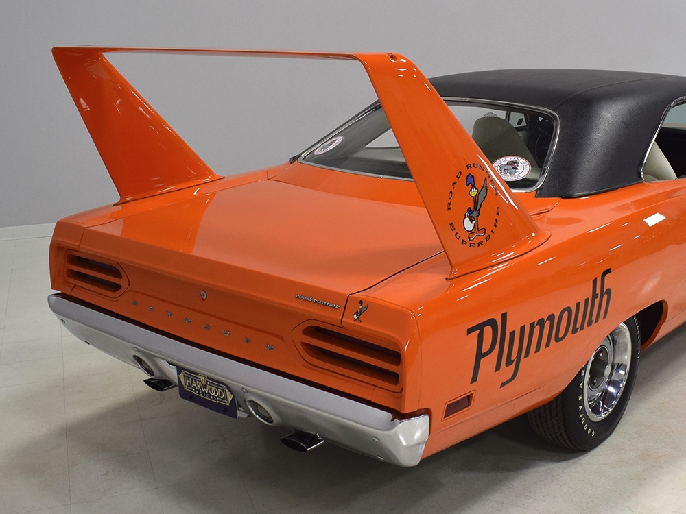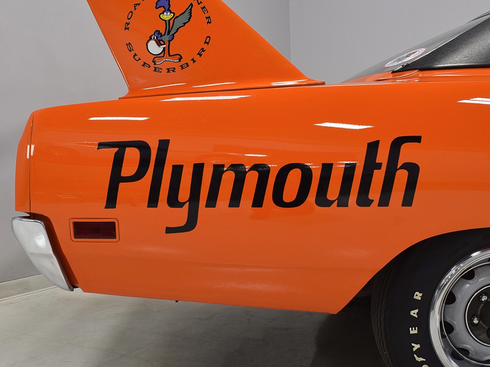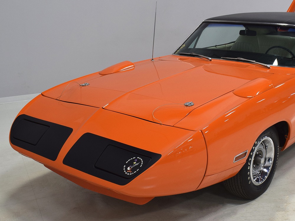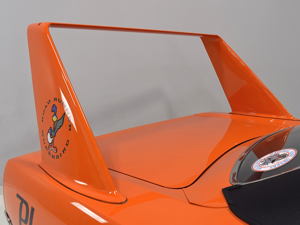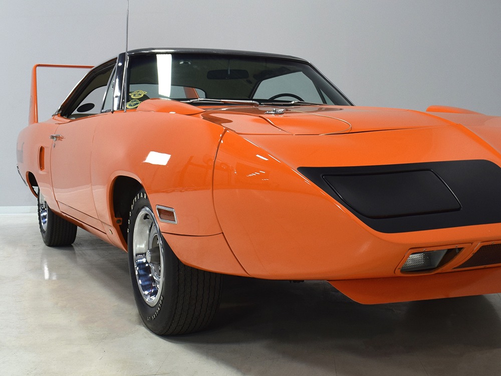That may seem like a lot of introduction for such a familiar face, but it’s critically important to put the Superbird into context. This isn’t just some weird Mopar, it’s THE Mopar, the car that proved once and for all that Chrysler was not playing around when it came to winning races. In person, the car is simply stunning, from the pointed nose to the towering wing and when it’s covered in Vitamin-C Orange paint, it is impossible to ignore. This particular Superbird hails from Texas, where it spent the first years of its life (we have a detailed ownership history on the car tracking its movements around the country). As a result, the sheetmetal is unmarked and in fantastic condition, particularly following a high-quality repaint just recently. There’s just no way these cars fit together this well when they were new, particularly given their hand-built nature, so someone obviously invested a great deal of time and money to get it to look this good. The nose lines up neatly with the fenders, the unusual extended hood snugs down flush when you insert the hood pins, and the doors close with authority—kerCHUNK! And yes, the headlights work properly, although they can be a little lazy at times. We can find no evidence of rust or previous accident repairs, and the car appears to be wearing all its original sheetmetal and floors, which is a rather are thing all by itself. Don't worry, all the unique Superbird details are intact and properly represented. This car is right.