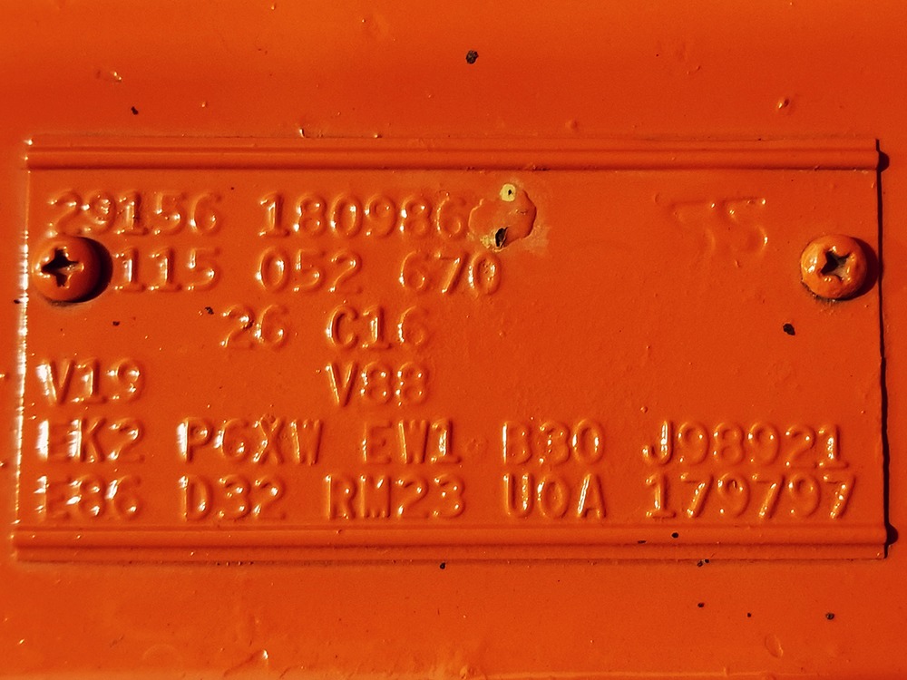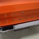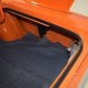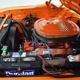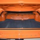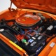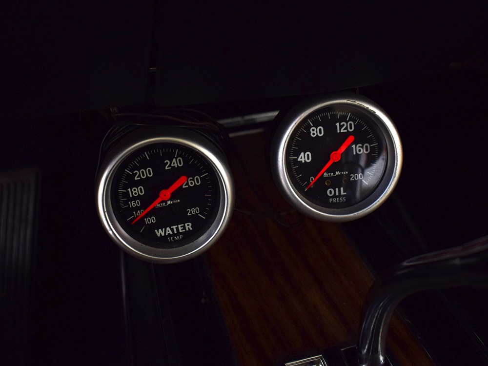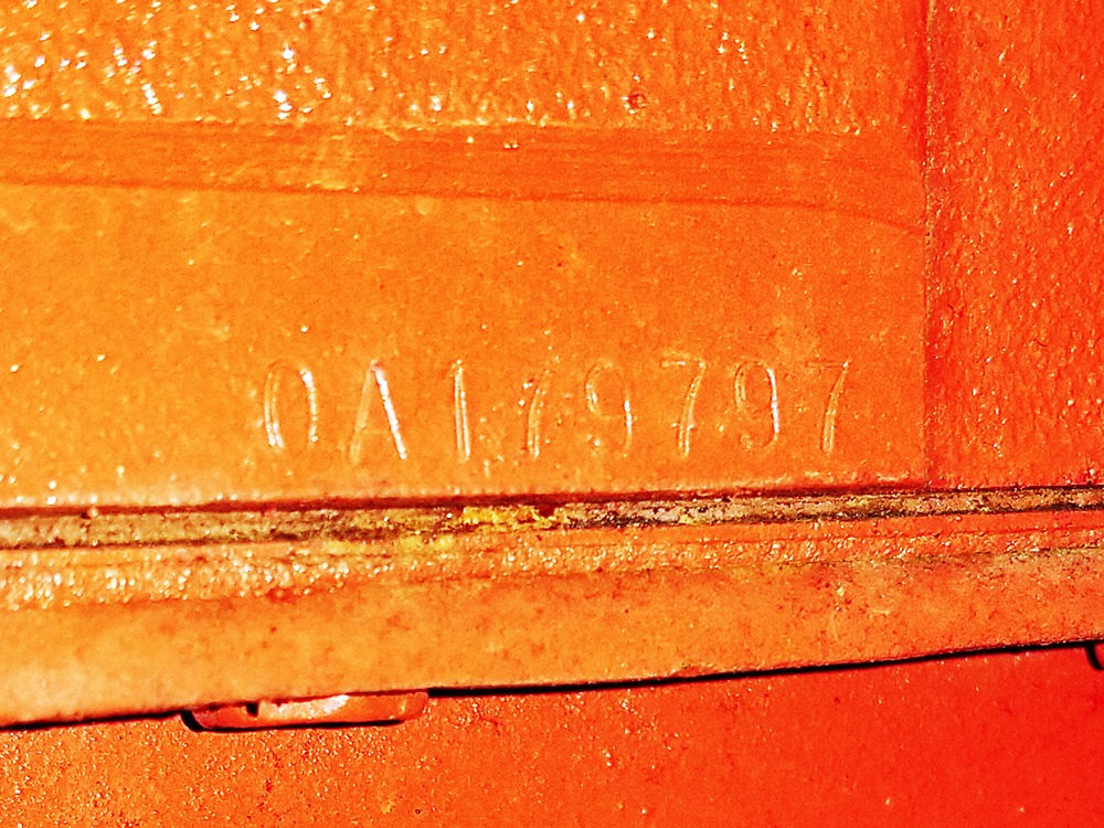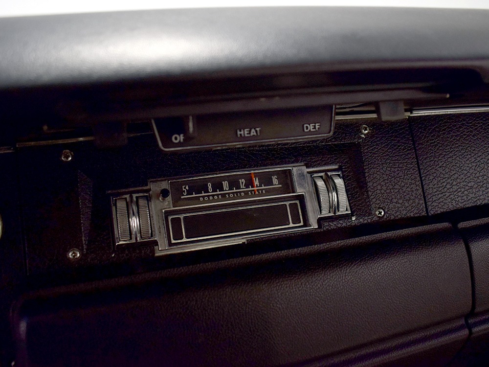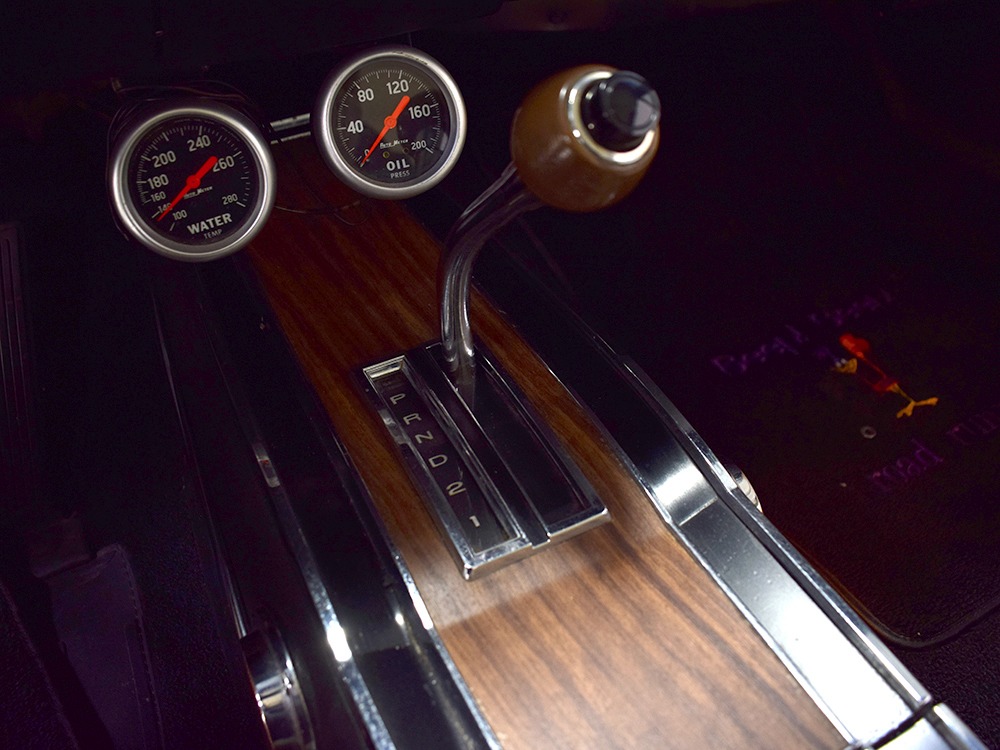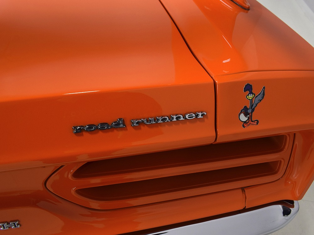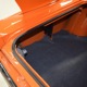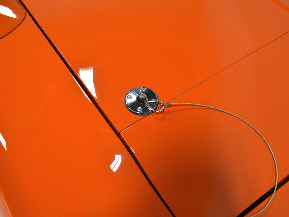 Finding a code P6XW white interior inside a Superbird is unusual but not unheard-of, and it is indeed how this car was originally ordered. The fender tag confirms this, but since it’s a Lynch Road car, the codes are kind of wonky, although it does also confirm bucket seats, a C16 console, the V19 black vinyl top that was unique to the Superbirds, and the EK2 Vitamin-C paint code, of which only 91 were built. We find the bright white upholstery to be very welcoming and it’s brand new, so it just sparkles inside the bright orange ‘Bird. Almost everything you can touch is new, including seat covers, door panels, carpets, and even the dash pad and headliner. The car is equipped with Rallye gauges—and they all work—as well as a set of more accurate Auto Meter dials down on the console for temperature and oil pressure. Only the tachometer is inoperable, but we have not investigated that situation. There’s also an unusual AM/8-track radio, surprising for a Superbird, most of which were lightly optioned. Embroidered floor mats will help keep it looking its best and the trunk is outfitted with a reproduction mat. You’ll note that the heavy-duty support stanchions for the wing are still in place—that wing is reportedly strong enough to support a grown man sitting on it, although I don’t think I’d care to test that claim.