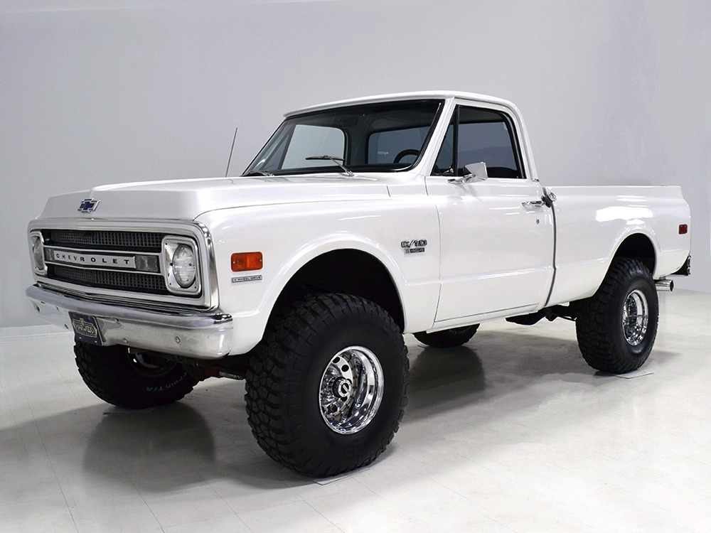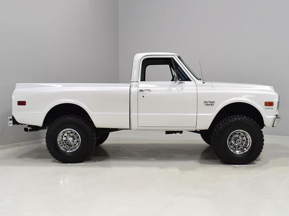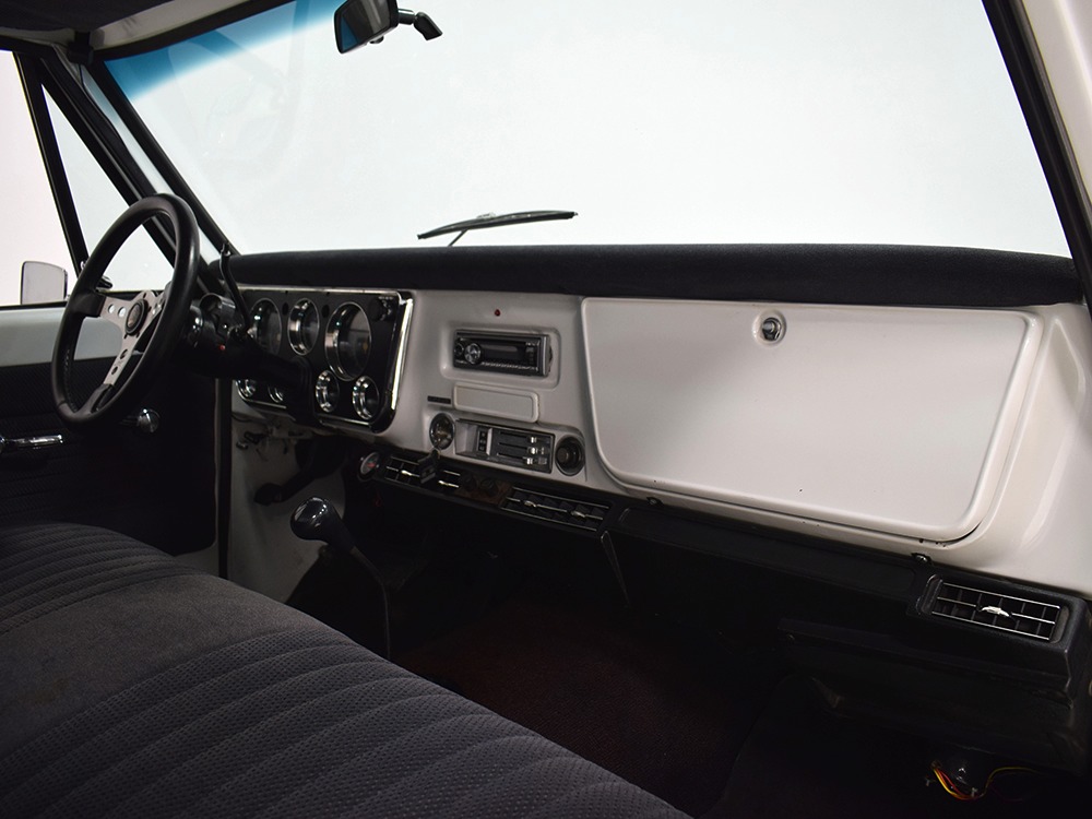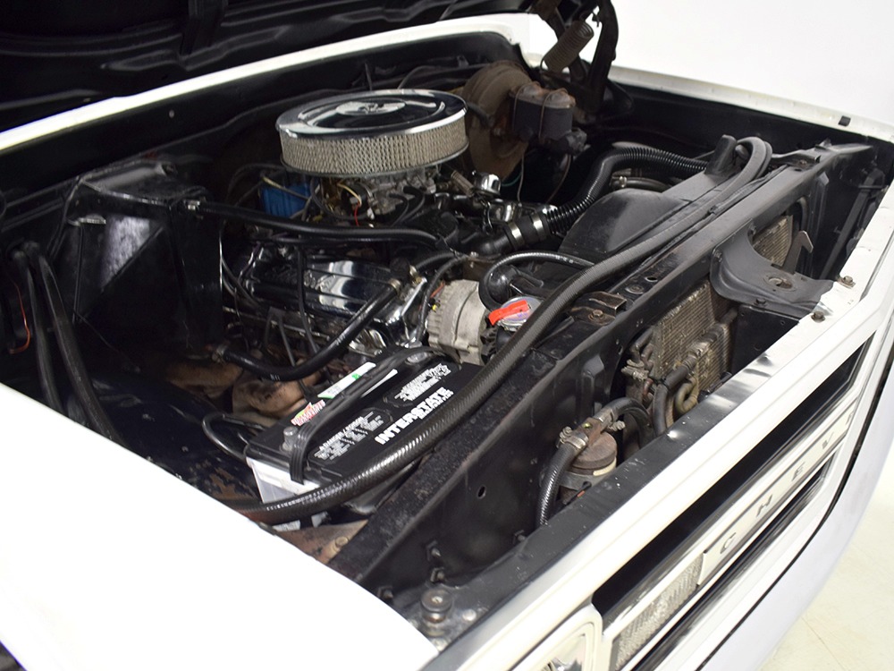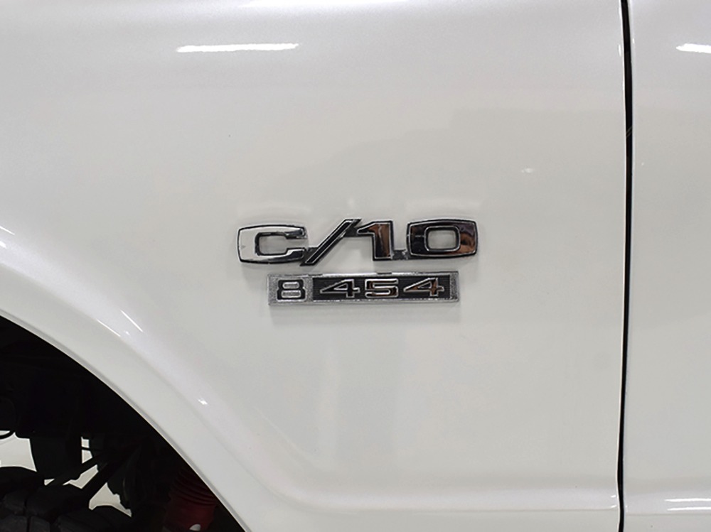 Clean big block 4x4 regular cab/short bed C10 pickup. Strong-running 454 cubic inch V8, automatic transmission, functional 4-wheel-drive system, 3-inch lift with Rancho adjustable shocks. Attractive recent white pearl paint, super clean interior with cloth bench seat, cold A/C, upgraded JVC AM/FM/CD stereo. Runs and drives great, very powerful, sounds awesome and even rides pretty well. Awesome heavy cruiser that’s ready to work and play.