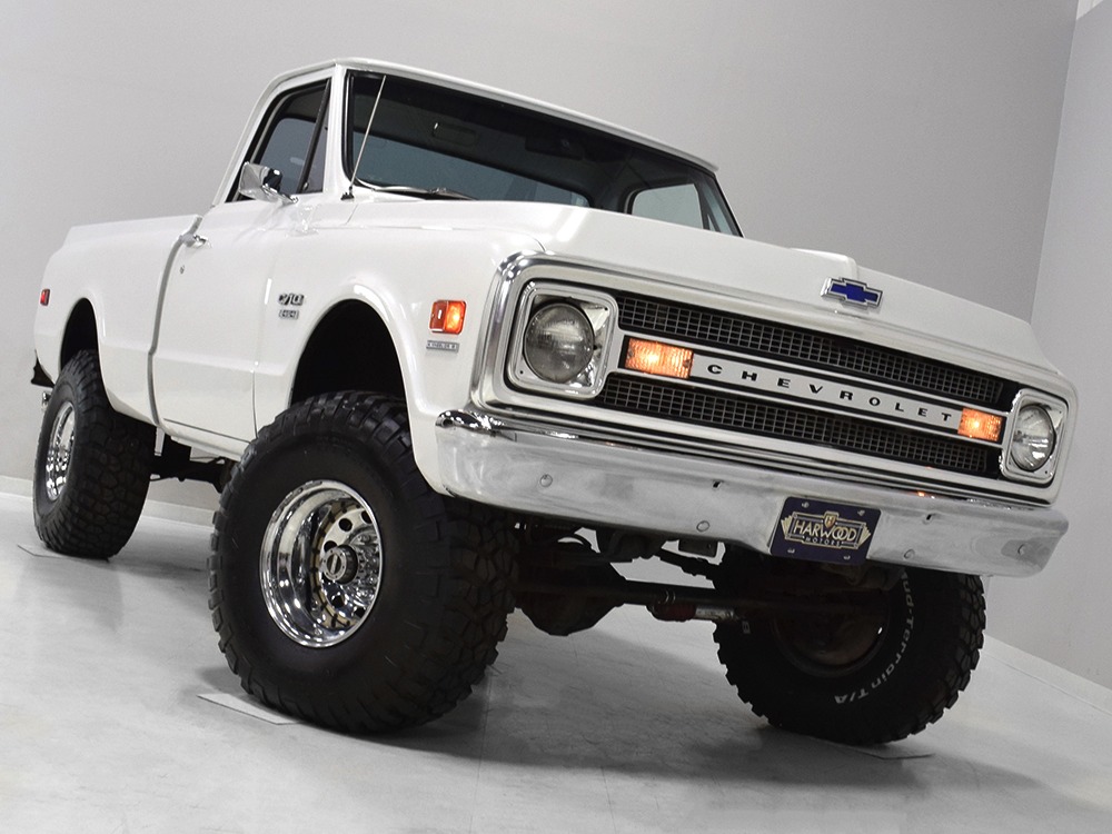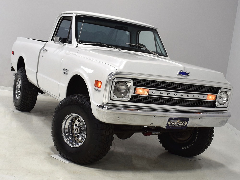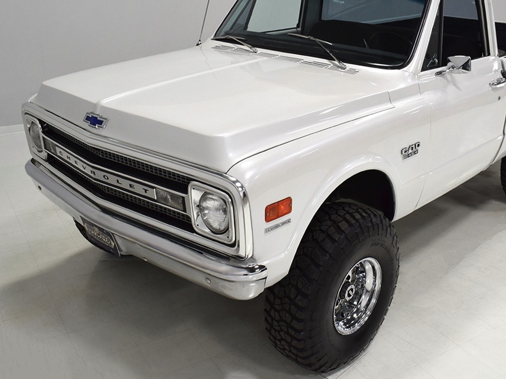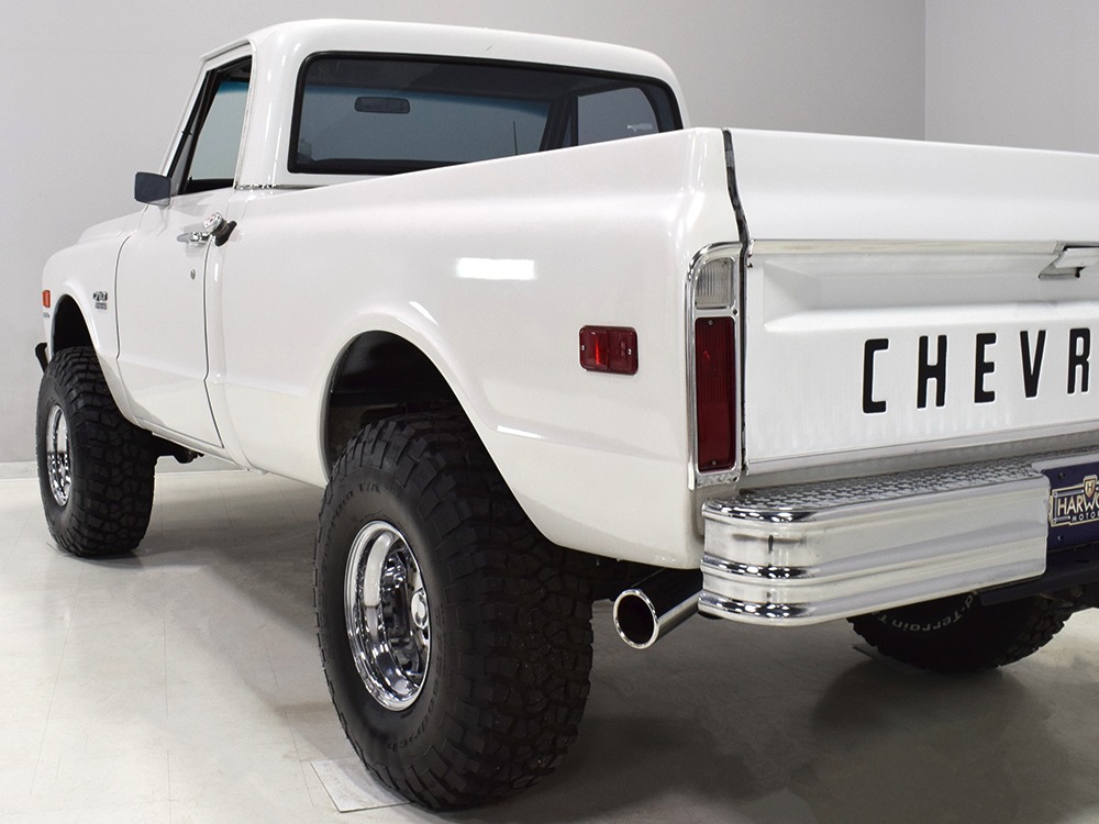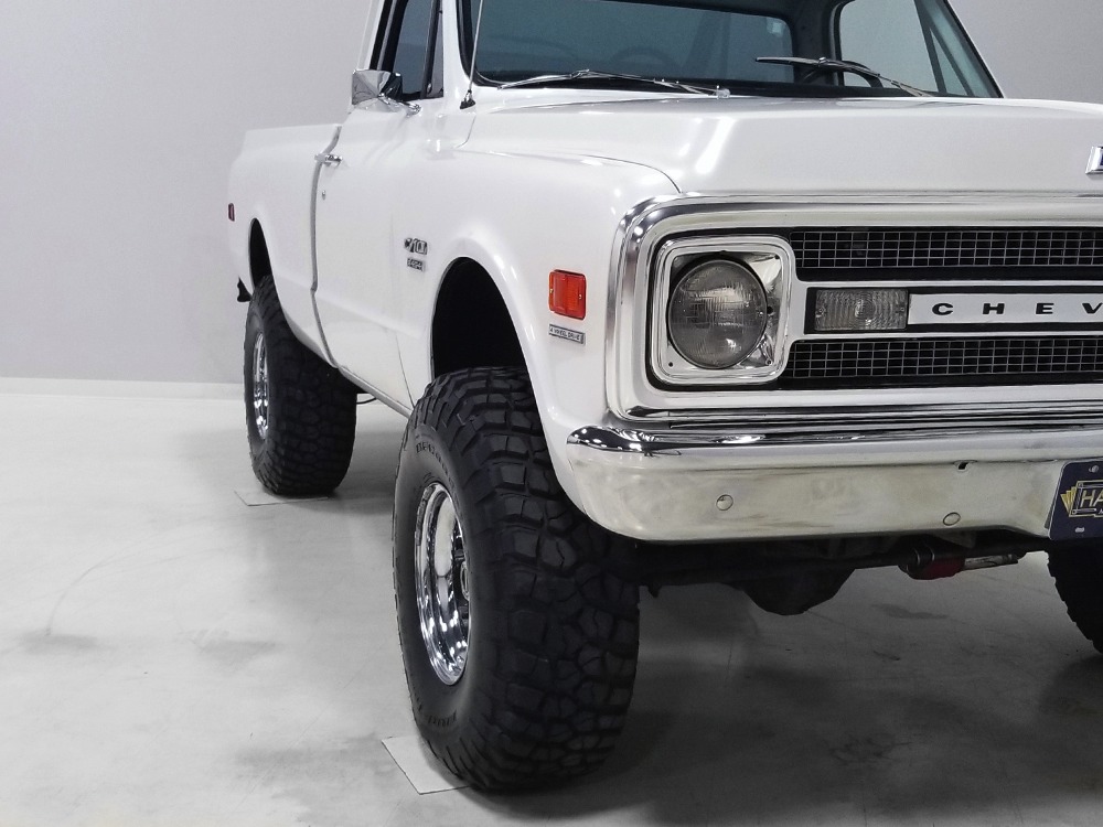 Clean big block 4x4 regular cab/short bed C10 pickup. Strong-running 454 cubic inch V8, automatic transmission, functional 4-wheel-drive system, 3-inch lift with Rancho adjustable shocks. Attractive recent white pearl paint, super clean interior with cloth bench seat, cold A/C, upgraded JVC AM/FM/CD stereo. Runs and drives great, very powerful, sounds awesome and even rides pretty well. Awesome heavy cruiser that’s ready to work and play.
