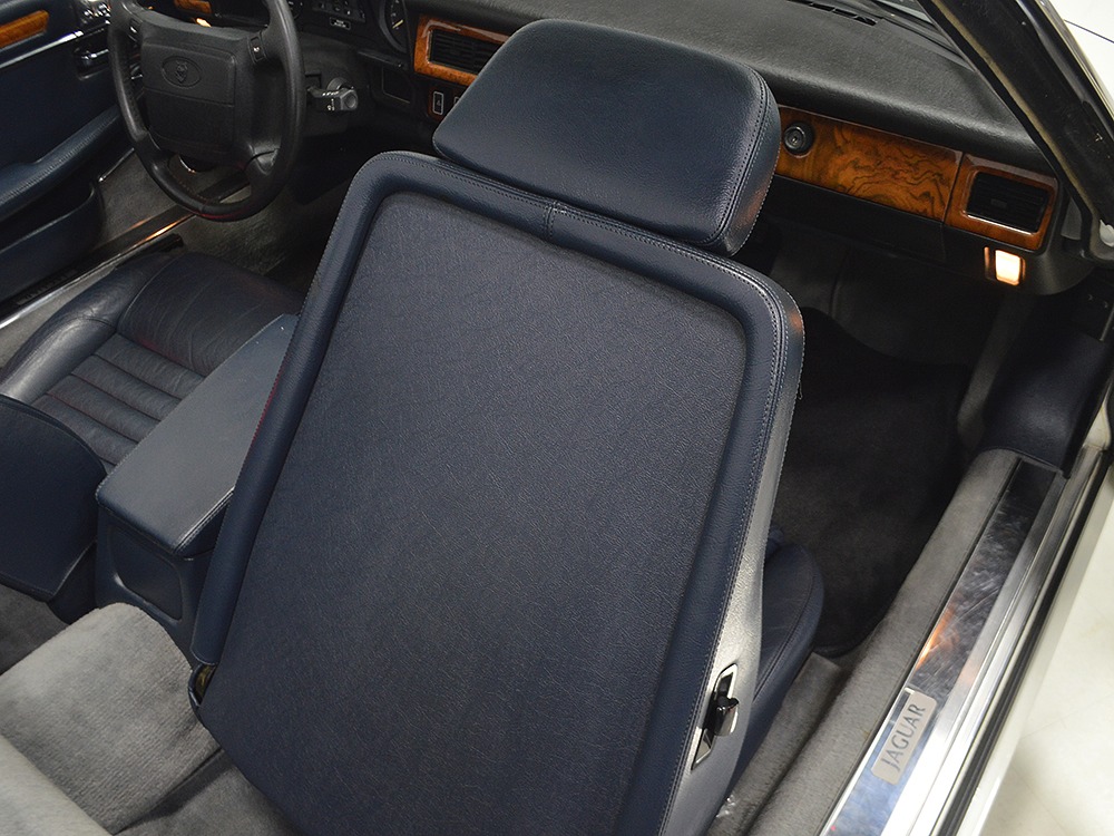 But the real reason this Jaguar is special lives under that forward-tilting hood: 5.3 liters of overhead cam V12. It’s a direct descendant of the engine used in the last of the E-Types, and was rated at a rather robust 262 horsepower and 290 pounds of torque (more horsepower than a 1990 Corvette—not too shabby!). With just over 31,000 miles, you can rest assured that it is in excellent mechanical order and you’ll be pleased to note that it has been maintained by noted Jaguar expert Earl Gibbs, who is a personal friend of the family. Yes, the V12 looks fiendishly complex under the hood, but the truth is, with a shop manual and some patience, much of the service work can be done by a handy owner and there’s truly nothing here that should cause you consternation—parts are readily available and its maintenance requirements are not excessive like, say, a Ferrari. Turn the key and the unique-sounding starter fires the fuel-injected V12 with ease and it settles into an idle that you can hear but not feel. The purr from the twin tailpipes is unlike most cars you hear today and at 5000 RPM, we promise the hairs on the back of your neck will stand up. In normal driving, it’s effortless, silent, and completely competent in everything it does. It runs cool, there’s plenty of oil pressure, and it will completely re-write the things you think you know about Jaguars and reliability. Take care of it properly and it will run beautifully for decades to come.