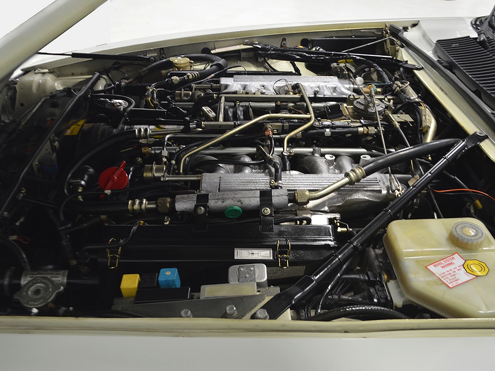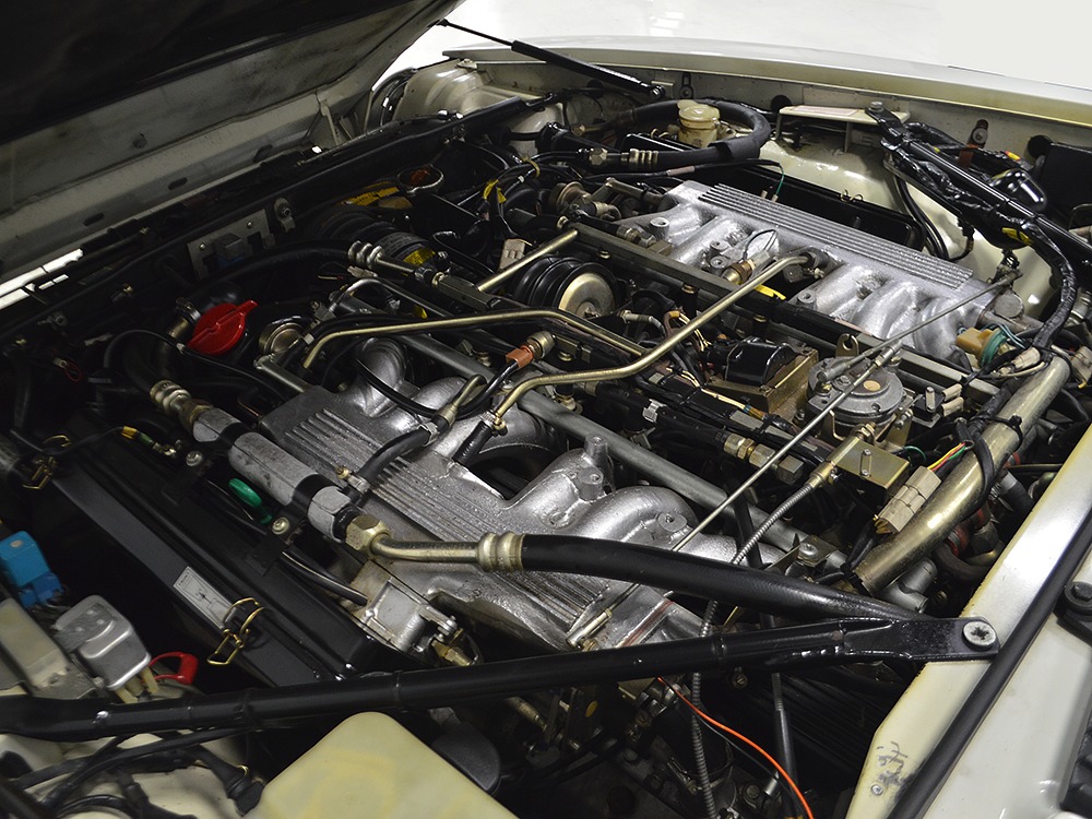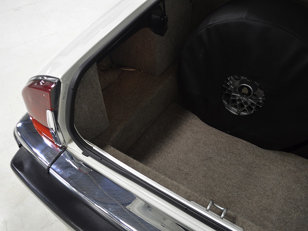 Better yet, this XJ-S has been owned since new by just one family and shows only 31,303 original miles. It has always been lovingly maintained and never used in inclement weather, resulting in one of the finest examples we’ve seen in a very long time. By 1990, the V12’s days were numbered, as Jaguar would eventually stuff the familiar old 4.0-liter inline-6 into the XJ-S, and it’s at that point that most people stopped caring. When you see this long, low cat, even if you don’t know what it is, there’s an understanding that it’s special and expensive. The long hood, flared wheel arches, and rounded tail all suggest speed and performance, but it’s elegant at the same time, not brash. The white paint is entirely original and shines the way only a hand-rubbed paint job can, and it shows almost no signs of use and age. Yes, if you look under the chin and along the rockers you might find a few small rock chips, but the overall impression is certainly not that of a 30-year-old used car. Lustrous chrome liberally applied on the bumpers, headlights, mirrors, and windshield all give the Jag a uniquely British look that’s traditional but sleek, and a simple pinstripe along the flanks accentuates the Jaguar’s length (this is not a small car).