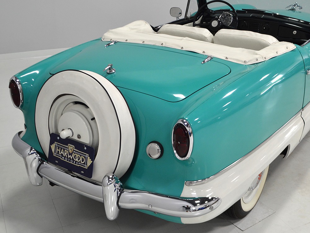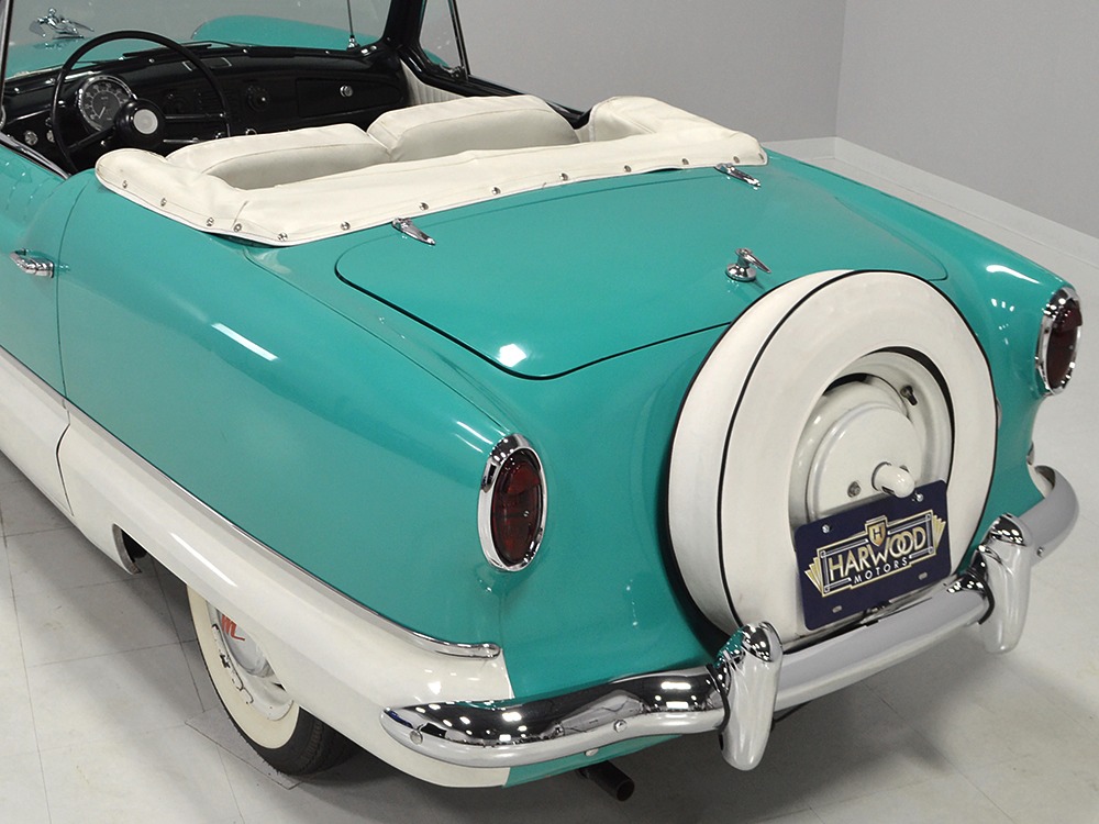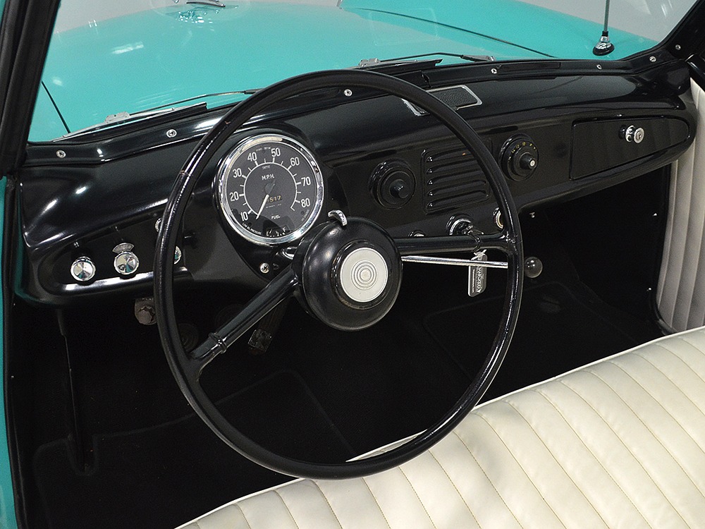 Handling is tidy and surprisingly nimble for a car with such small tires, but then again, that’s the benefit of less weight. The 3-speed manual transmission shifts cleanly and it’s geared to buzz along at 50 MPH or so without working too hard. The suspension puts a big car ride into this small package, so it’s comfortable just about anywhere and the brakes, while manual drums, don’t have much weight to contend with so they’re effective. Period road tests lauded the Metropolitan’s combination of durability and surprising comfort, and even today parts are readily available so they remain quite economical to own and maintain. Even the legendary Floyd Clymer said, "I can not praise the Metropolitan too highly. It is a fascinating little car to drive, its performance is far better than one would expect, and the ride is likewise more than expected." It’s finished with 5.20-13 Firestone tires on painted steel wheels, so it has a ‘50s look that’s just about right.