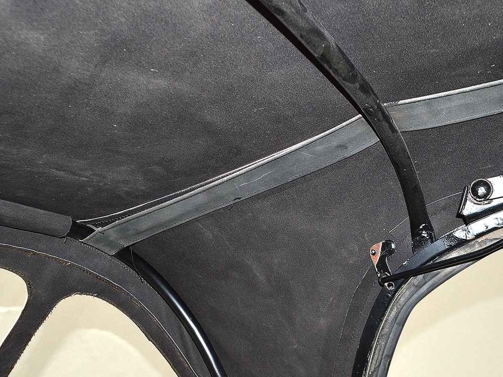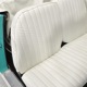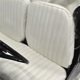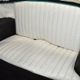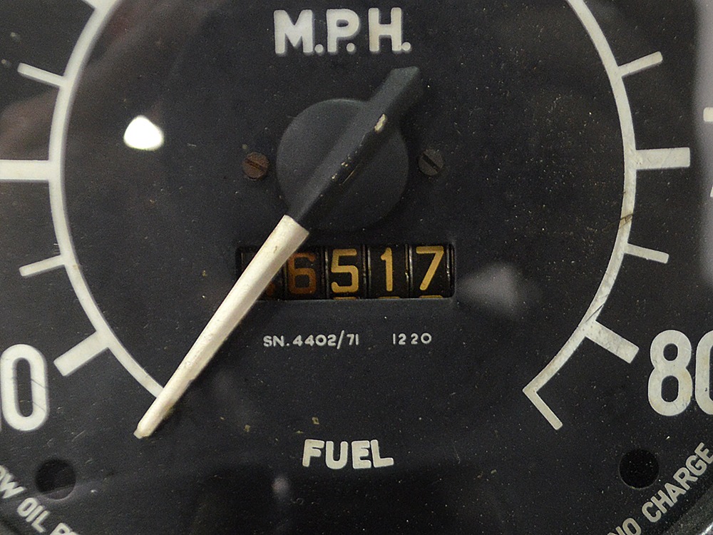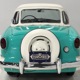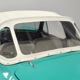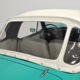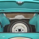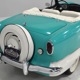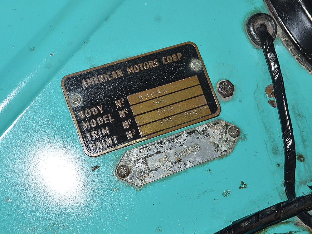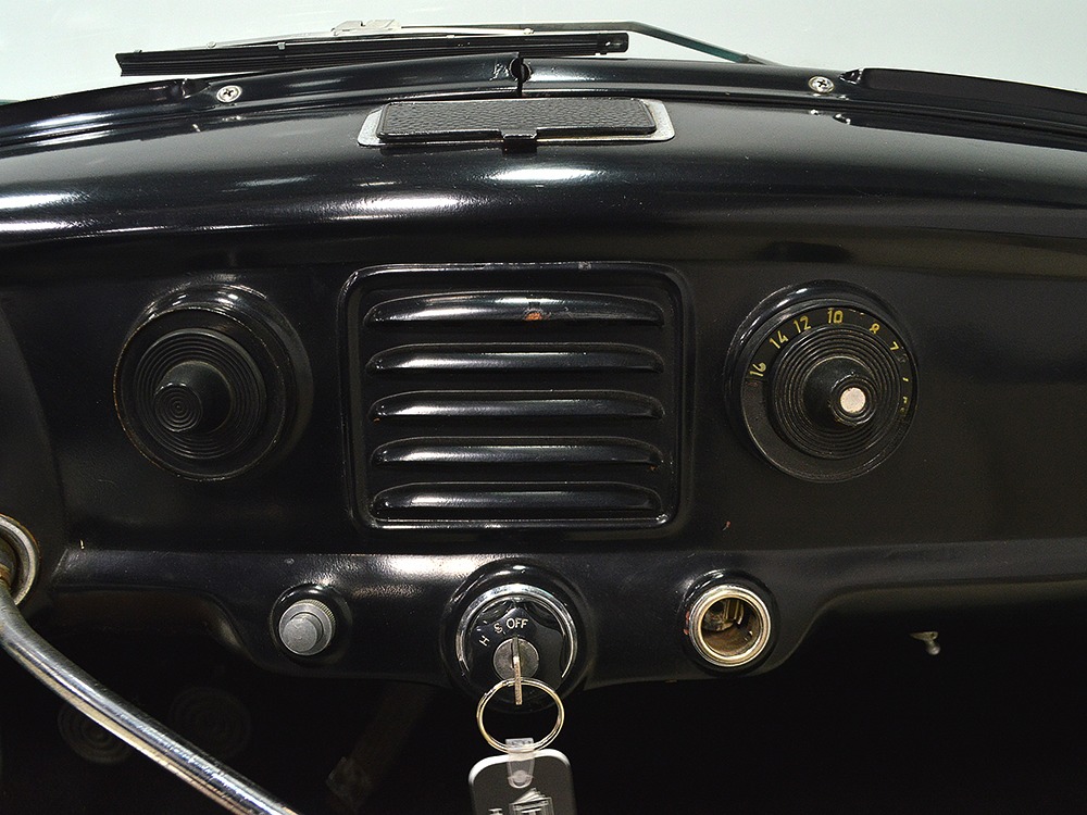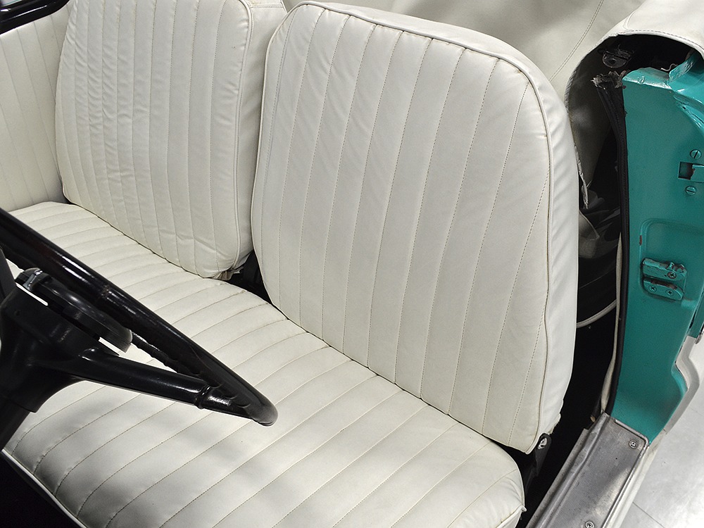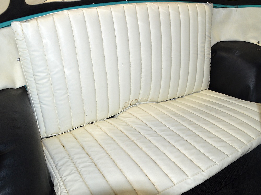 The interior isn’t quite correct with its white vinyl pleats, but it’s durable and, more importantly, weatherproof. The pattern looks very right for the period and the workmanship is good enough to work with the rest of the car. The material cleans up easily and is virtually impervious to moisture and dirt, so it should look great for years to come. Black carpets match the black dashboard to keep it from being white overload and despite its size, there’s a modest back seat that’s ideal for kids. Technically, the Met was designed in England, so the single gauge pod with speedometer and fuel gauge shouldn’t be too surprising and the steering wheel with its integral turn signal lever should feel familiar to MG and Triumph owners as well. The 3-speed manual shifter looks a little odd but it works just fine and the neat headlight switch integrated with the ignition key keeps the dash looking tidy. An accessory AM radio still lives in the dash, although it is sadly inoperable. The convertible top fits reasonably well and has no serious marks or tears, and while the trunk opening is way up high, there’s plenty of room in there, even with a spare wheel and tire assembly.
