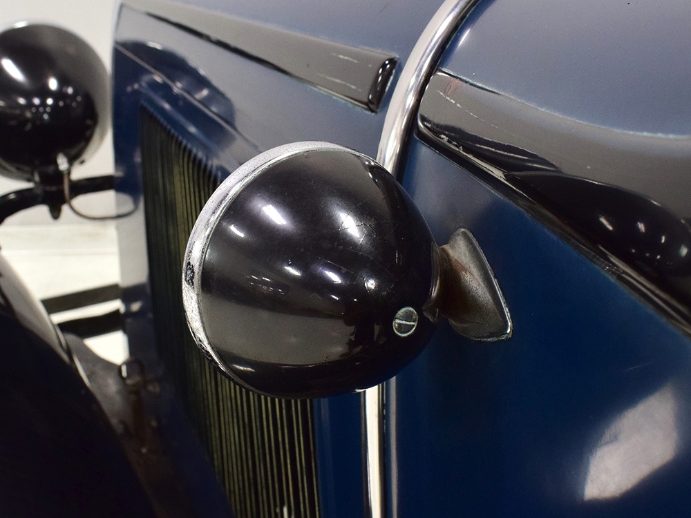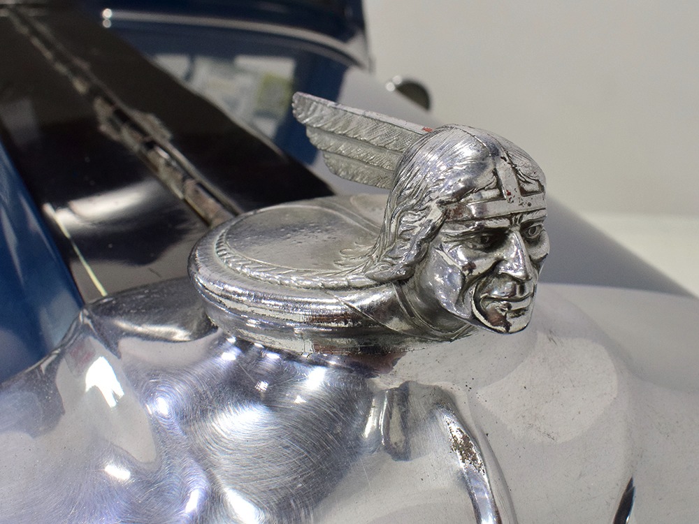 All of that is completely true, but the really amazing thing is just how nice this Pontiac really is. It’s almost entirely original—an important part of the HPOF award is the “preservation” thing. That’s original Seminole Blue paint on the body and it has a wonderful soft shine that only comes from age and lots of polishing. A few areas of the black fenders and on the roof have started to crack and chip, but as an original car, it would be a mistake to chase perfection here. We’ve found that original cars, warts and all, seem to attract much more attention than shiny new cars—yes, it’s a change in your mindset, but it’s a worthy one because you’ll find cars like this have a great many admirers. There’s just nothing like the precision sound the doors make when they close, the warm tone of the polished chrome radiator shell and bumpers, and the feeling that you could reach back through time just by sitting in the passenger’s seat. This car has been used as a benchmark for judging standards in the Pontiac-Oakland Club International (POCI) and it retains all its original fittings, from the Chief Pontiac hood ornament to the just-barely-visible “PONTIAC” lettering on the running boards to the single taillight out back. Even the spare tire cover appears to be an accessory installed by the original dealer at Mr. Carlson’s request and we’re betting that’s the original spare tire underneath—it’s ancient!
