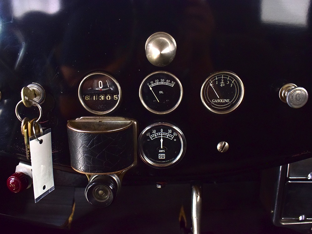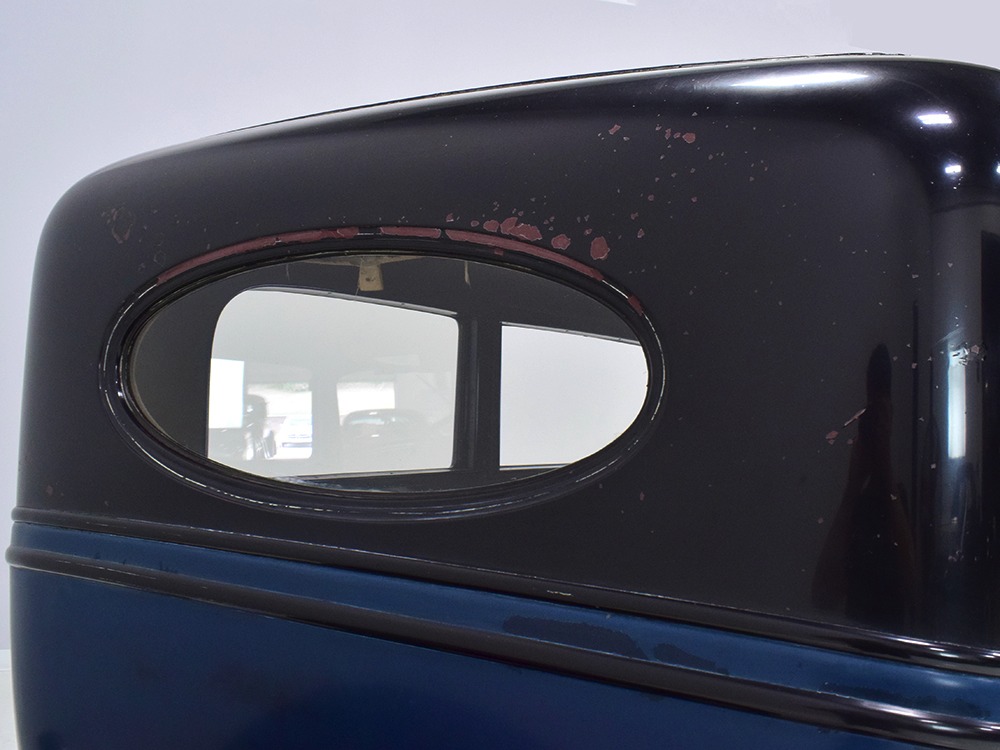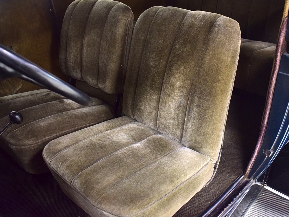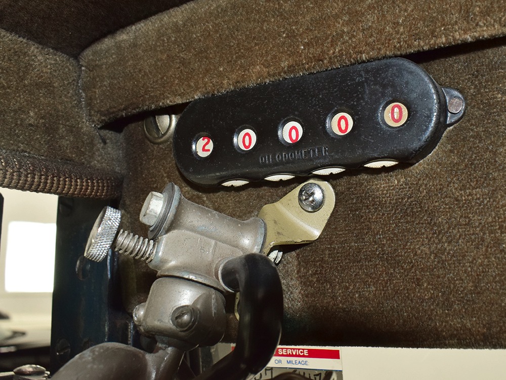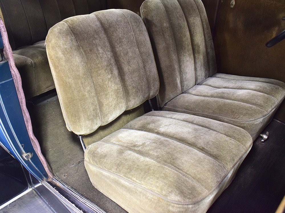 The beautifully outfitted interior still carries vintage 1930 olive-colored mohair, a popular and surprisingly durable material that was a staple throughout the GM line (the same stuff is in my 1929 Cadillac). Two buckets up front offer good access to the rear bench and aside from a few split seams along the back of the driver’s seat, the upholstery is in fantastic shape. Floor coverings are simple rubber mats over plywood floors, just as when it was new, and it’s somewhat surprising to see that the map pockets still have a bit of elastic left in them. Nice! The simple flat instrument panel has all its original gauges and knobs, as well as a long list of accessories: heater, ashtray and lighter, a fan mounted above the driver along with an interesting odometer for setting service intervals, dual rear-view mirrors, plus the primitive turn signal device mounted on the steering column. In lieu of a cowl vent, the windshield cranks upwards and a scoop at the top of the dashboard channels cool air towards your feet and dual windshield wipers were an accessory as well. The rear seat remains in fantastic condition and even includes a silk shade for the oval rear window, a Pontiac styling trademark throughout the ‘30s. It shouldn’t be a surprise that this car has scored as well as it has in preservation class judging.