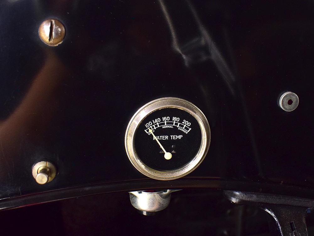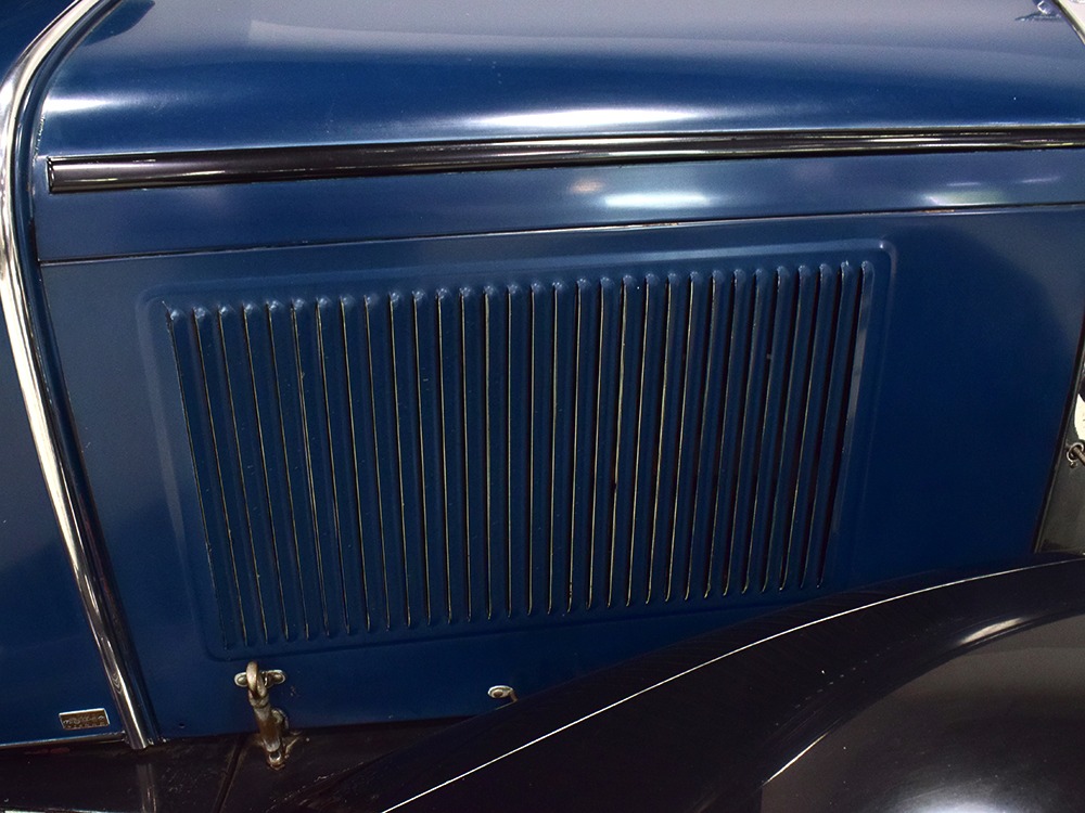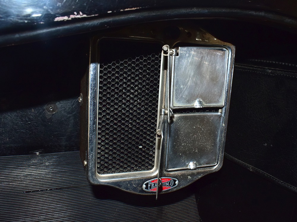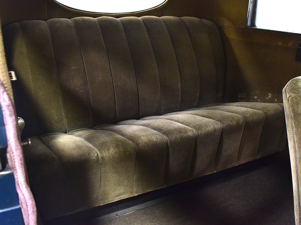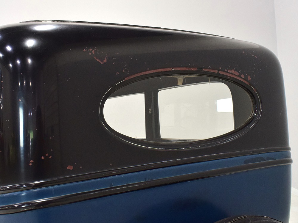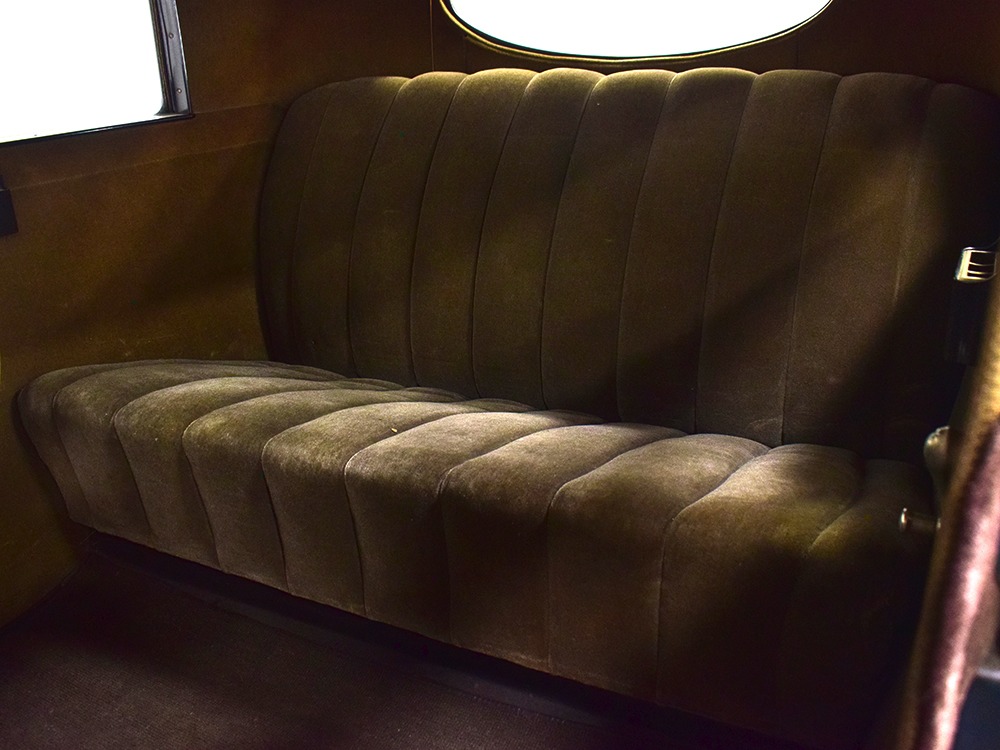 The beautifully outfitted interior still carries vintage 1930 olive-colored mohair, a popular and surprisingly durable material that was a staple throughout the GM line (the same stuff is in my 1929 Cadillac). Two buckets up front offer good access to the rear bench and aside from a few split seams along the back of the driver’s seat, the upholstery is in fantastic shape. Floor coverings are simple rubber mats over plywood floors, just as when it was new, and it’s somewhat surprising to see that the map pockets still have a bit of elastic left in them. Nice! The simple flat instrument panel has all its original gauges and knobs, as well as a long list of accessories: heater, ashtray and lighter, a fan mounted above the driver along with an interesting odometer for setting service intervals, dual rear-view mirrors, plus the primitive turn signal device mounted on the steering column. In lieu of a cowl vent, the windshield cranks upwards and a scoop at the top of the dashboard channels cool air towards your feet and dual windshield wipers were an accessory as well. The rear seat remains in fantastic condition and even includes a silk shade for the oval rear window, a Pontiac styling trademark throughout the ‘30s. It shouldn’t be a surprise that this car has scored as well as it has in preservation class judging.