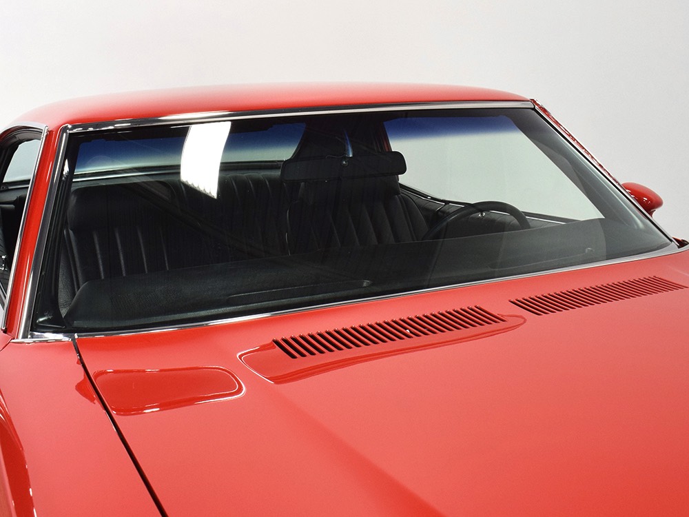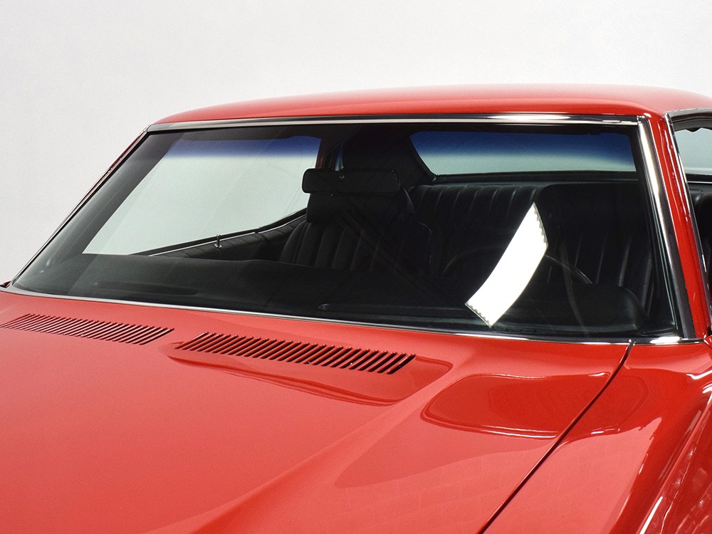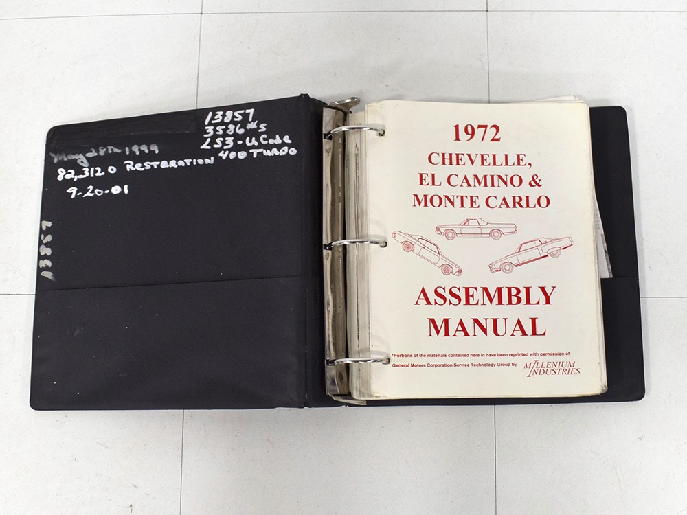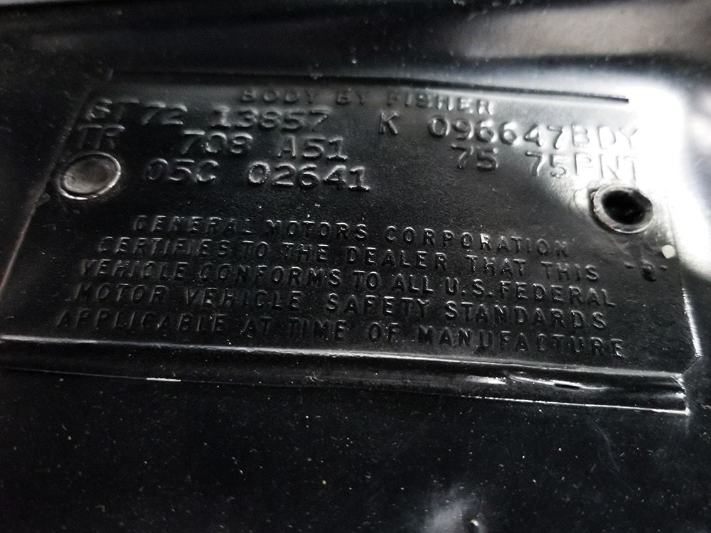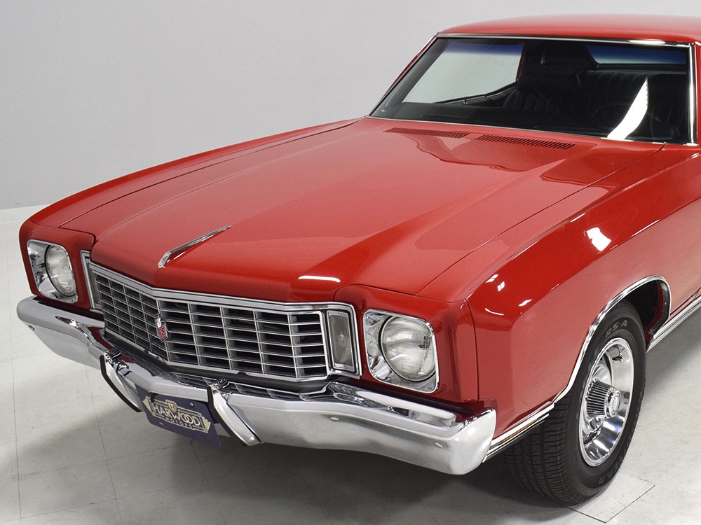 The SS was gone in 1972, so please don’t ask if it’s an SS, because you couldn’t get one when this car was built. It is, however, a Custom, which used all the SS equipment and was a one-year-only option, making it somewhat less common than the SS that preceded it. Wearing a spectacular coat of bright code 75 Cranberry Red, it looks fantastic from any angle, neatly blending a sporty demeanor with the Monte Carlo’s luxurious, upscale image. You’ll note there’s no demarcation on the cowl tag for a vinyl top, and that’s how it was delivered—the clean, sleek look is often preferable to the kind of mature look the vinyl top would have added, and it certainly looks great here. This car has never been wrecked or rusty and carries 100% of its original sheetmetal from nose to tail and there are zero patches except for a tiny repair in the left rear quarter that’s completely invisible today. We have dozens of photos of the car in bare metal with the body off the frame, so you know it was a thorough job and you’ll quickly see that this is a special Monte Carlo. We’ve never seen one this nice. Most of the chrome and stainless is original, but the stainless has been buffed to a high shine and any piece of chrome that needed to be refinished was expertly chromed to show standards. Even all the glass is original except the windshield, which was replaced with a correct piece to match the rest.