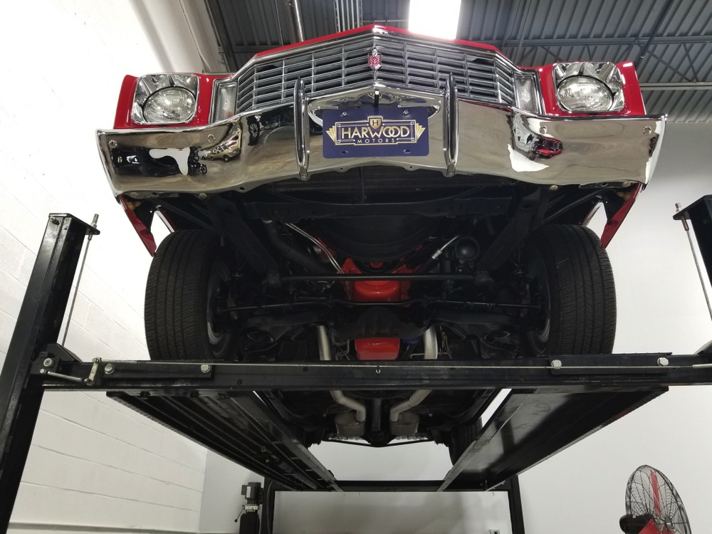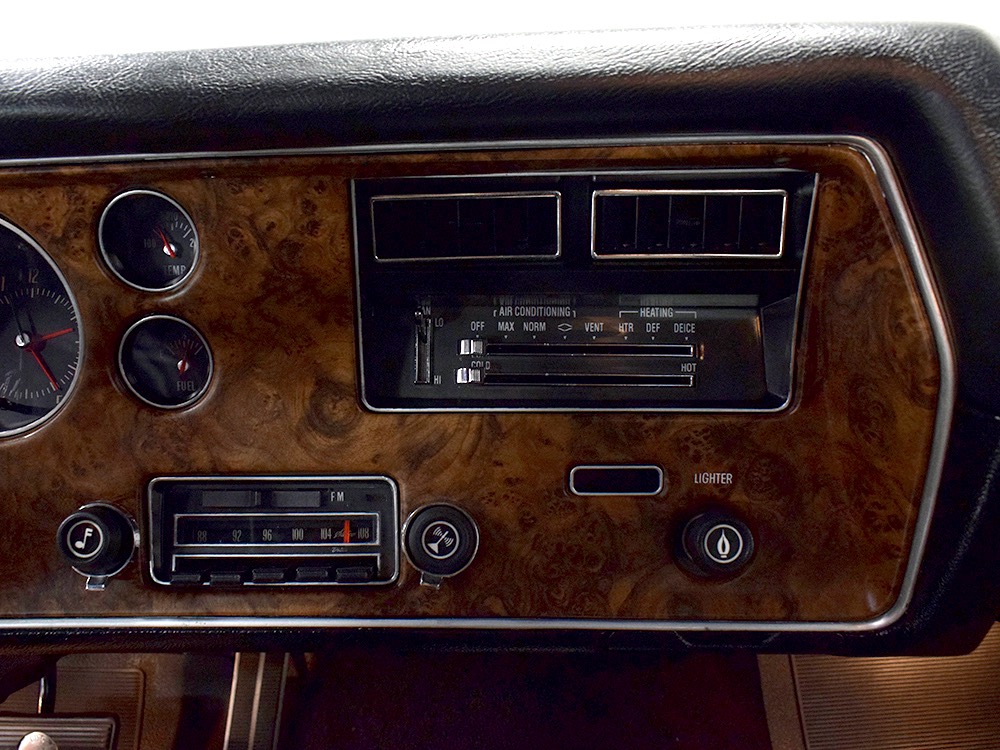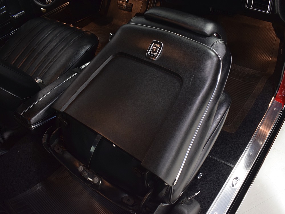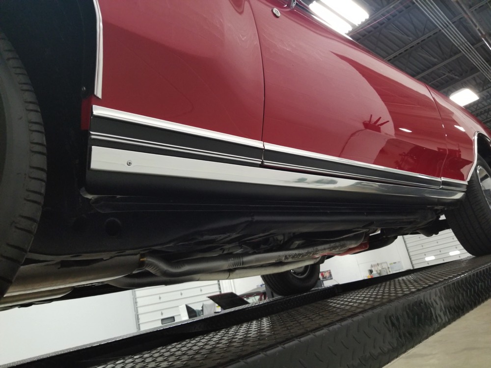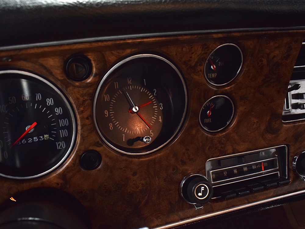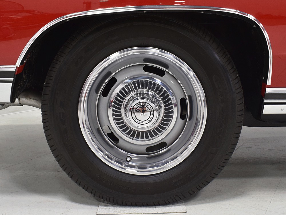 The only transmission you could get behind the burly 402 was a rugged TH400 3-speed automatic, which is the right choice in a luxury coupe like this. Fully rebuilt, it shifts seamlessly when you’re going gently but with real authority when you let the big block really stretch its legs, and it makes the big coupe feel 800 pounds lighter than it is. Like everything else on the car, the underside is highly detailed and in fantastic shape with only a few signs of use since it was finished. The exhaust system is non-stock, with great-sounding Pypes stainless mufflers, and I don’t think anyone will complain about that—and it does terminate in correct oval tips under the rear bumper. There are easy-cruising 3.08 gears in the 12-bolt rear end, and it rides and handles like a flagship should. Competent, comfortable, and effortless, with just a bit of an edge. Rally wheels are just the right choice and carry recent 225/70/15 Goodyear Eagle radials.