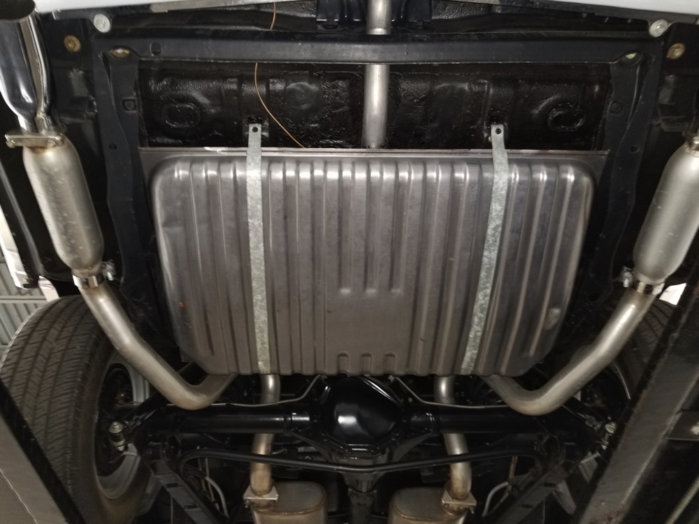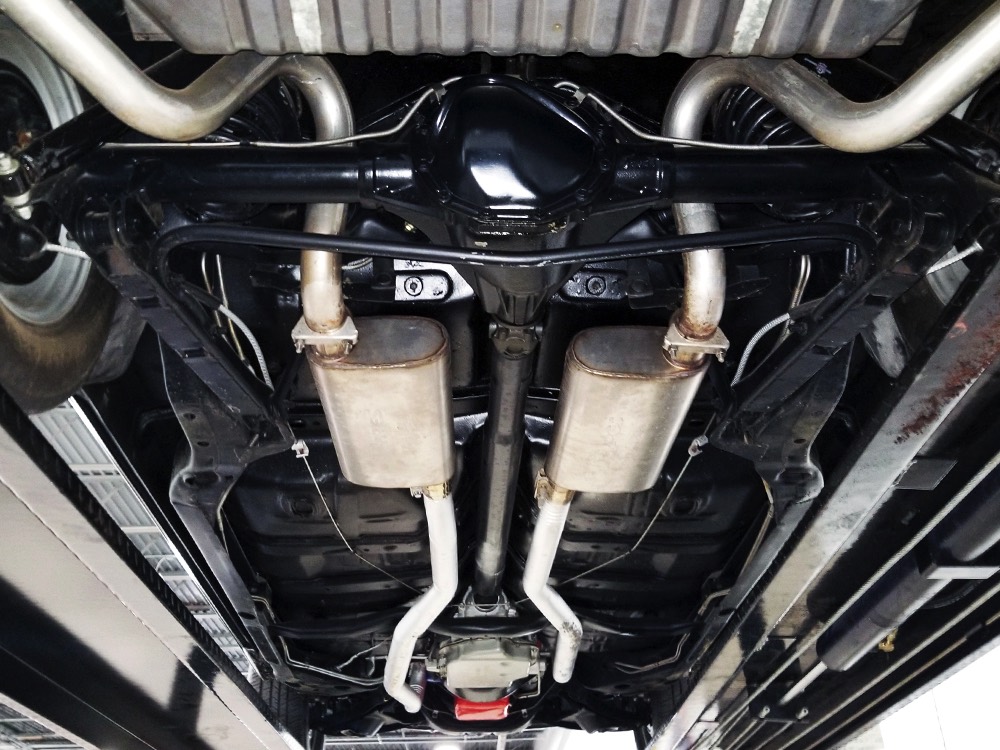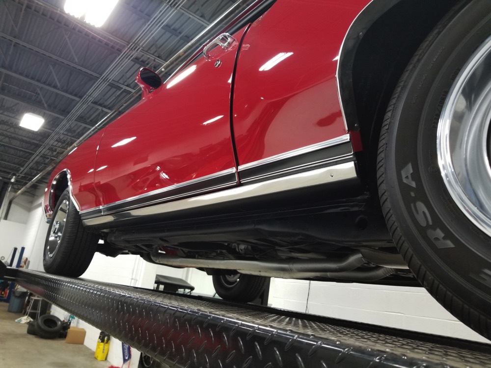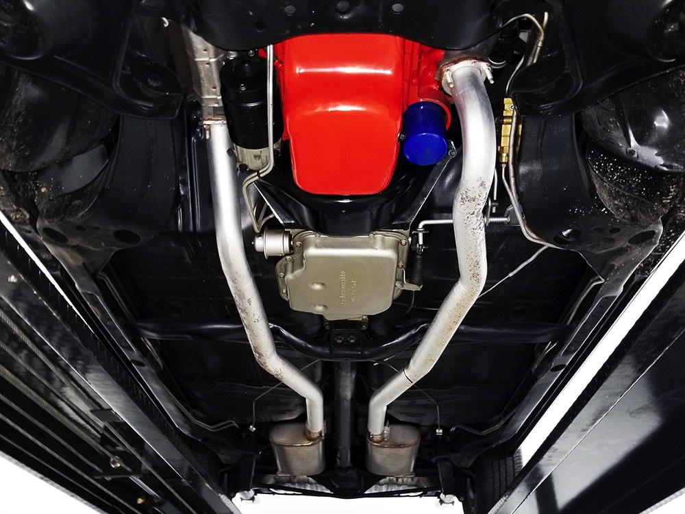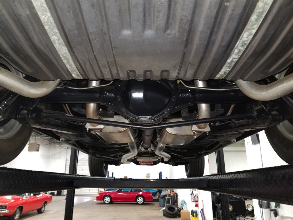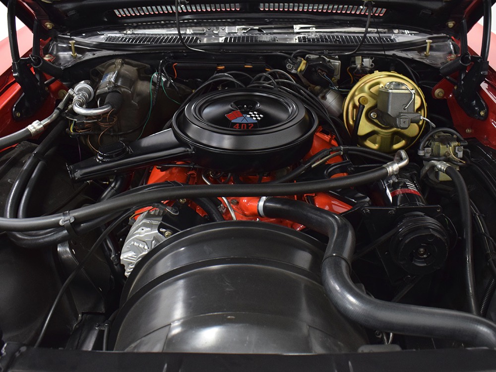 The only transmission you could get behind the burly 402 was a rugged TH400 3-speed automatic, which is the right choice in a luxury coupe like this. Fully rebuilt, it shifts seamlessly when you’re going gently but with real authority when you let the big block really stretch its legs, and it makes the big coupe feel 800 pounds lighter than it is. Like everything else on the car, the underside is highly detailed and in fantastic shape with only a few signs of use since it was finished. The exhaust system is non-stock, with great-sounding Pypes stainless mufflers, and I don’t think anyone will complain about that—and it does terminate in correct oval tips under the rear bumper. There are easy-cruising 3.08 gears in the 12-bolt rear end, and it rides and handles like a flagship should. Competent, comfortable, and effortless, with just a bit of an edge. Rally wheels are just the right choice and carry recent 225/70/15 Goodyear Eagle radials.