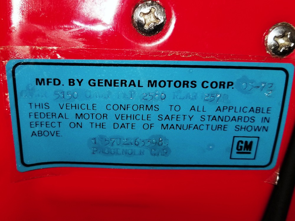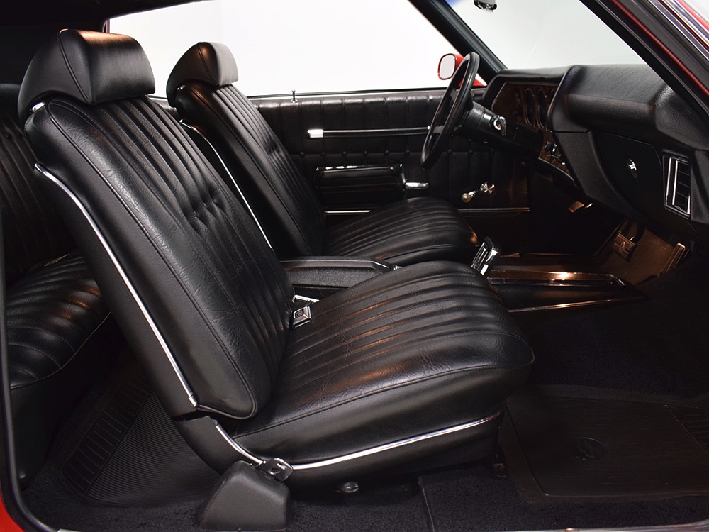 You could get any of the four V8 engines in the Custom, with this bright red coupe sporting the burly LS3 402 cubic inch V8. It is the car’s original, numbers-matching engine, fully rebuilt to stock specs, and it runs extremely sell. Pump the accelerator once or twice and it fires almost instantly, then settles into an even idle without any fussiness at all. The engine bay itself is detailed for show and quite correct, from the air cleaner and its ‘402’ decal to the Chevy Orange paint, to the correct fasteners and hardware used throughout. The only items we’d consider changing are a few of the hose clamps, which should be the tower style for 1972. You’ll note it still carries all its original equipment, including the relatively rare cruise control unit. Power steering and power disc brakes are part of the package (something this big probably wouldn’t be possible without them!) and you just won’t believe how it drives. Tight. Smooth. Quiet. It’s just awesome.