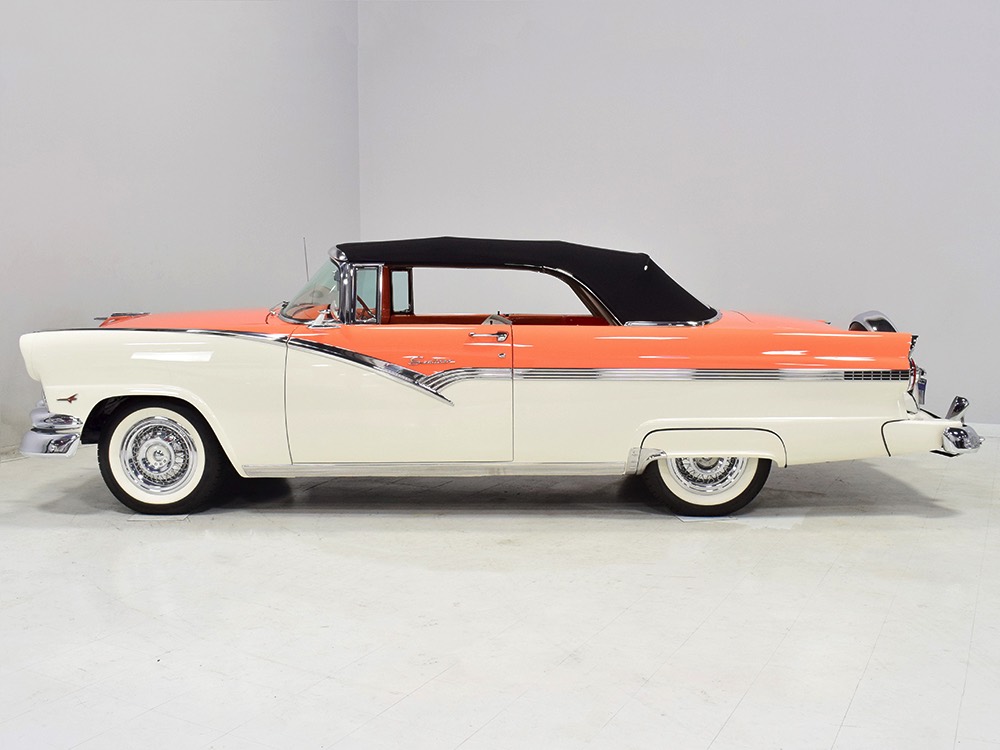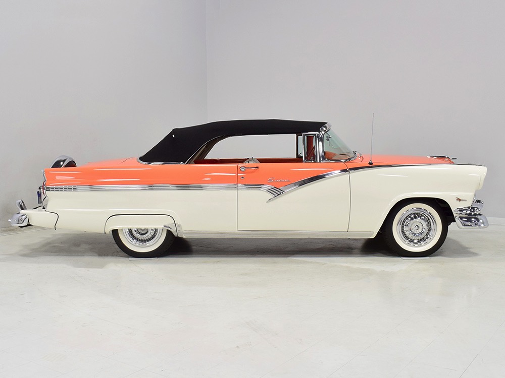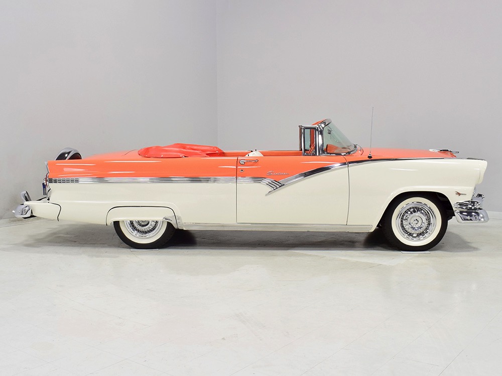 Is this the finest 1956 Ford Sunliner on the planet? Look closely at the photos and decide, because it drives every bit as great as it looks. Someone spent a sizeable fortune on the restoration of Ford’s iconic ‘50s ragtop, and it is refinished to stock specs throughout, including the fantastic Mandarin Orange over Colonial White paint job. If the Thunderbird was a ground-breaker, this is its big brother. Wearing its distinctive sweeping trim, the Sunliner has a dramatic look that is neither plain nor excessive. Combined with the torquey Y-block V8, the Fords were fast, comfortable, and capable, and it would be a mistake to judge them inferior to the all-too-familiar Chevys. If you’re a Ford fan, this is one of the most desirable cars of the ‘50s, and you will not find a finer example anywhere.